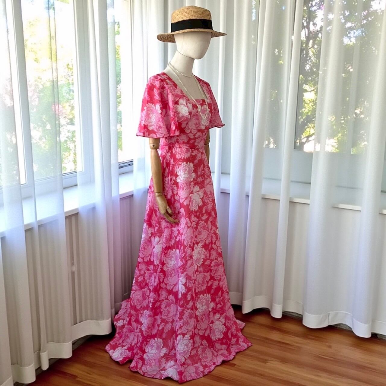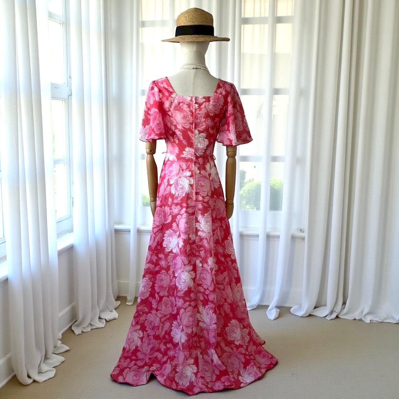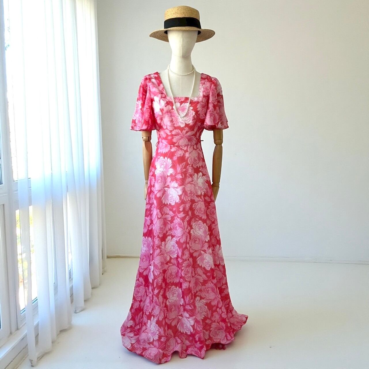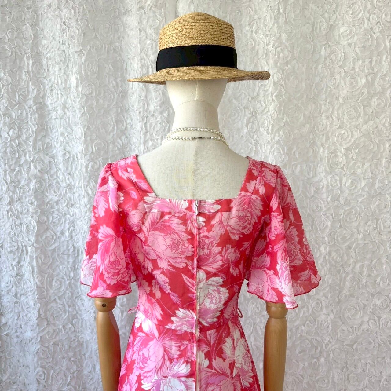 Vera Mont Paris フラワープリント ロングワンピース フレアスリーブ バックファスナー