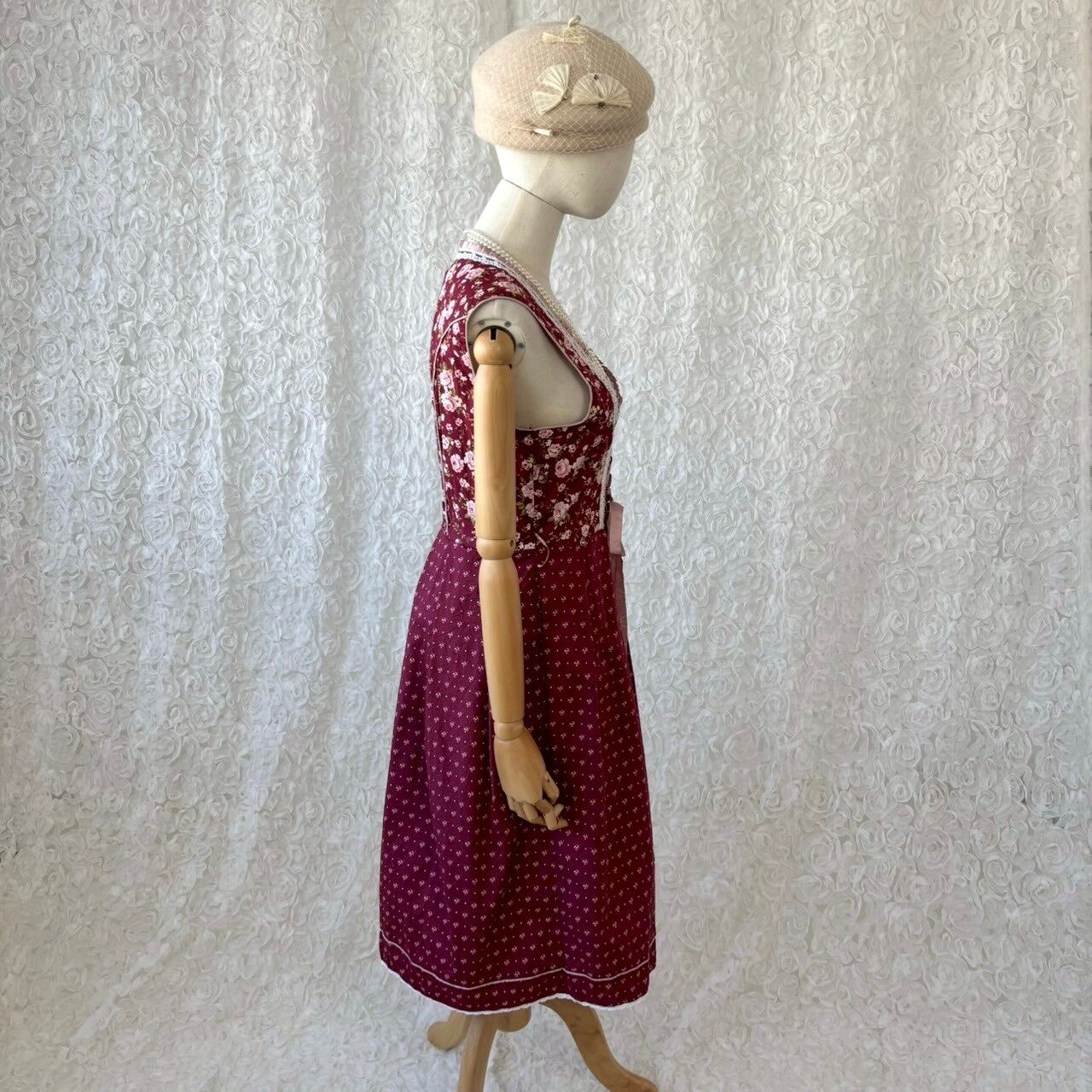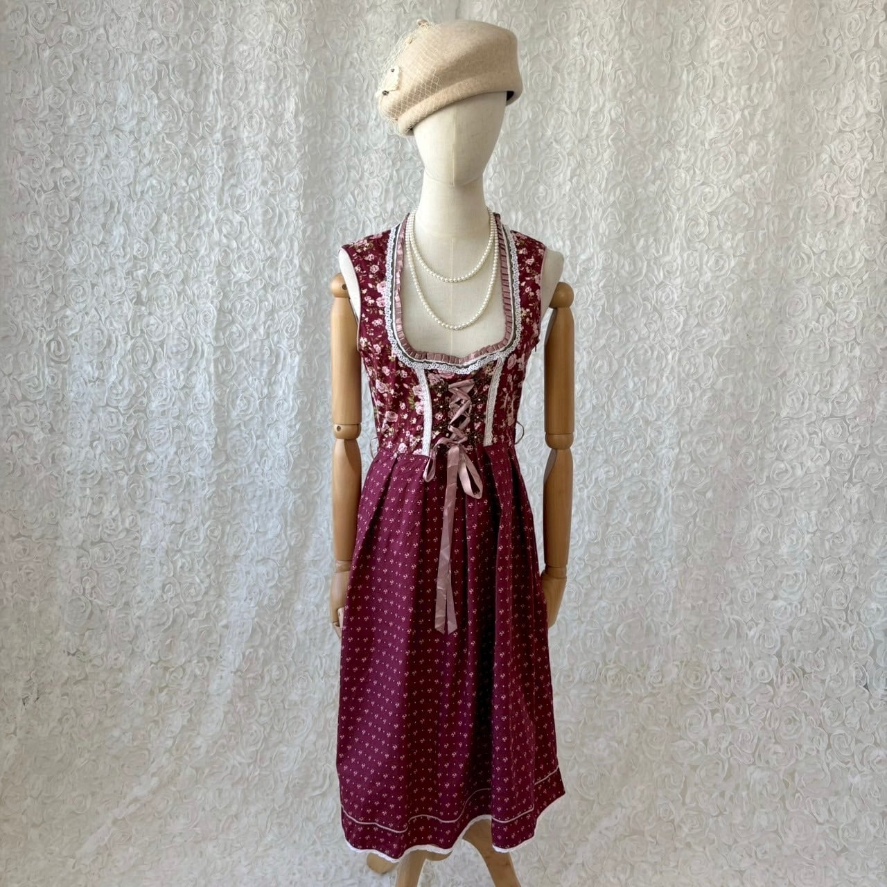 AMISU 花柄コルセット風デザイン ワインレッド ノースリーブ ワンピース ドイツ民族衣装風 チロリアン