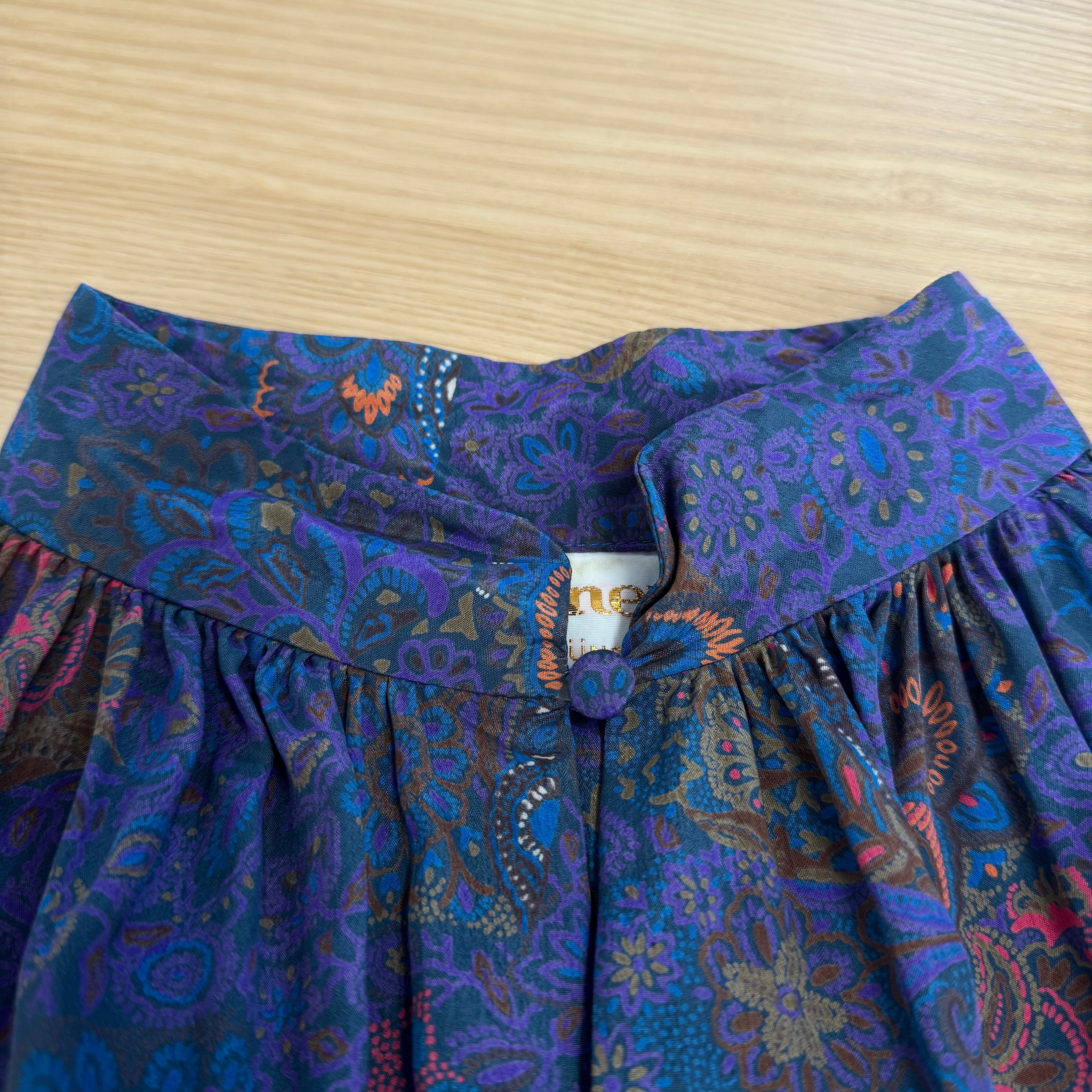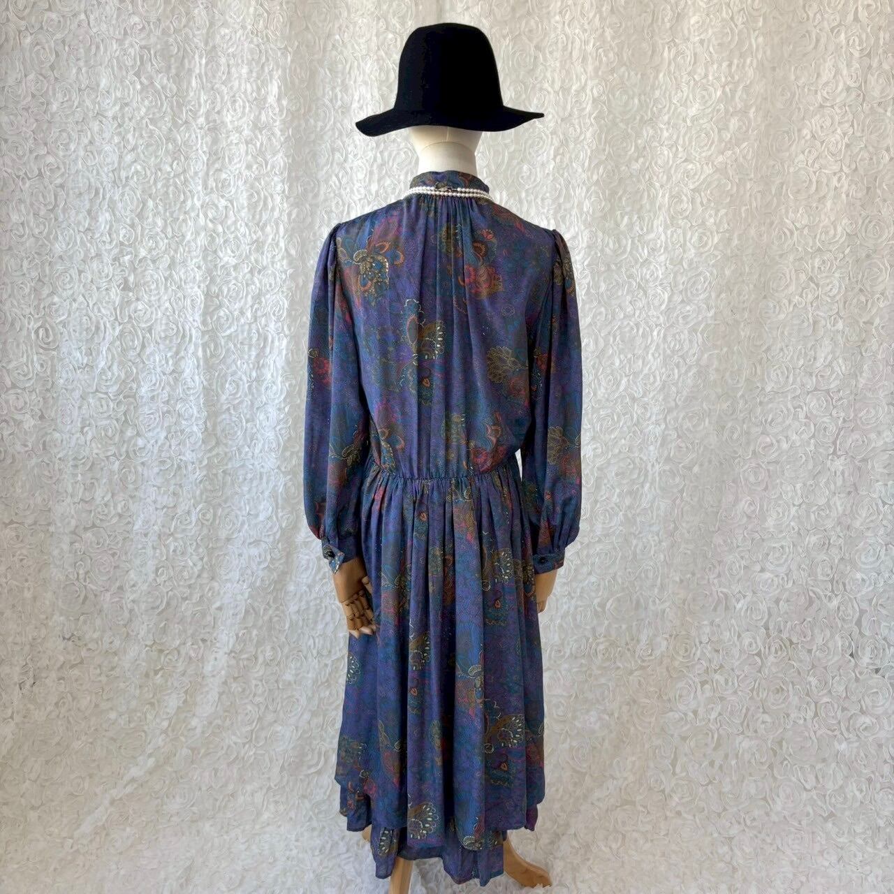 USA製 Statler ペイズリー柄 オリエンタル調 ロングワンピース パープル系 前ボタン ウエストゴム ヴィンテージ