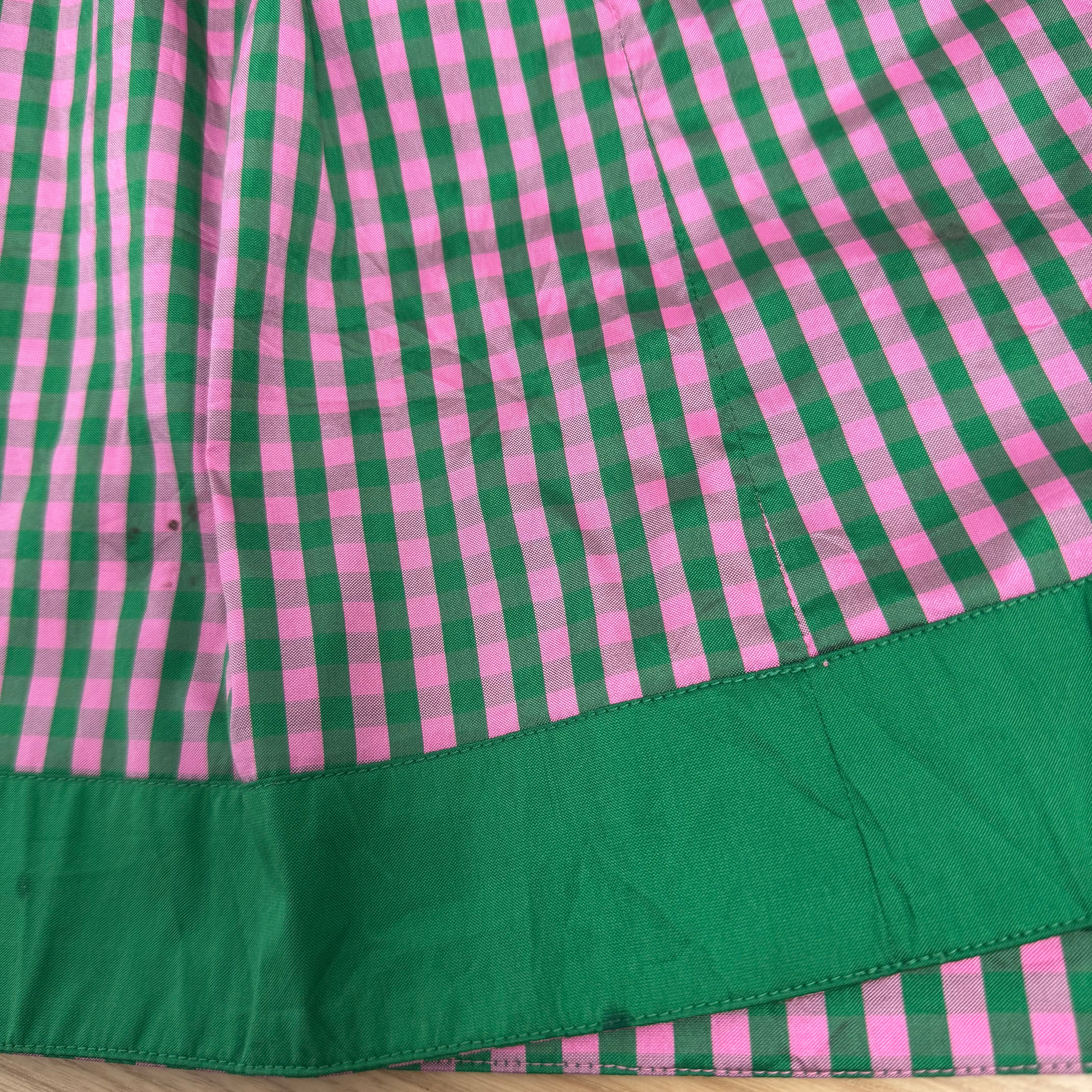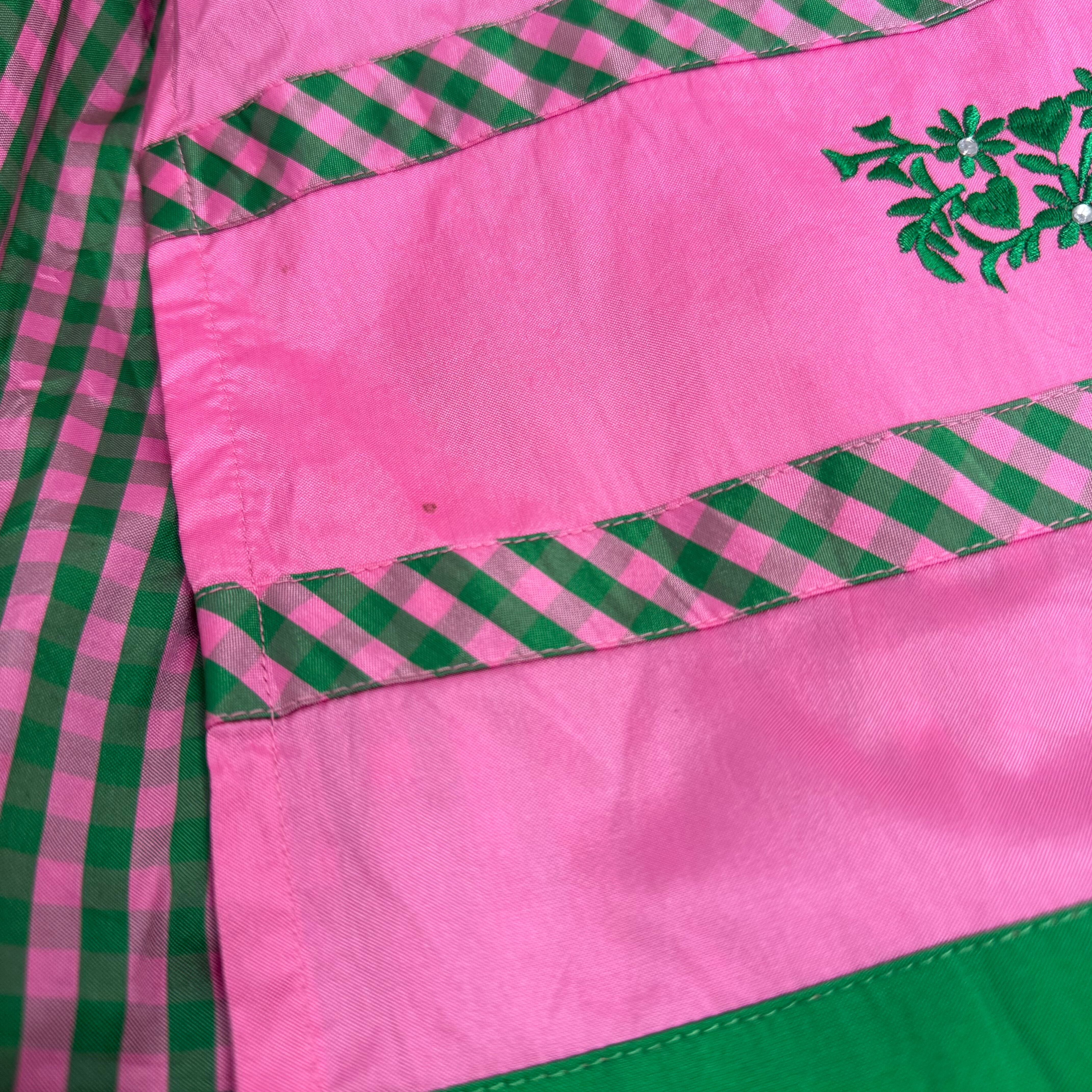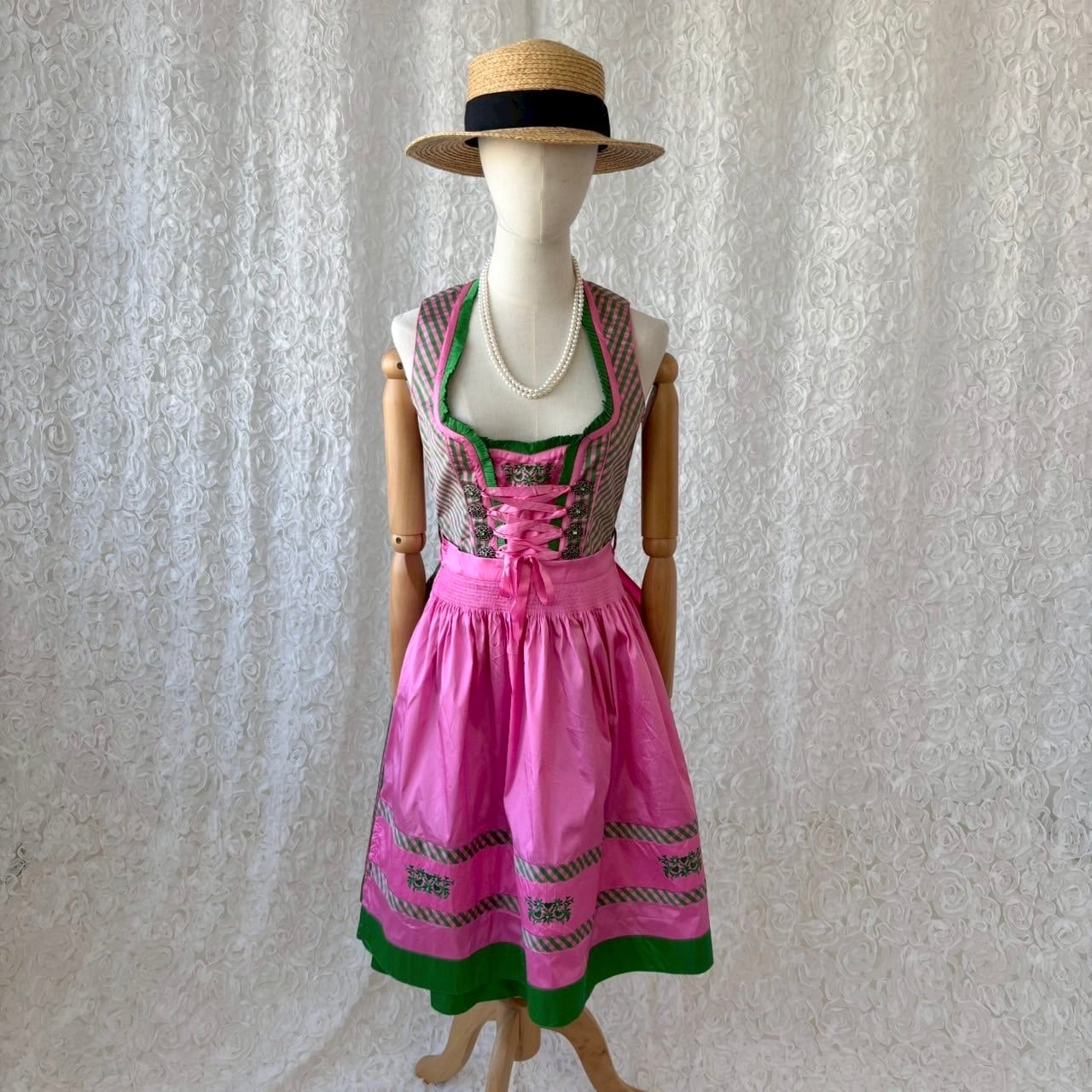 LANDHAUS チロリアンワンピース ピンク×グリーン ギンガムチェック レースアップ チロルワンピース ヨーロッパ古着