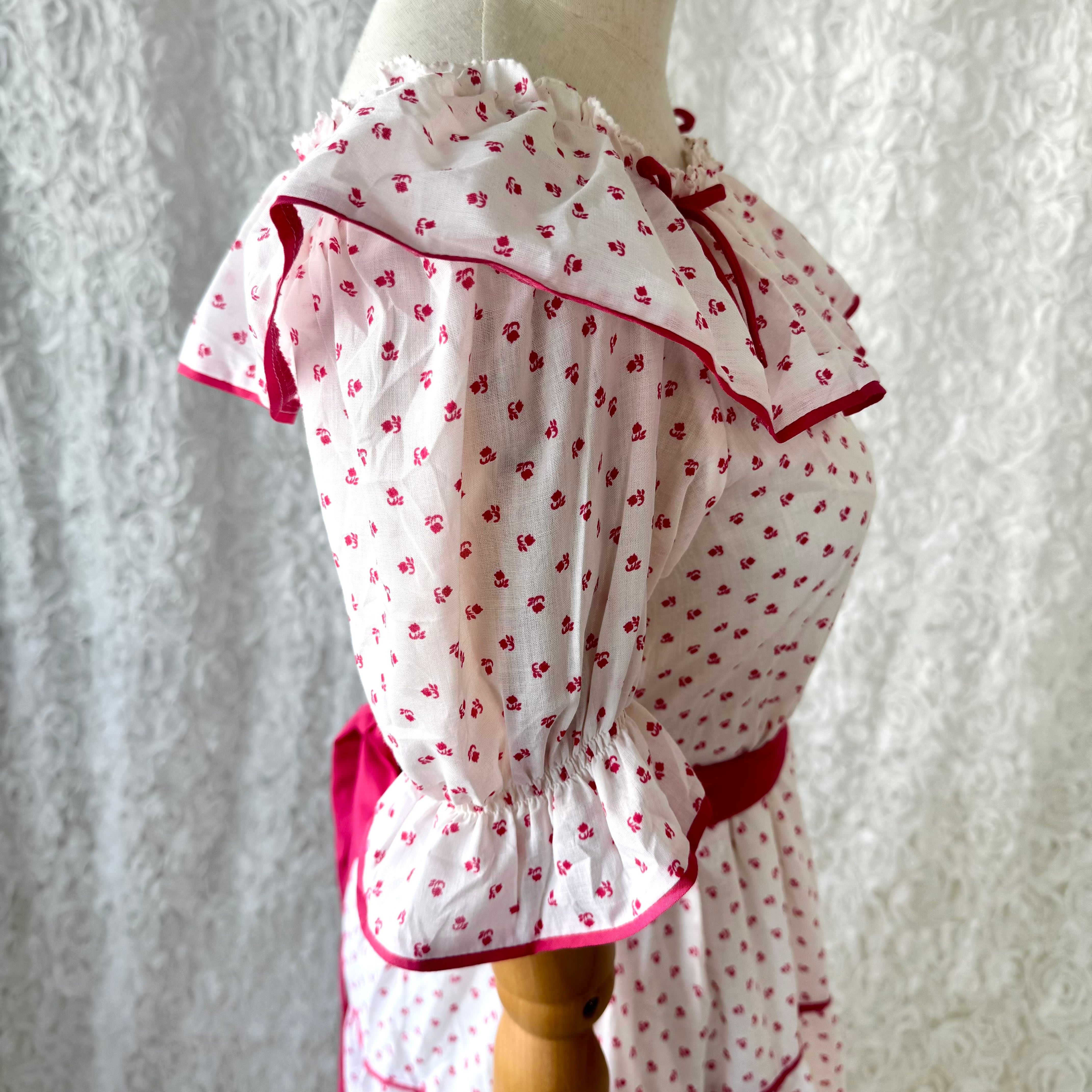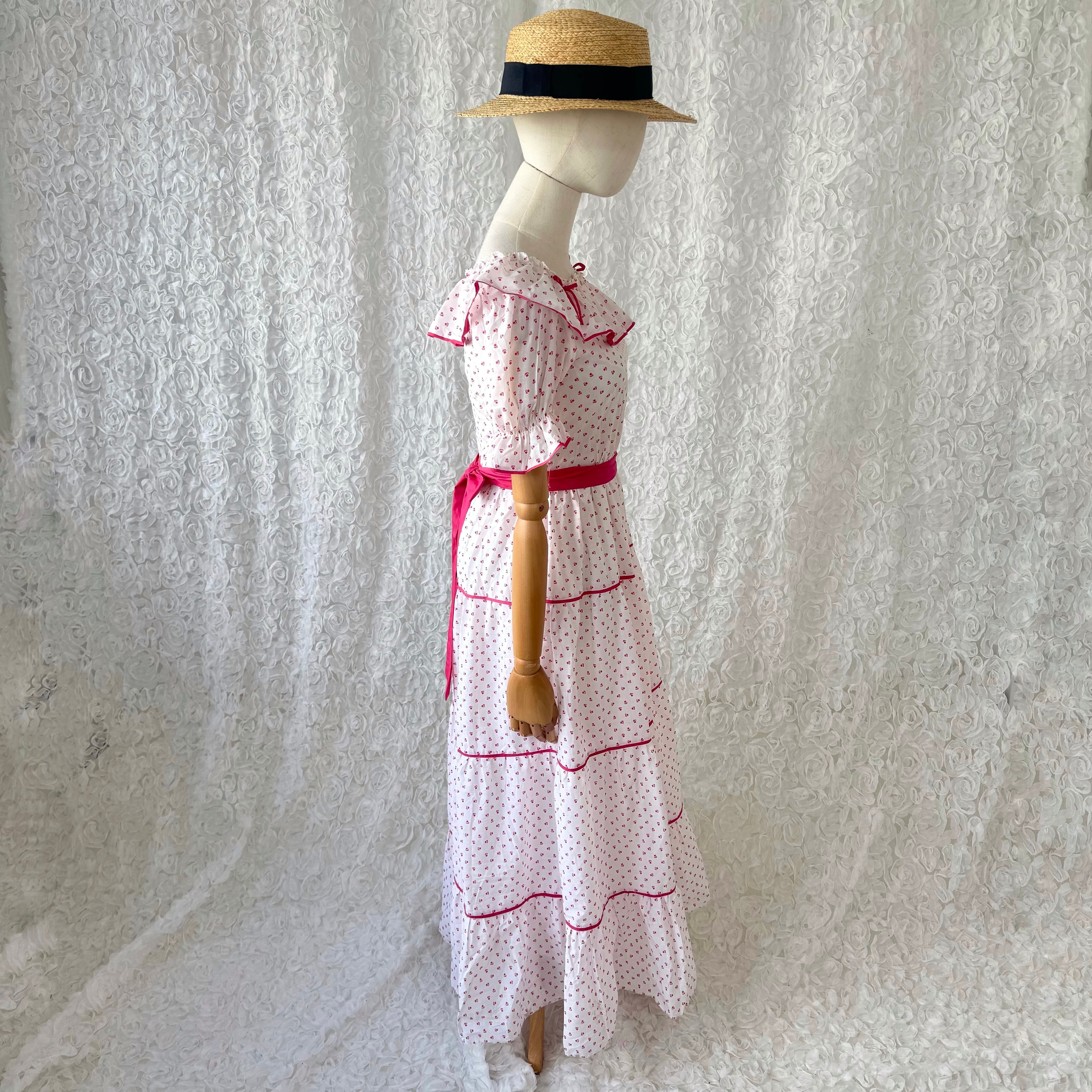 80s〜90sヨーロッパヴィンテージらしい、繊細な小花柄とフリルデザインが魅力のロングワンピース。