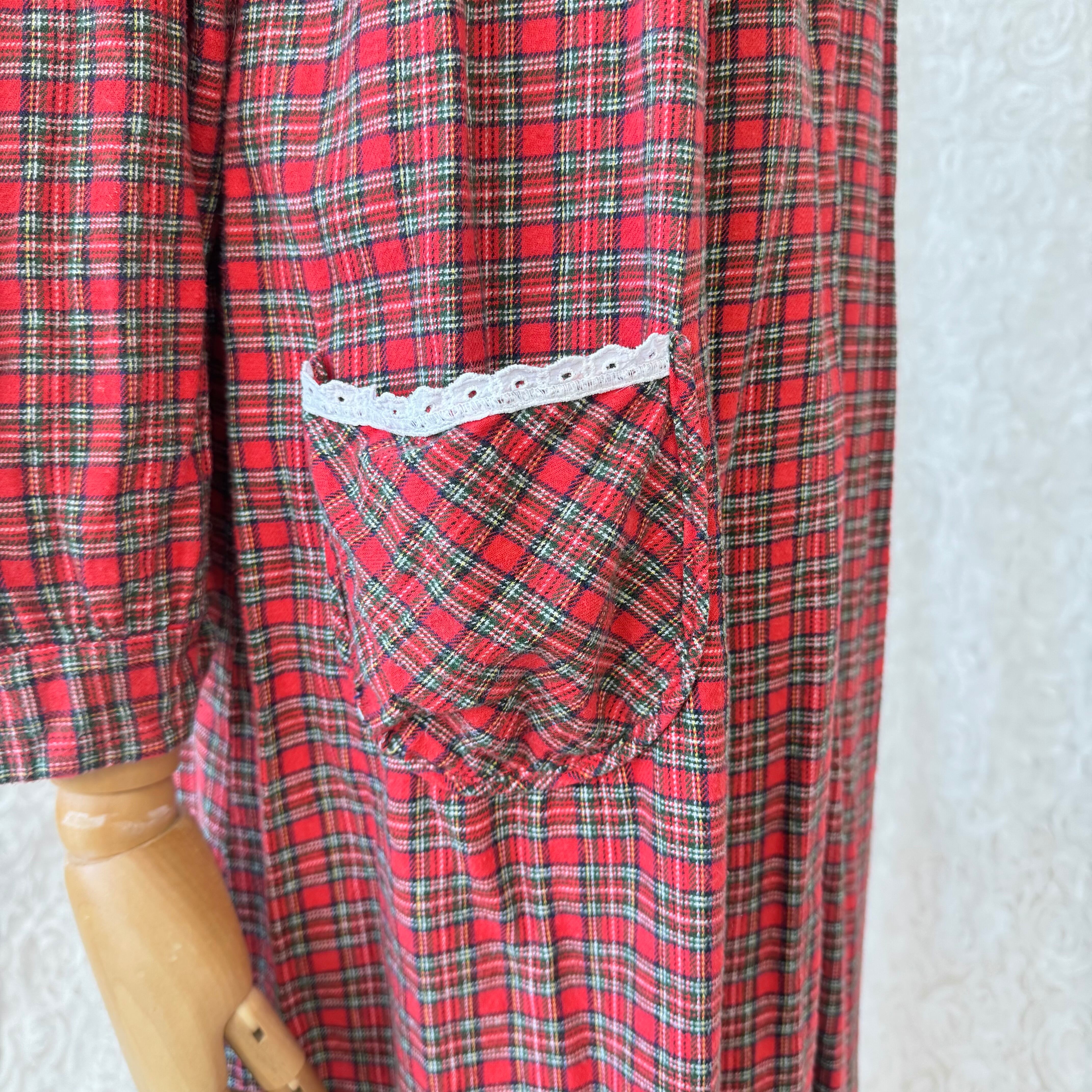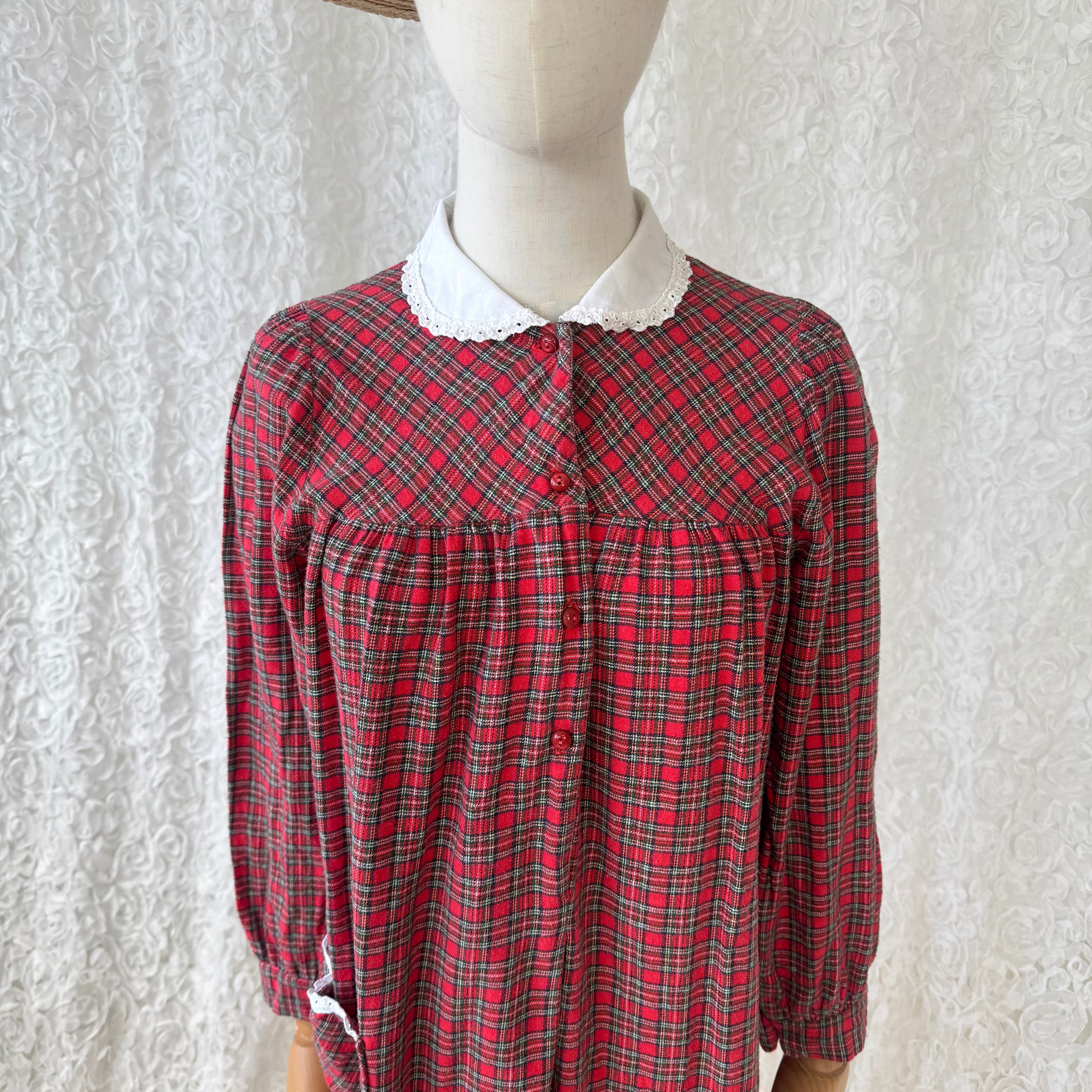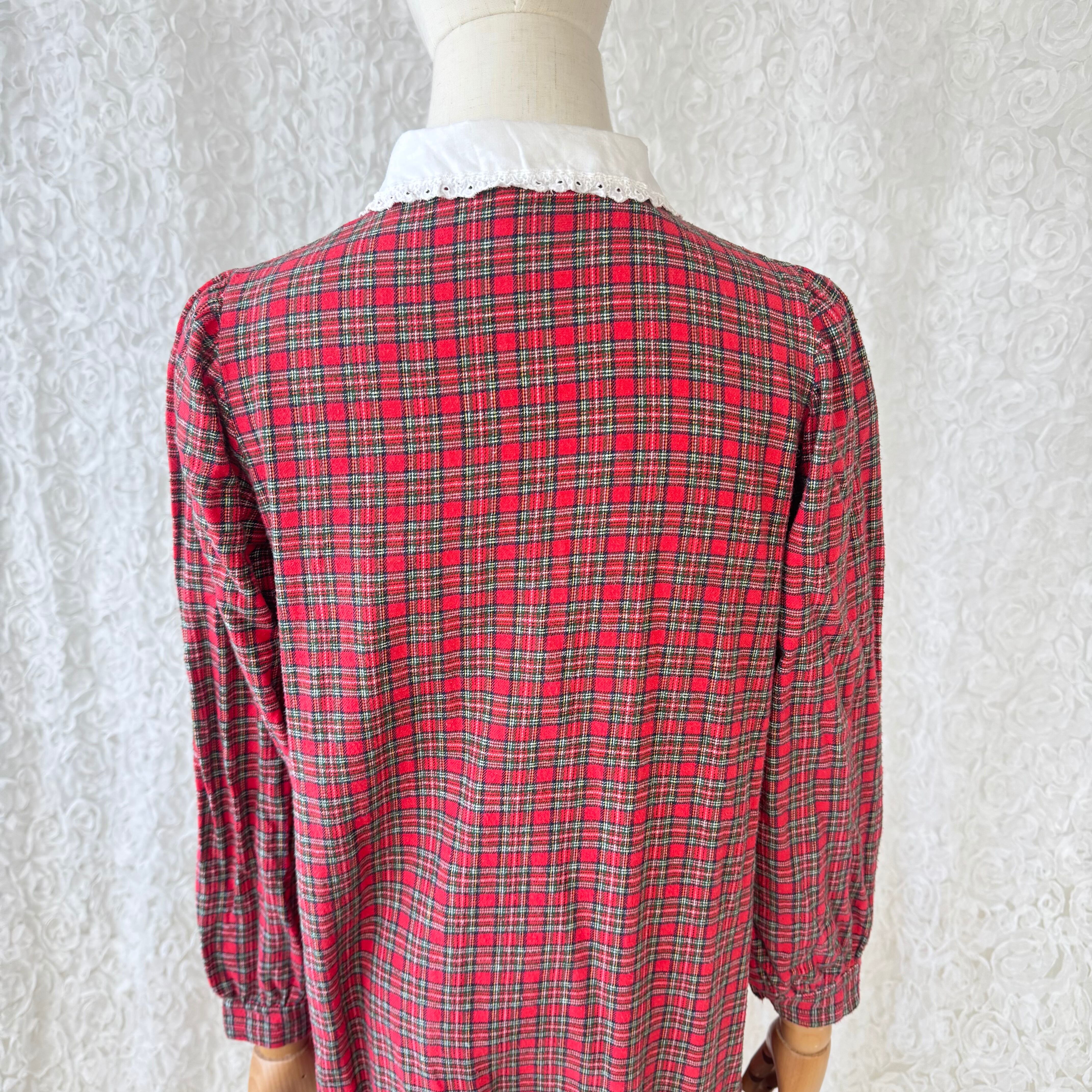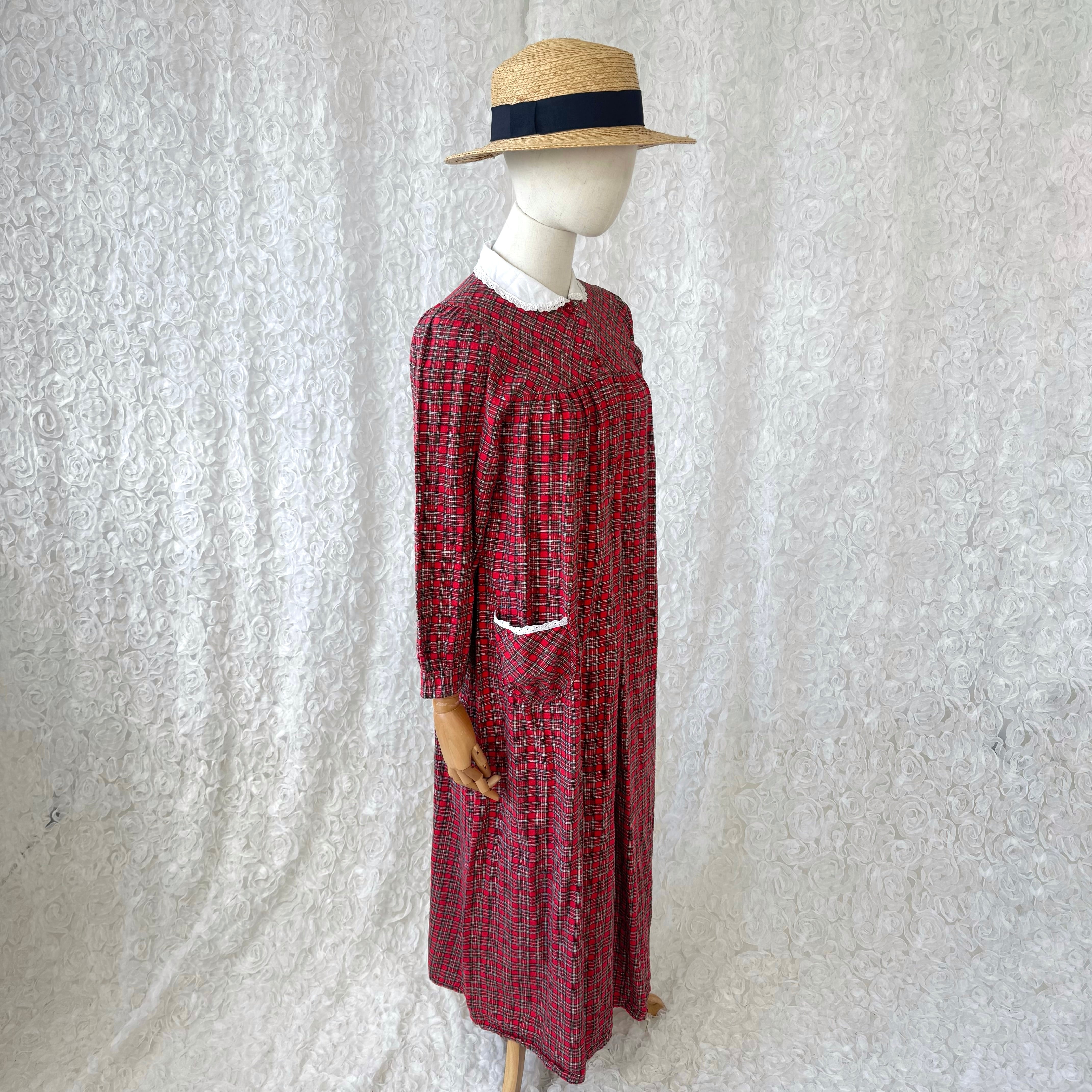 ヨーロッパ古着 赤チェック レース襟 ワンピース|80s〜90s タータンチェック コットン ロング ヴィンテージ
