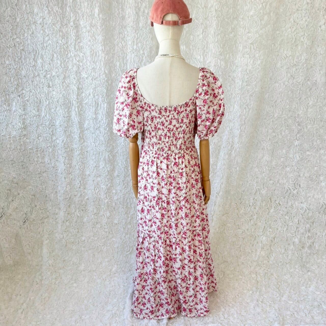 VINTAGE 小花柄 シャーリングワンピース|80s〜90s フローラル柄 ティアードシルエット パフスリーブ ヴィンテージ