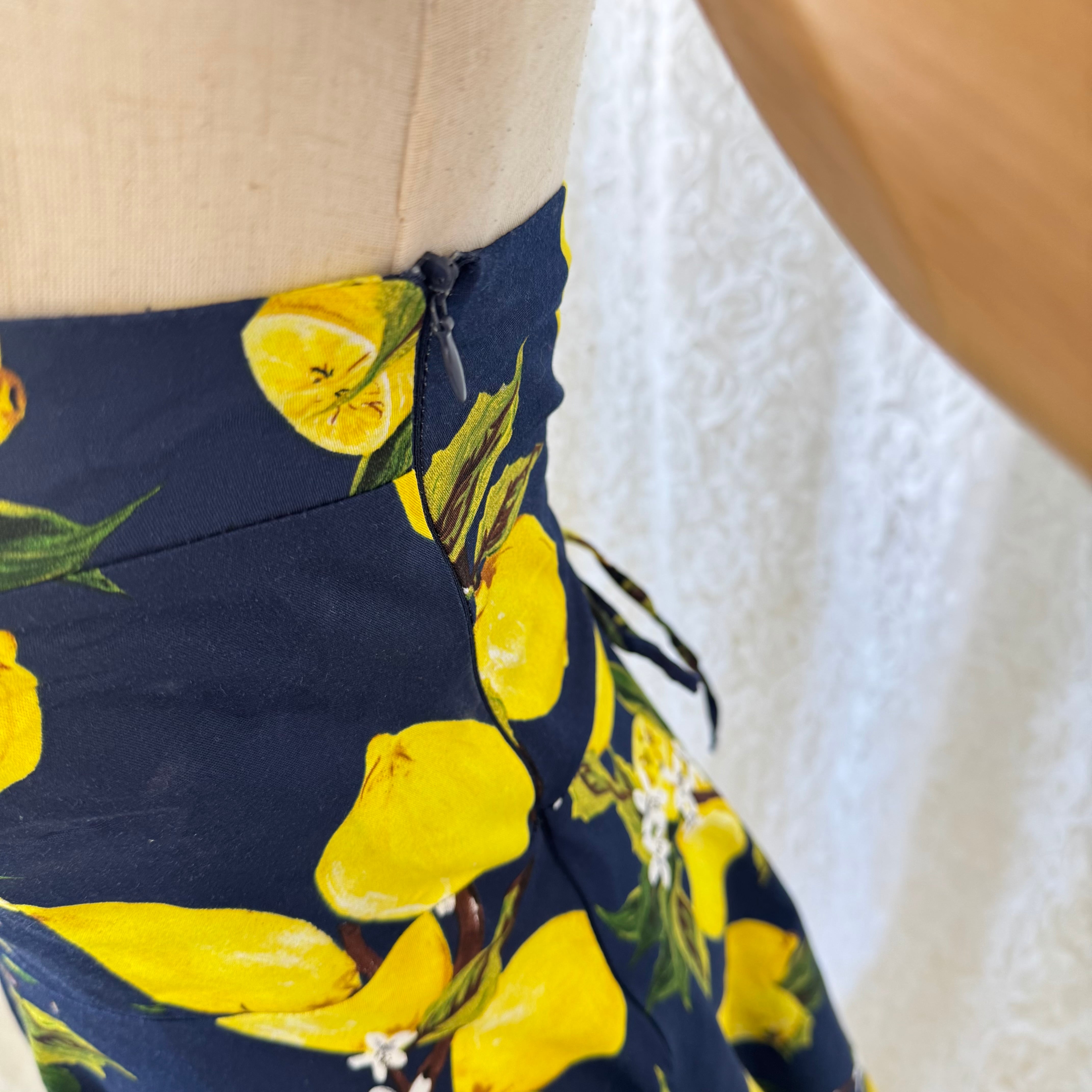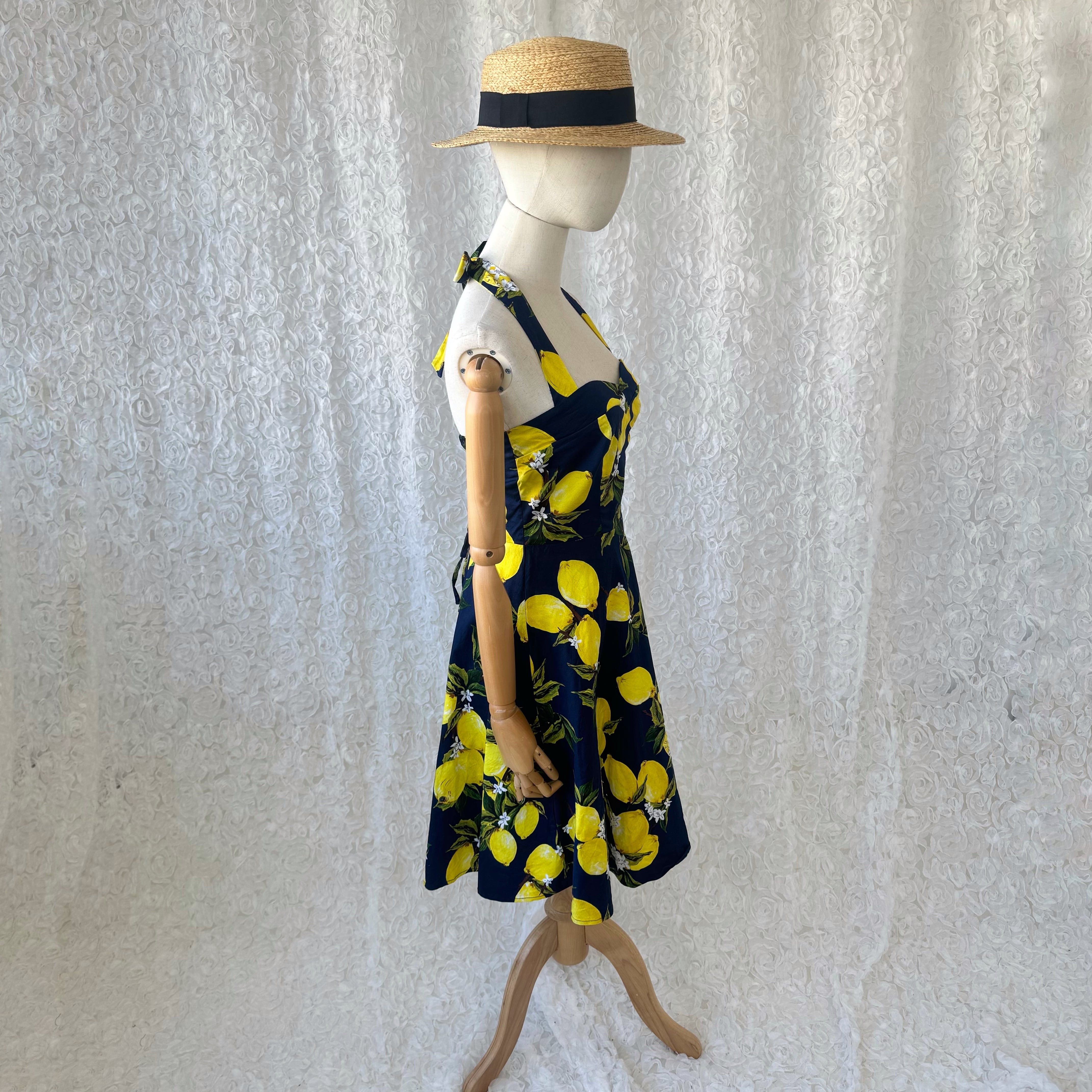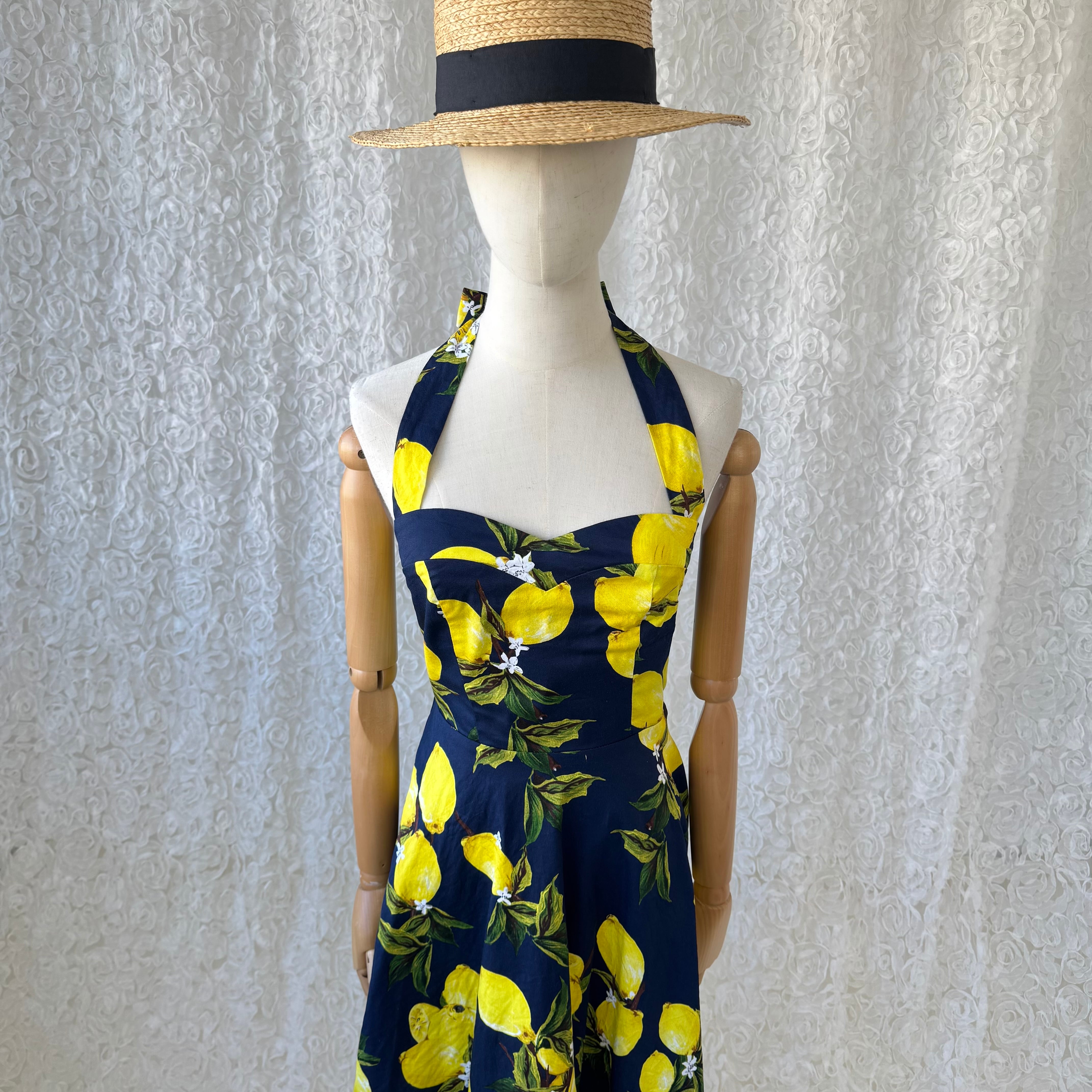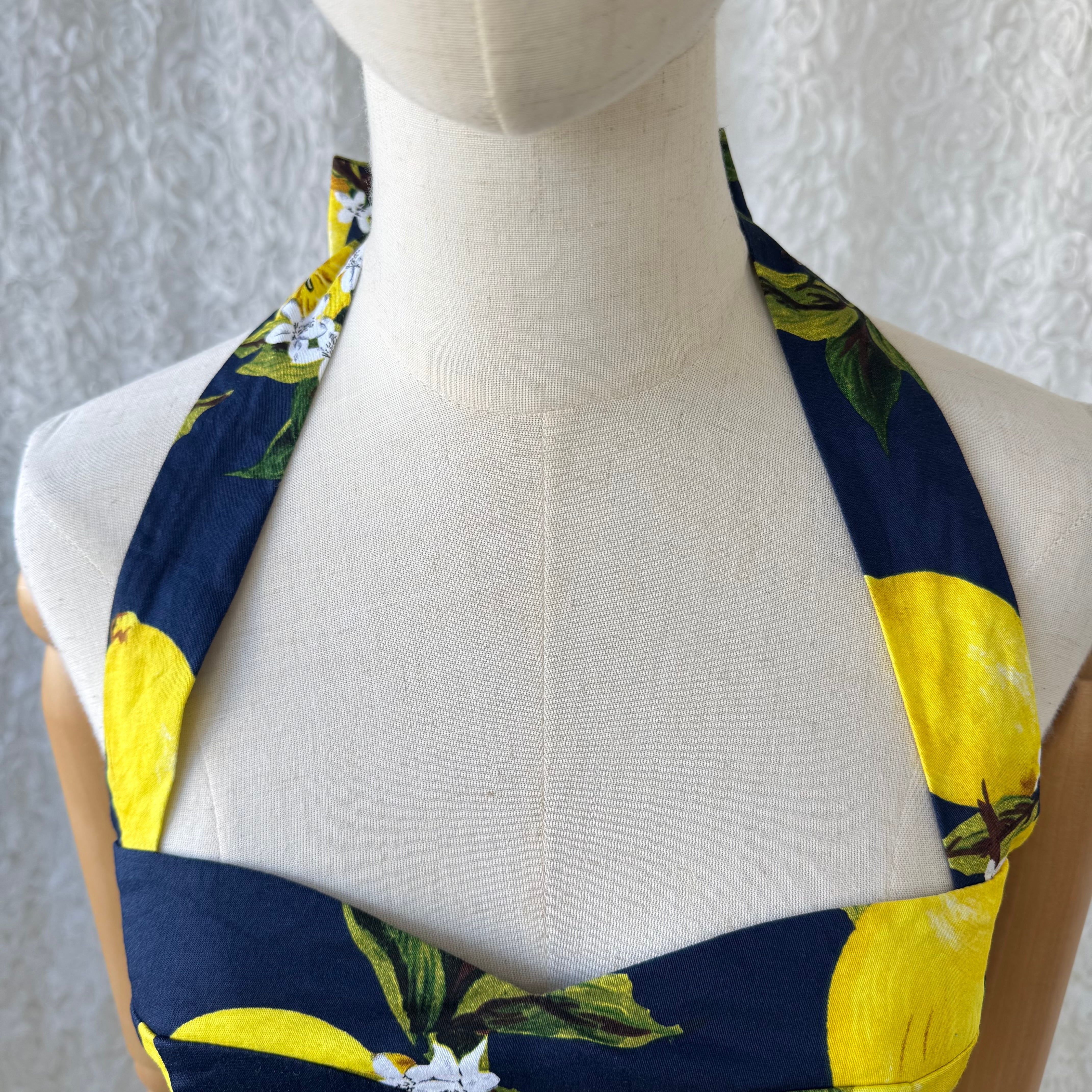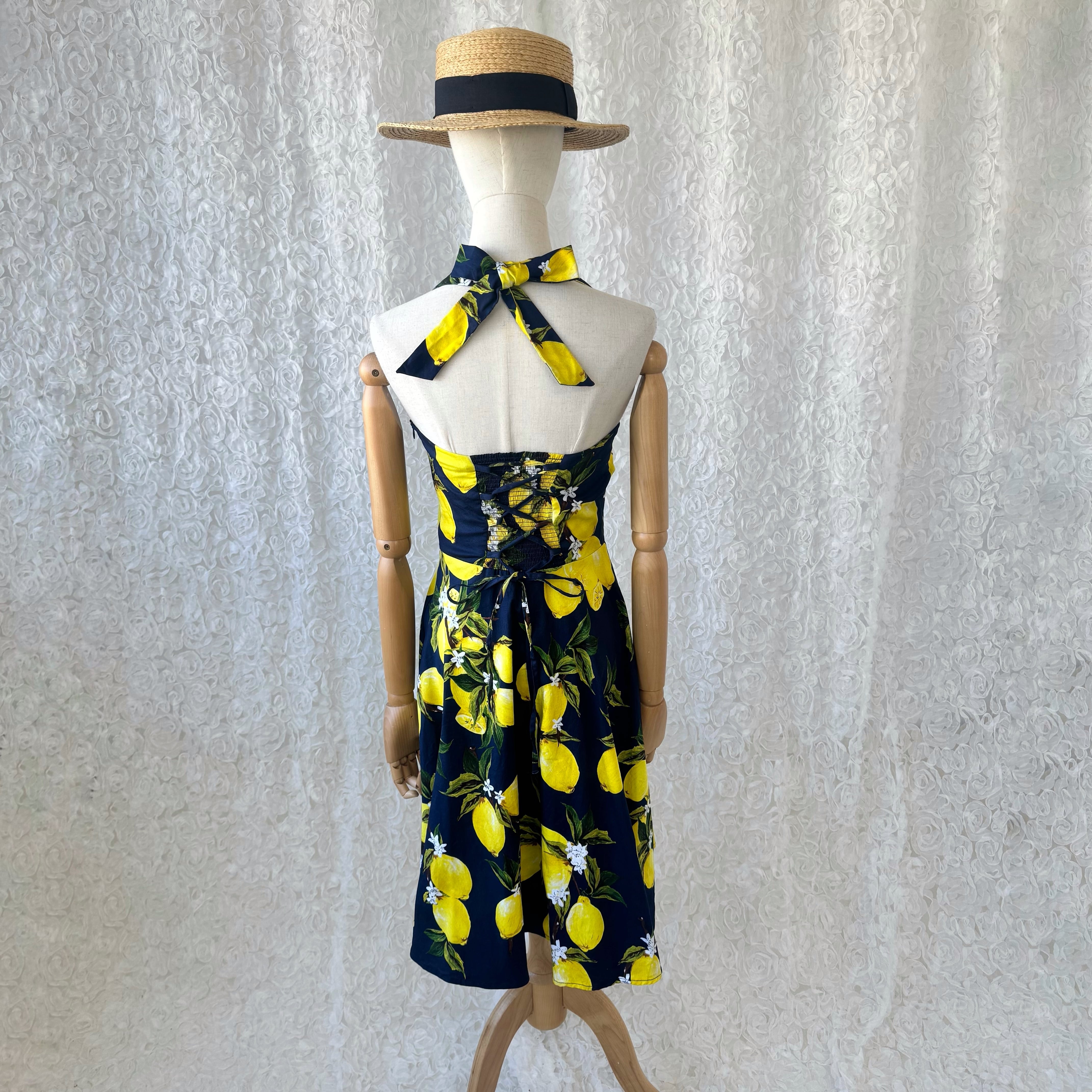 Tapestry レモンプリント ホルターネックワンピース|バックレースアップ フレア サマーワンピース