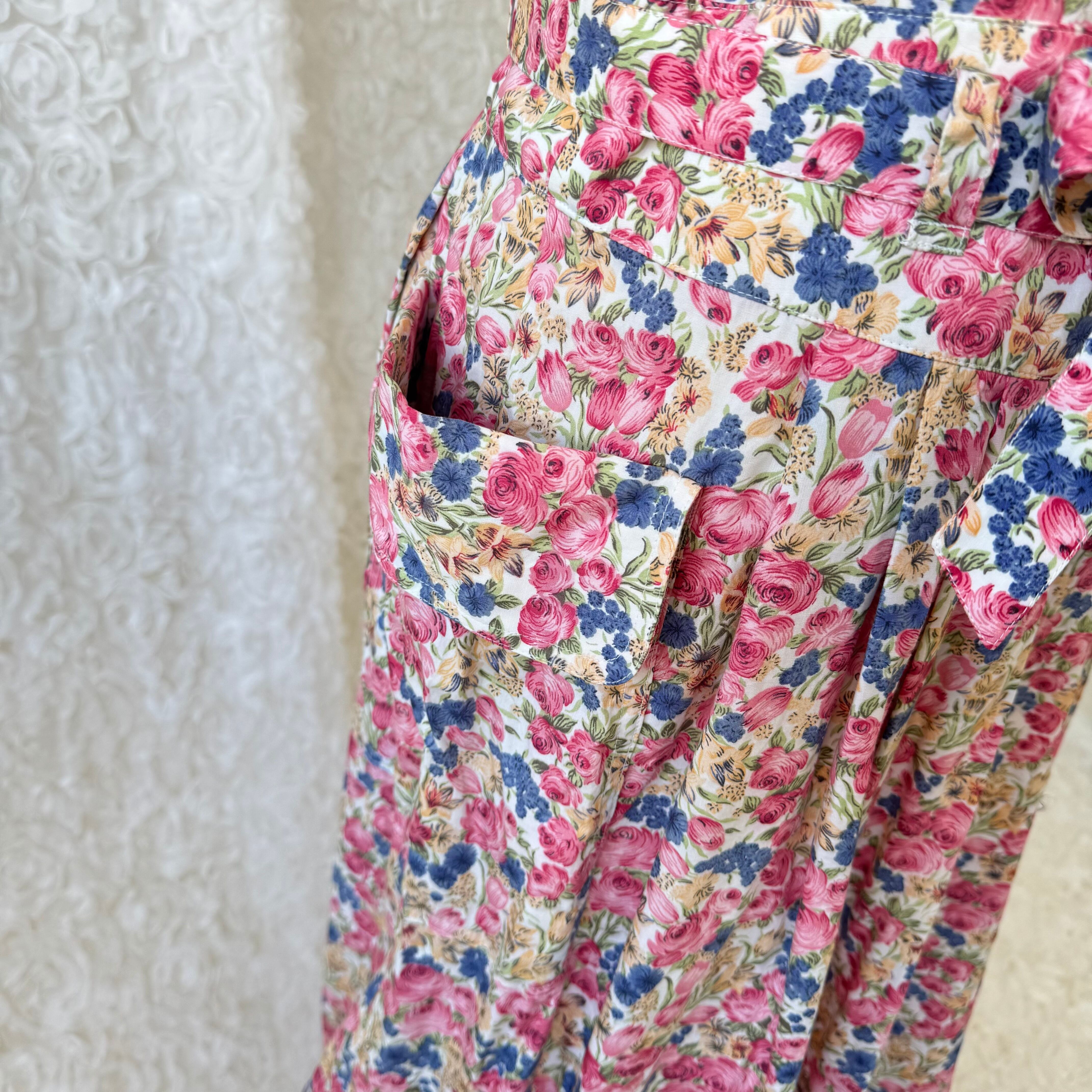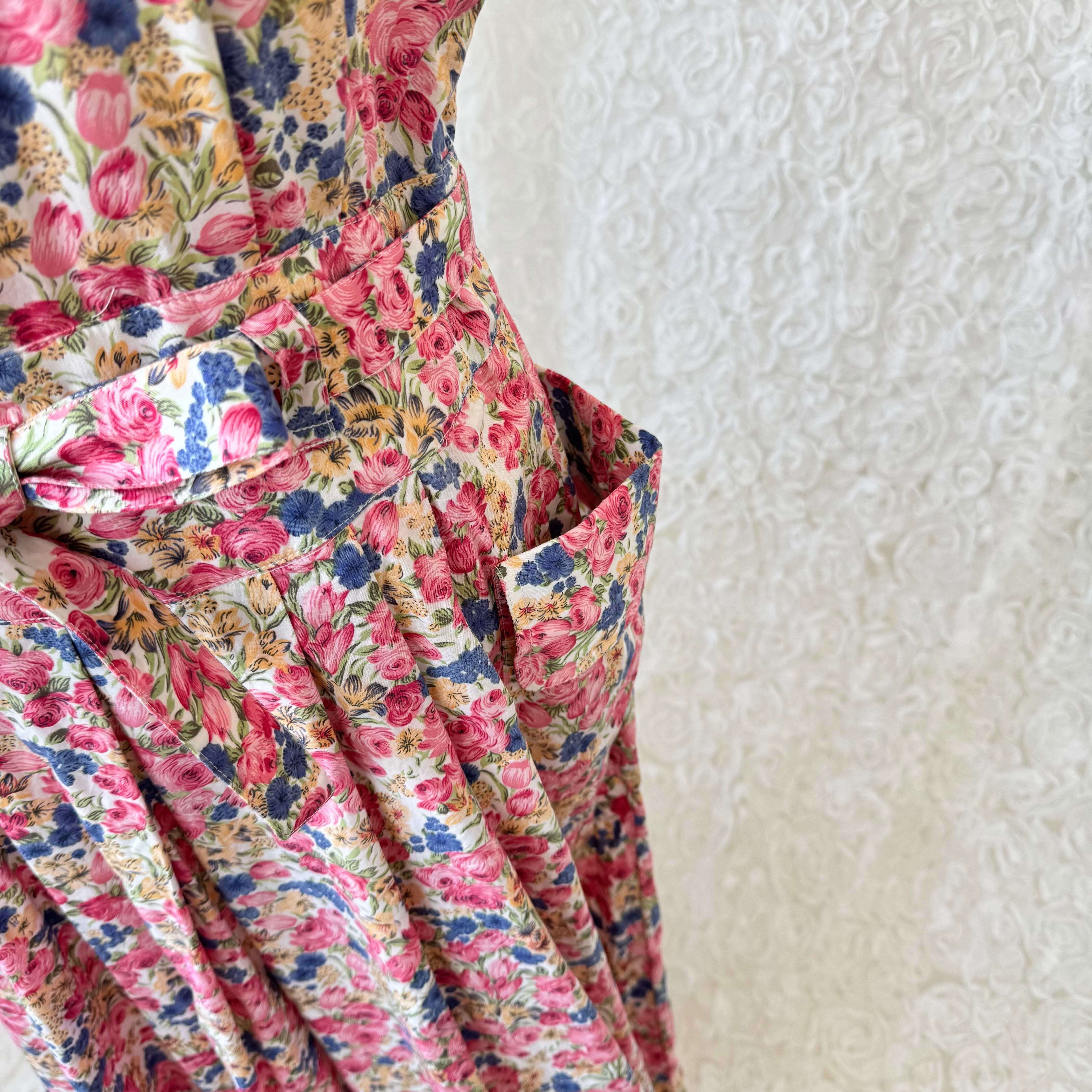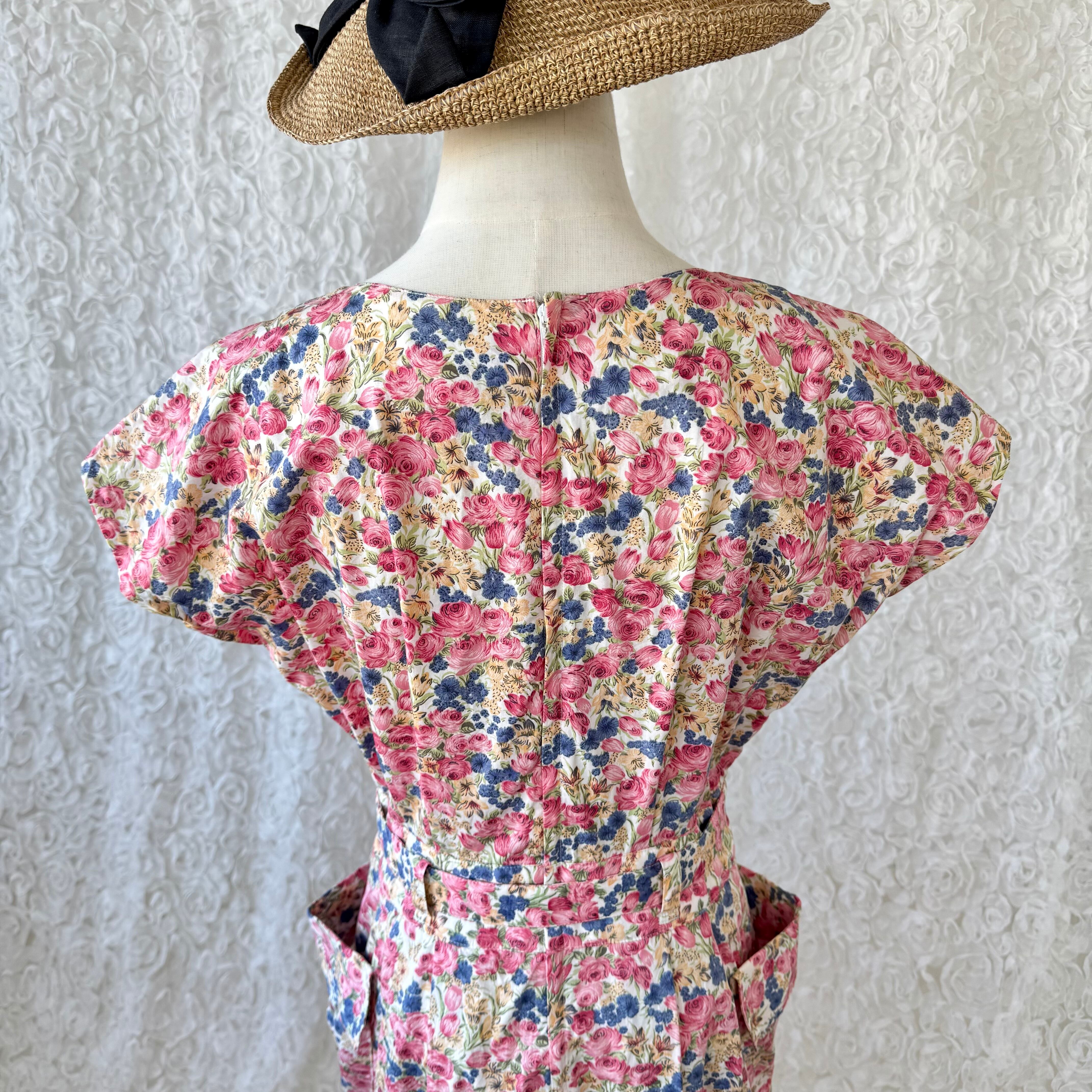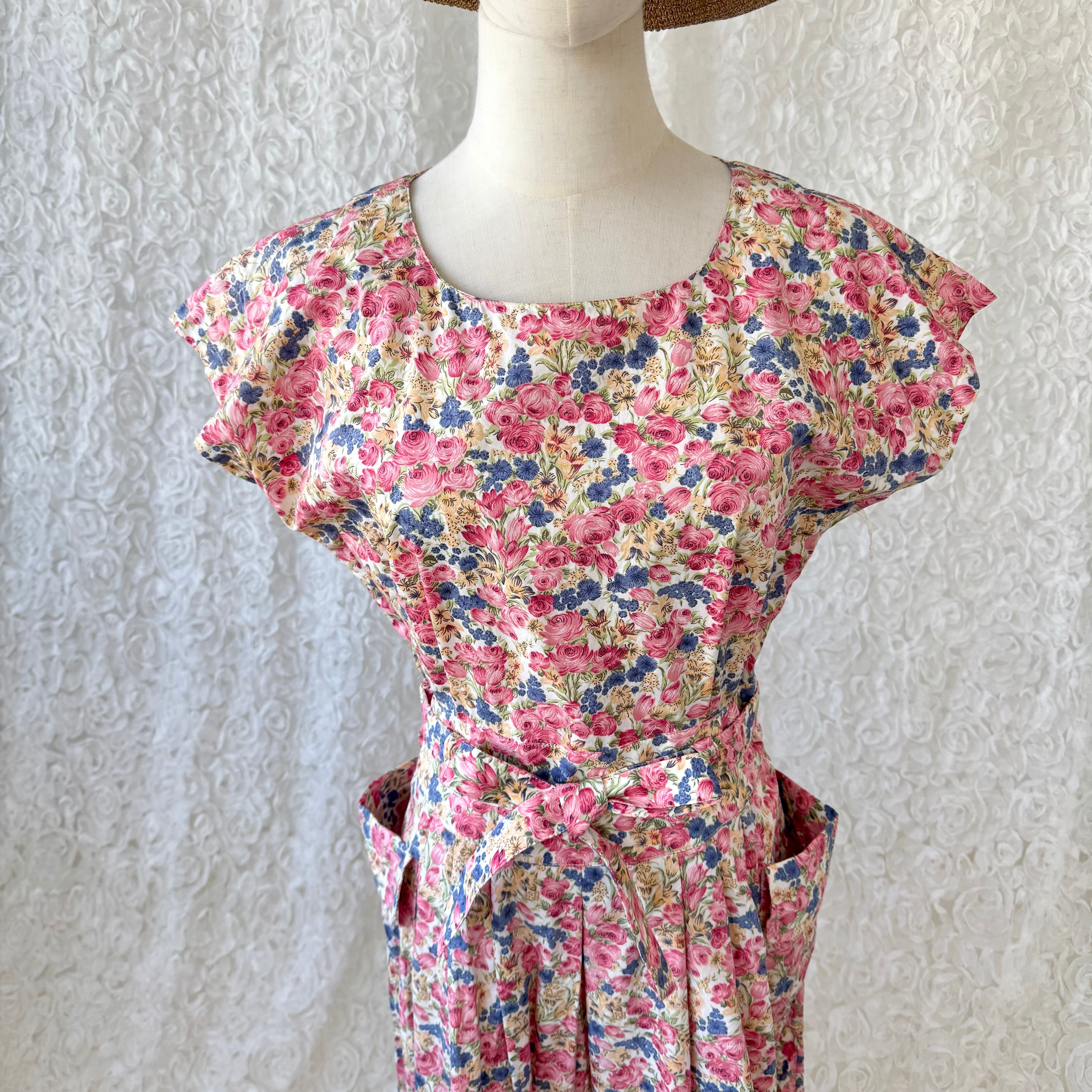 花柄ワンピース フレンチスリーブ ロングワンピース|リボンベルト付き レトロヴィンテージ
