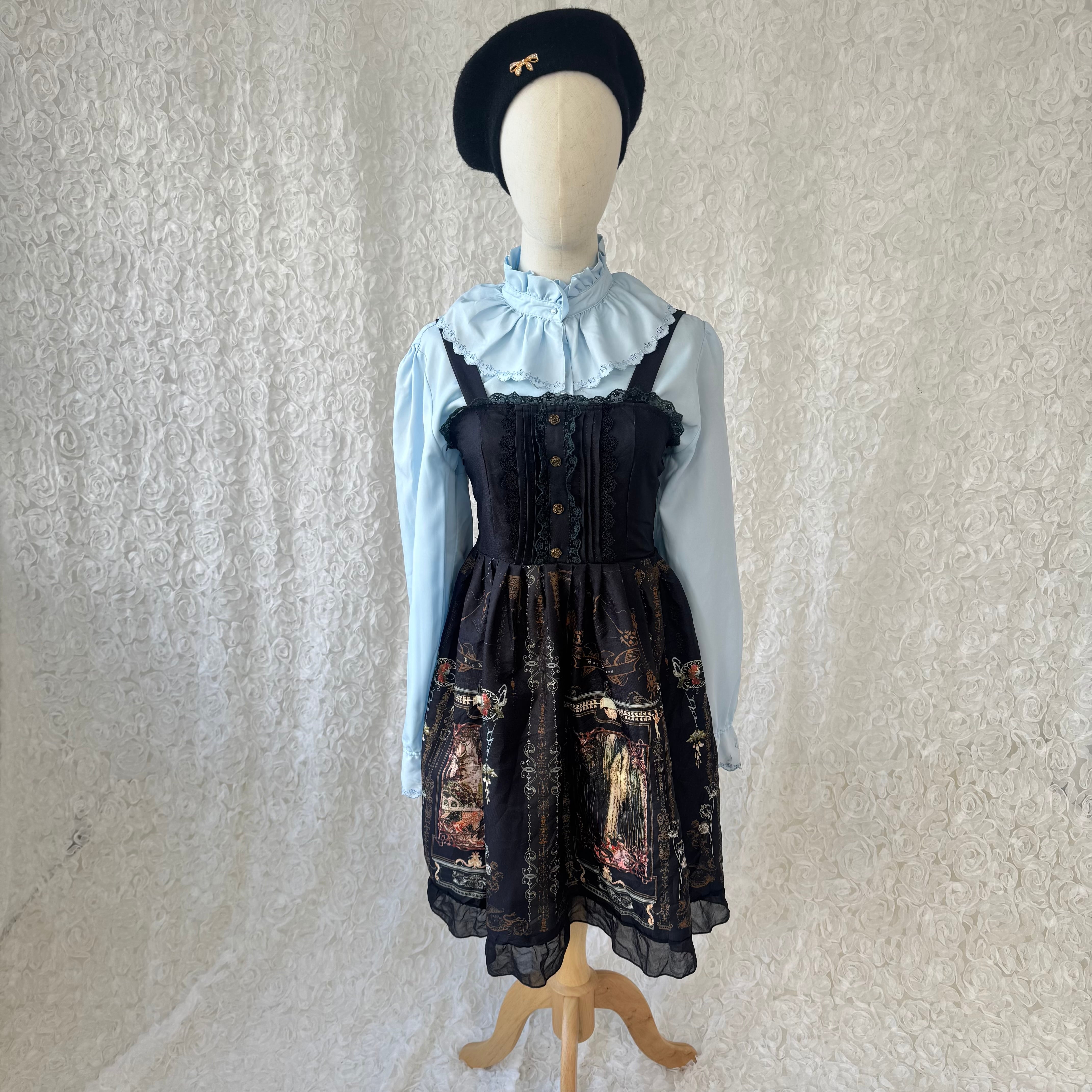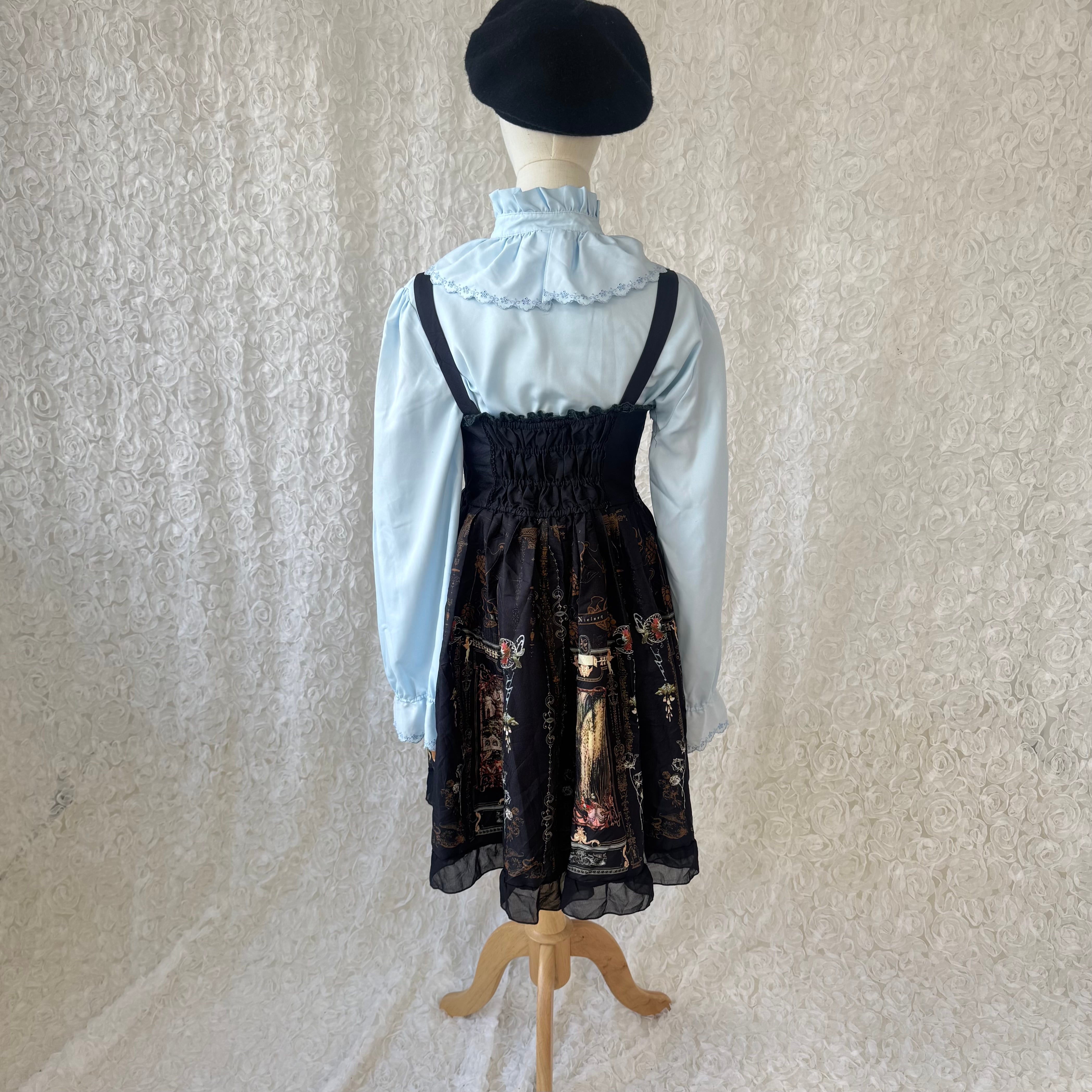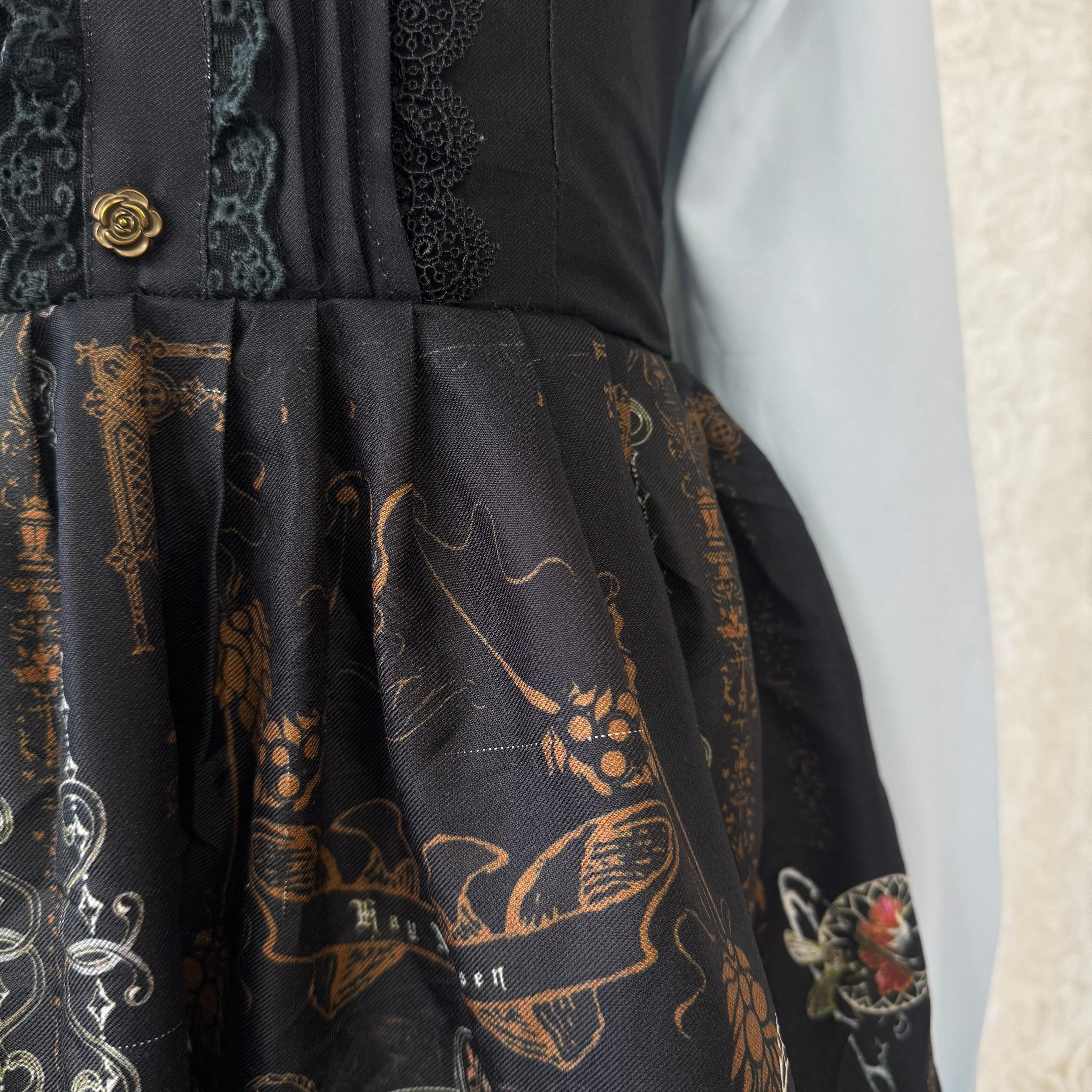 ゴシック アート柄 ジャンパースカート|レース装飾 コルセット風 ブラック JSK クラシカル