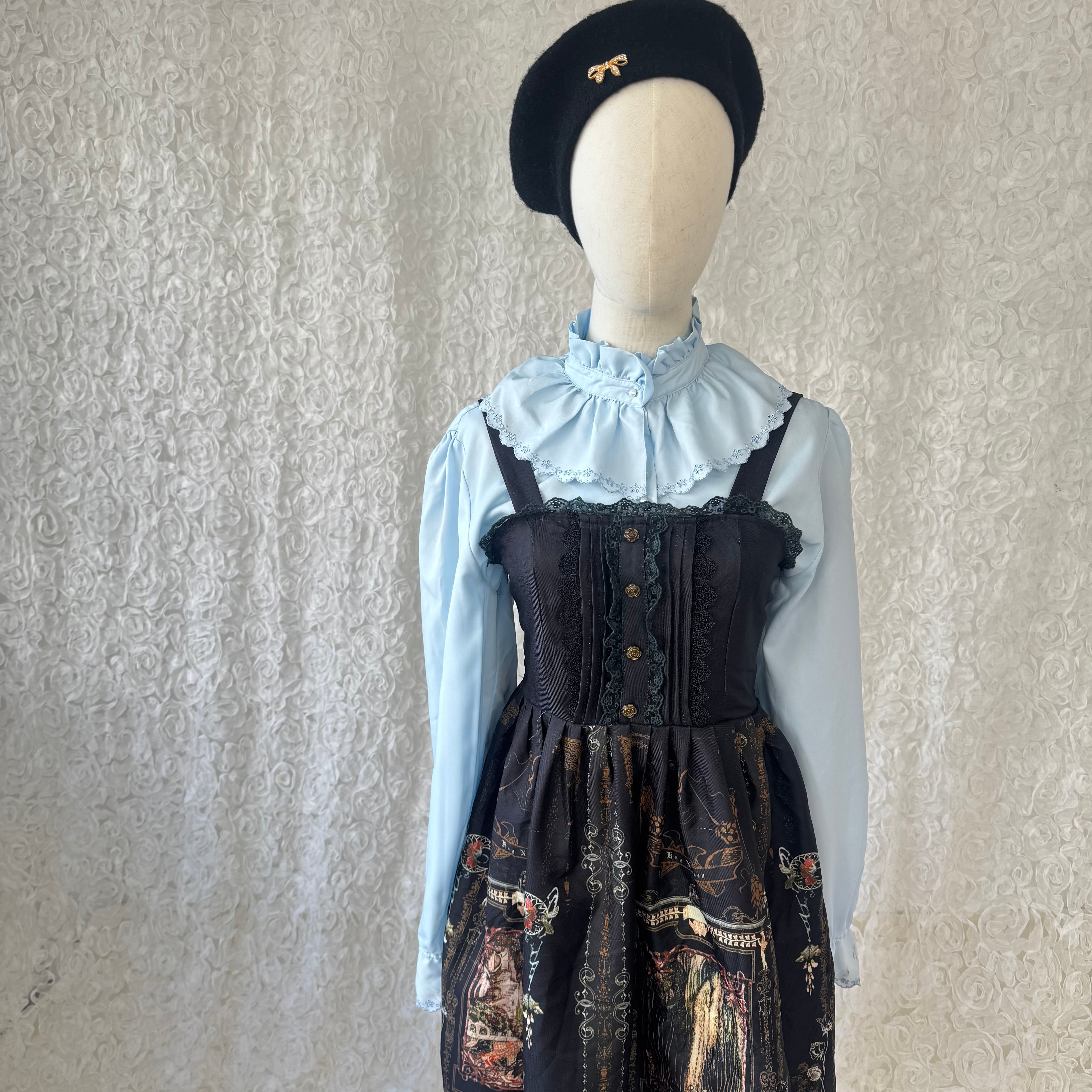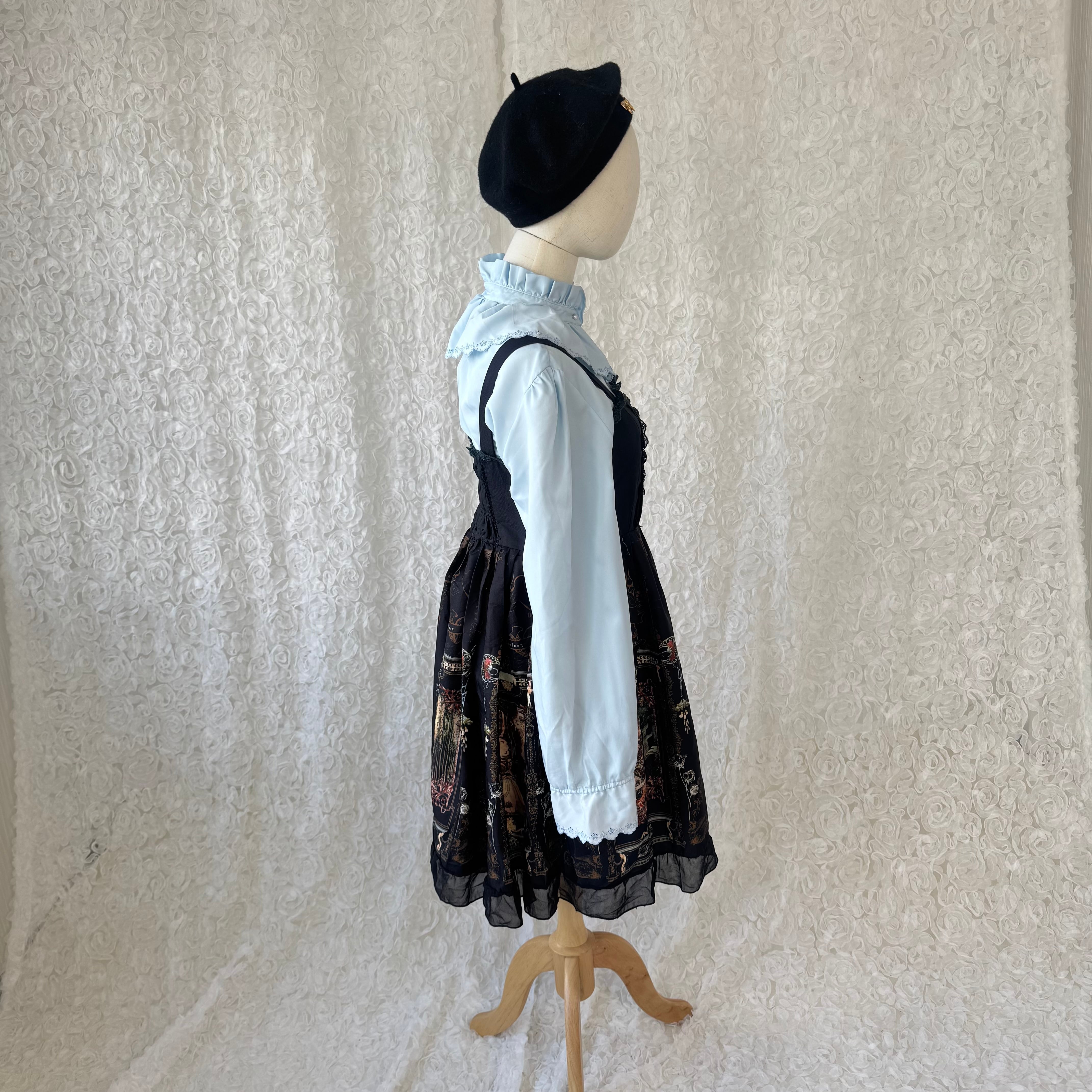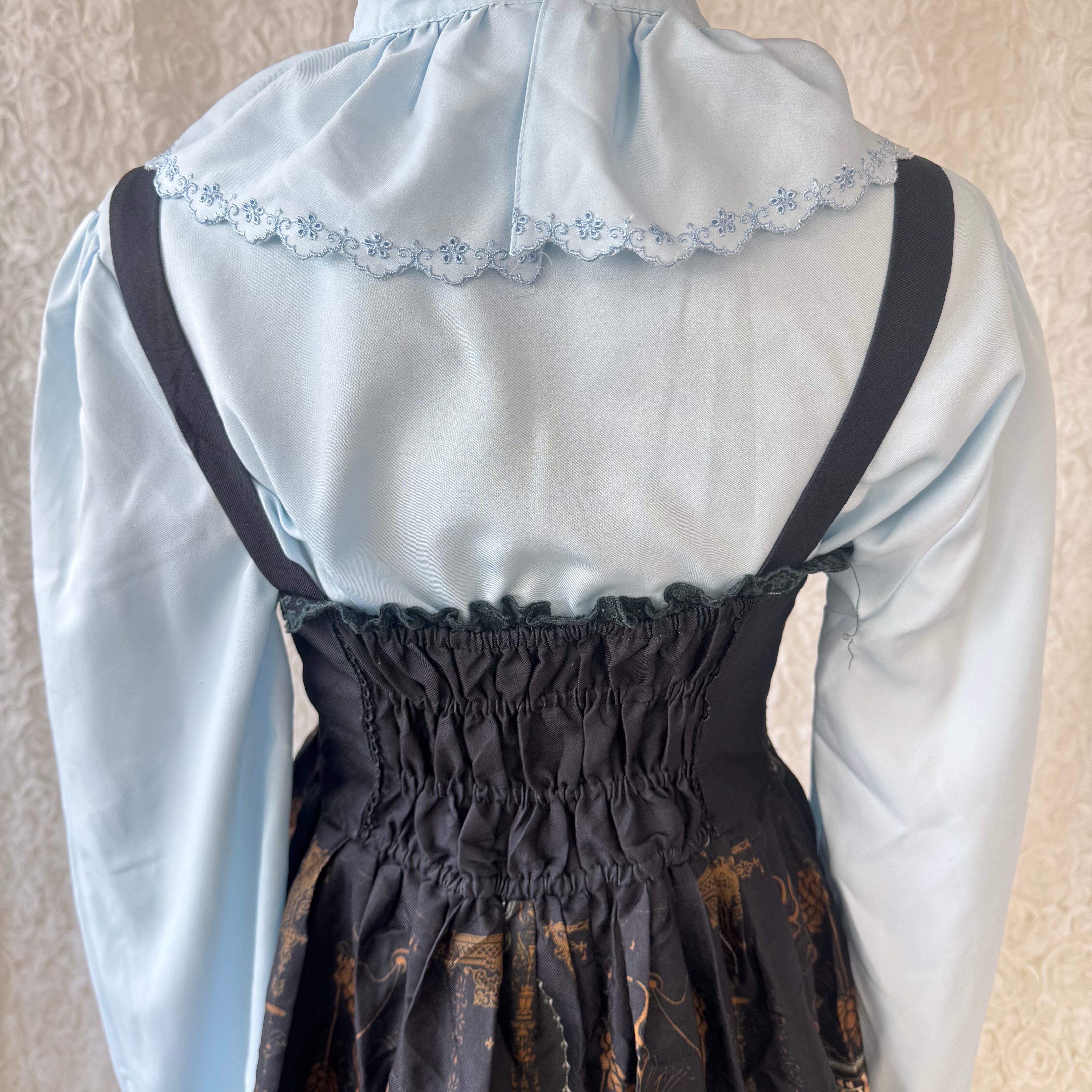 ゴシック アート柄 ジャンパースカート|レース装飾 コルセット風 ブラック JSK クラシカル