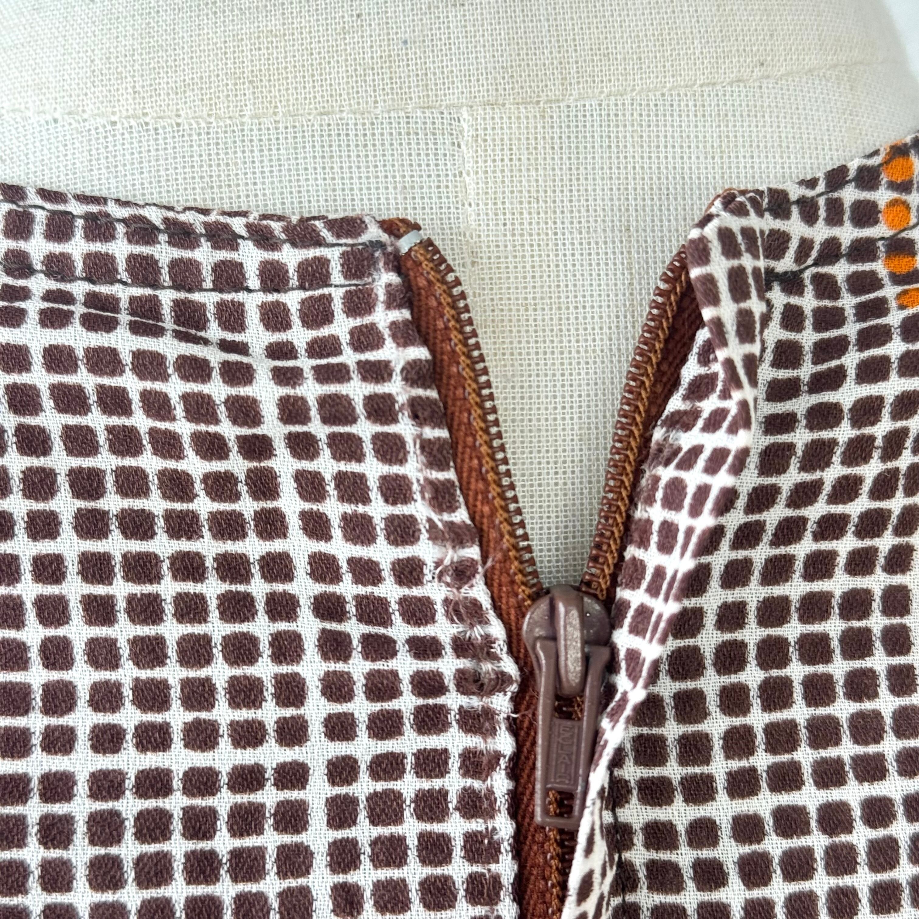 ファスナー近くの生地にほつれがあります。