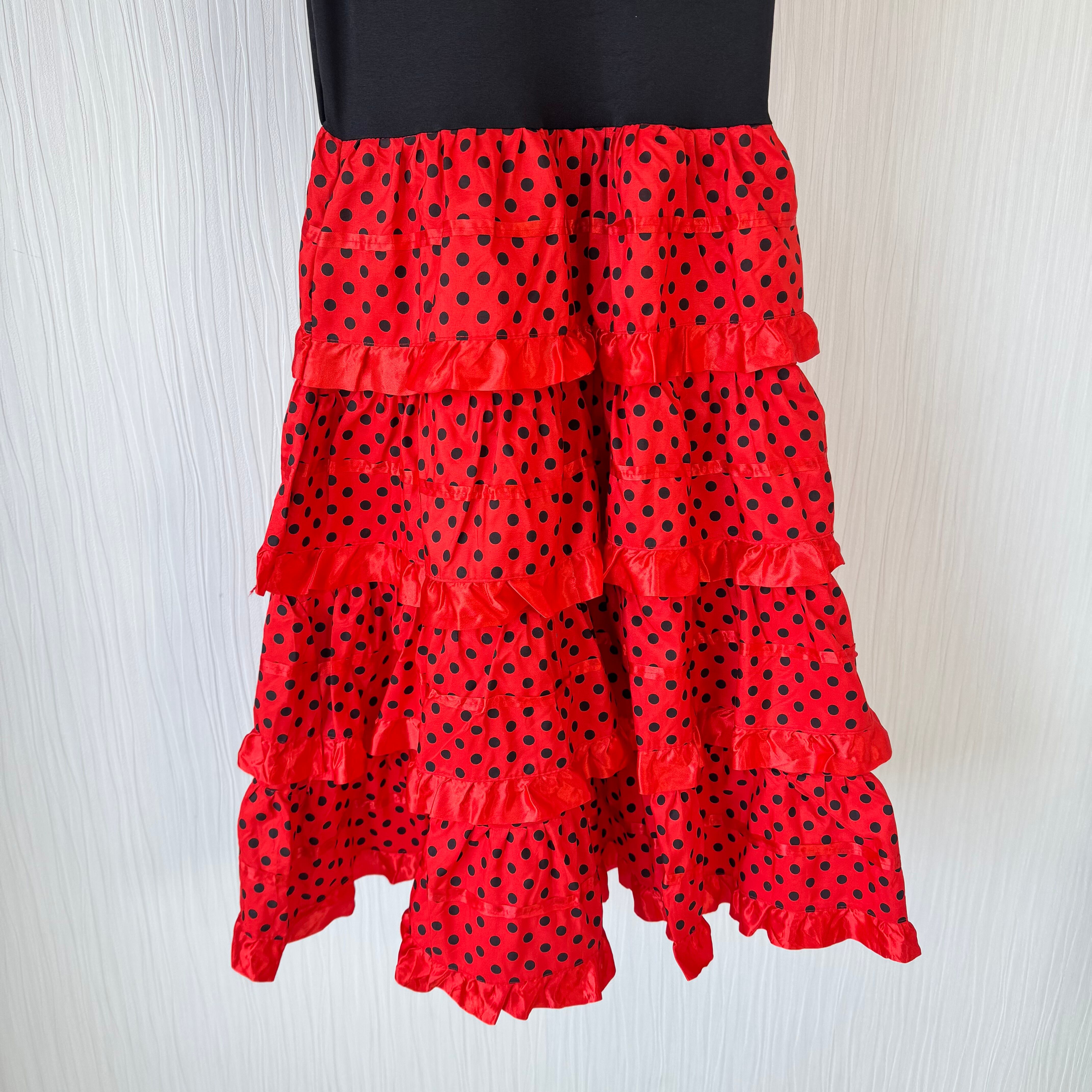 赤×黒のコントラストが印象的なフラメンコムード漂うデザインワンピース。