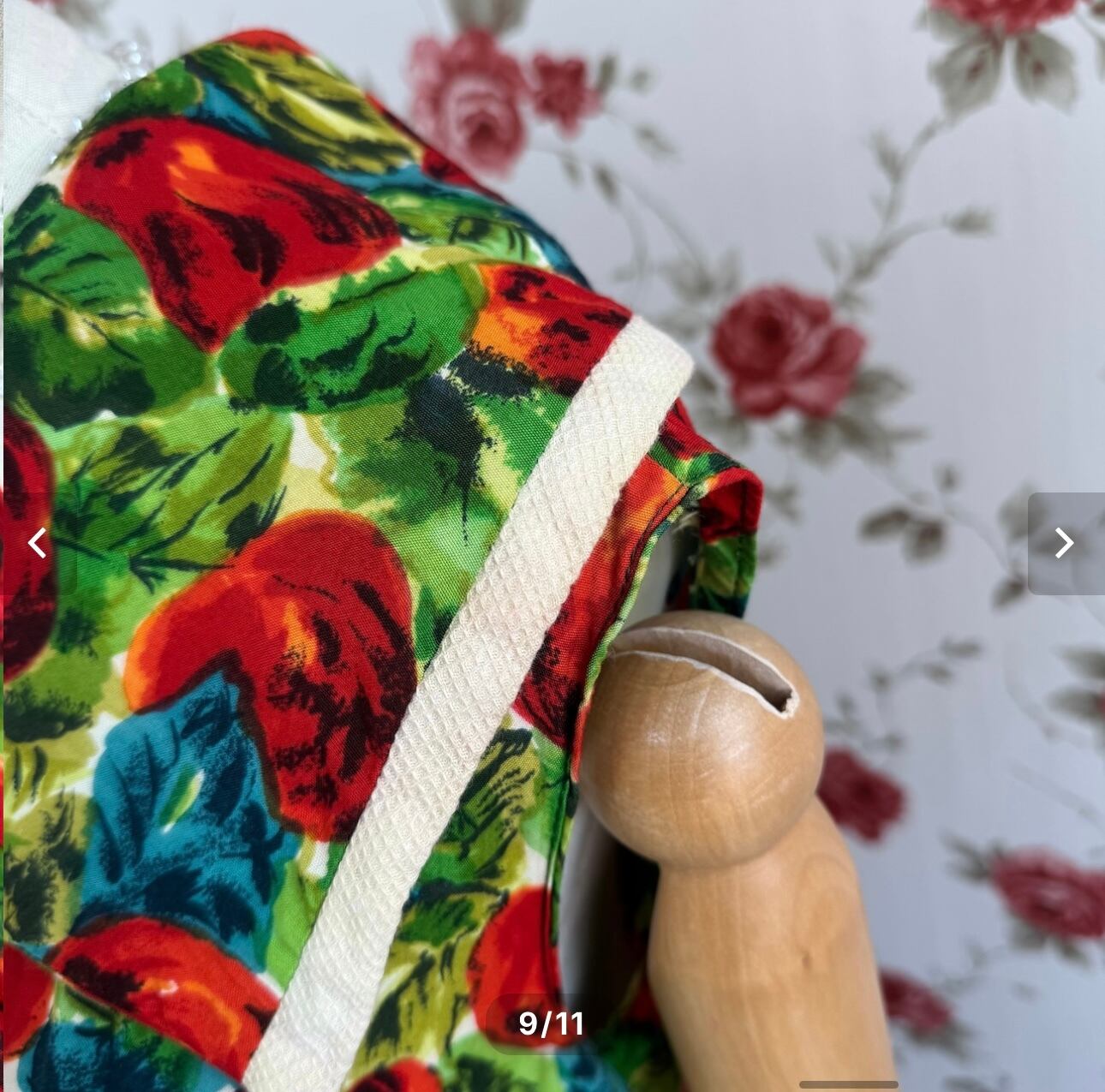 新緑のグリーンリーフ模様のヴィンテージノースリーブワンピースです。