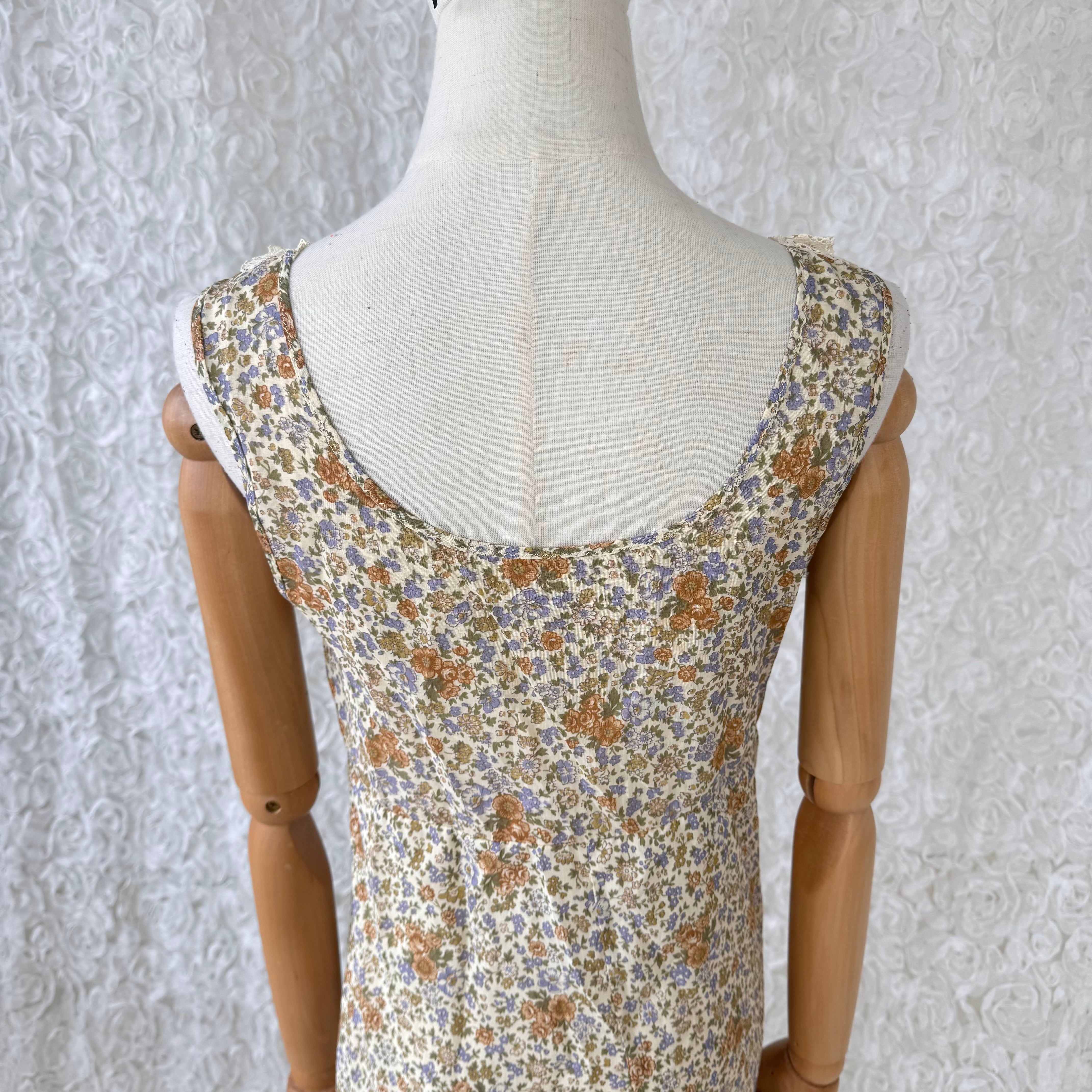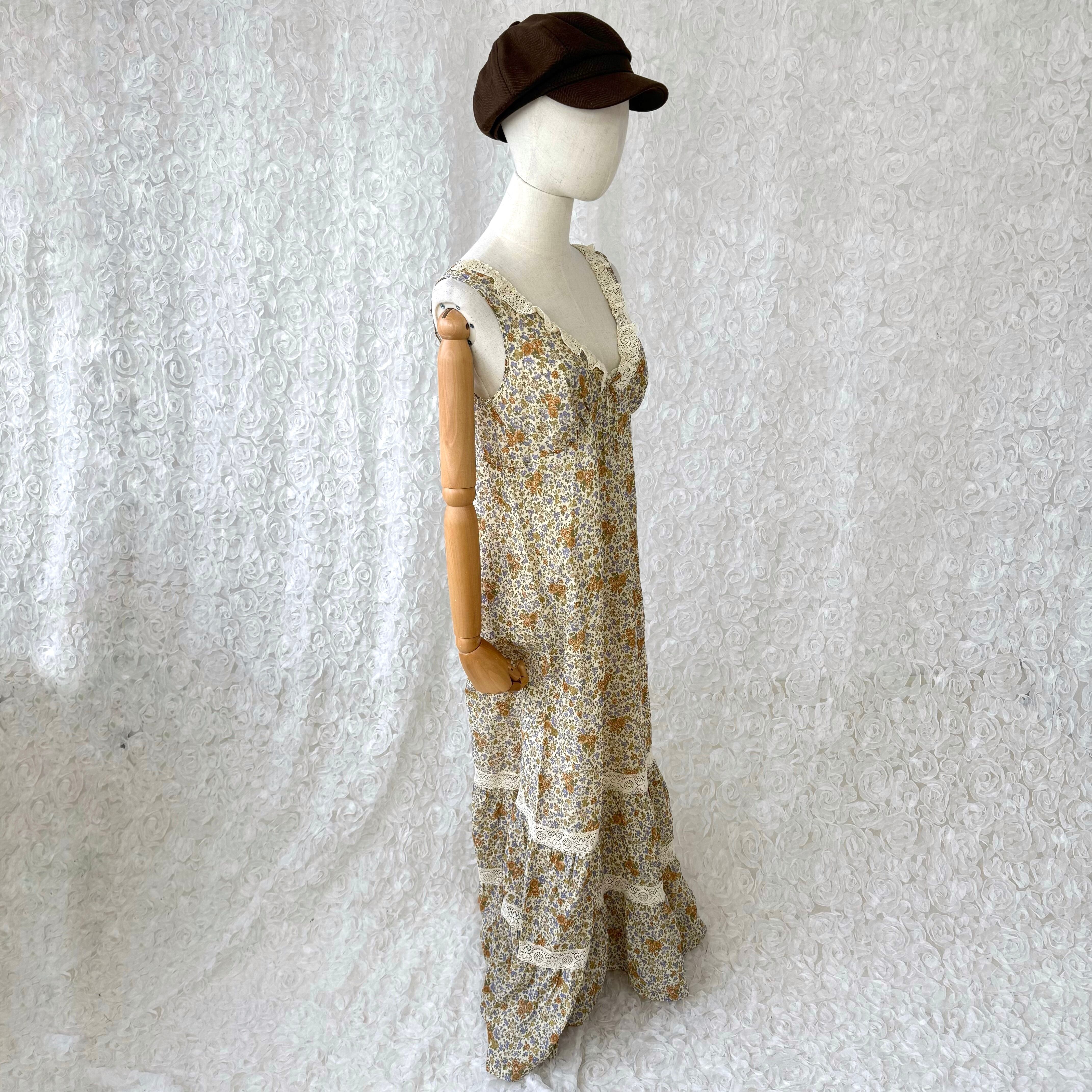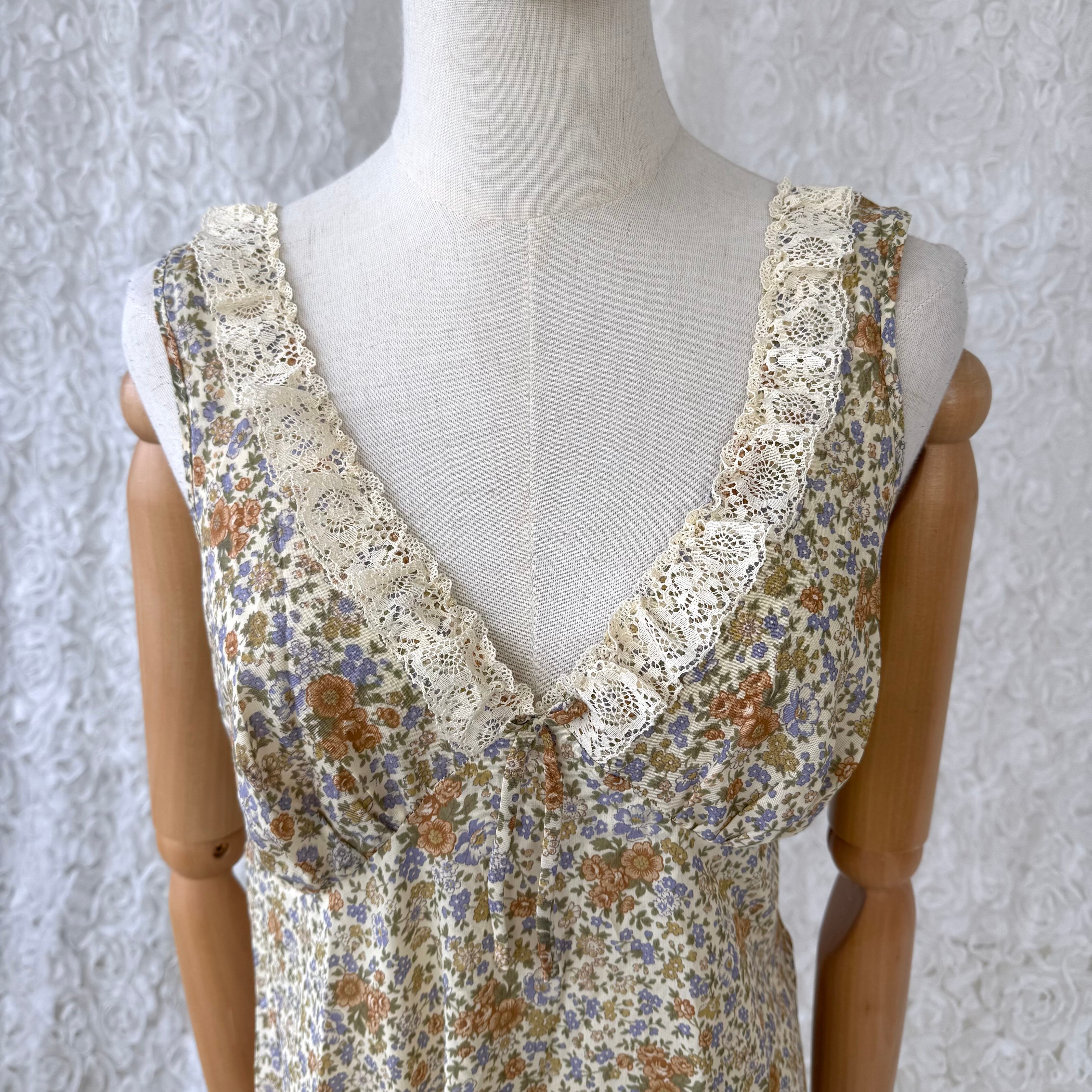 St Michael 英国製 小花柄 レース切替 ノースリーブ ロングワンピース 70s〜80s UKヴィンテージ