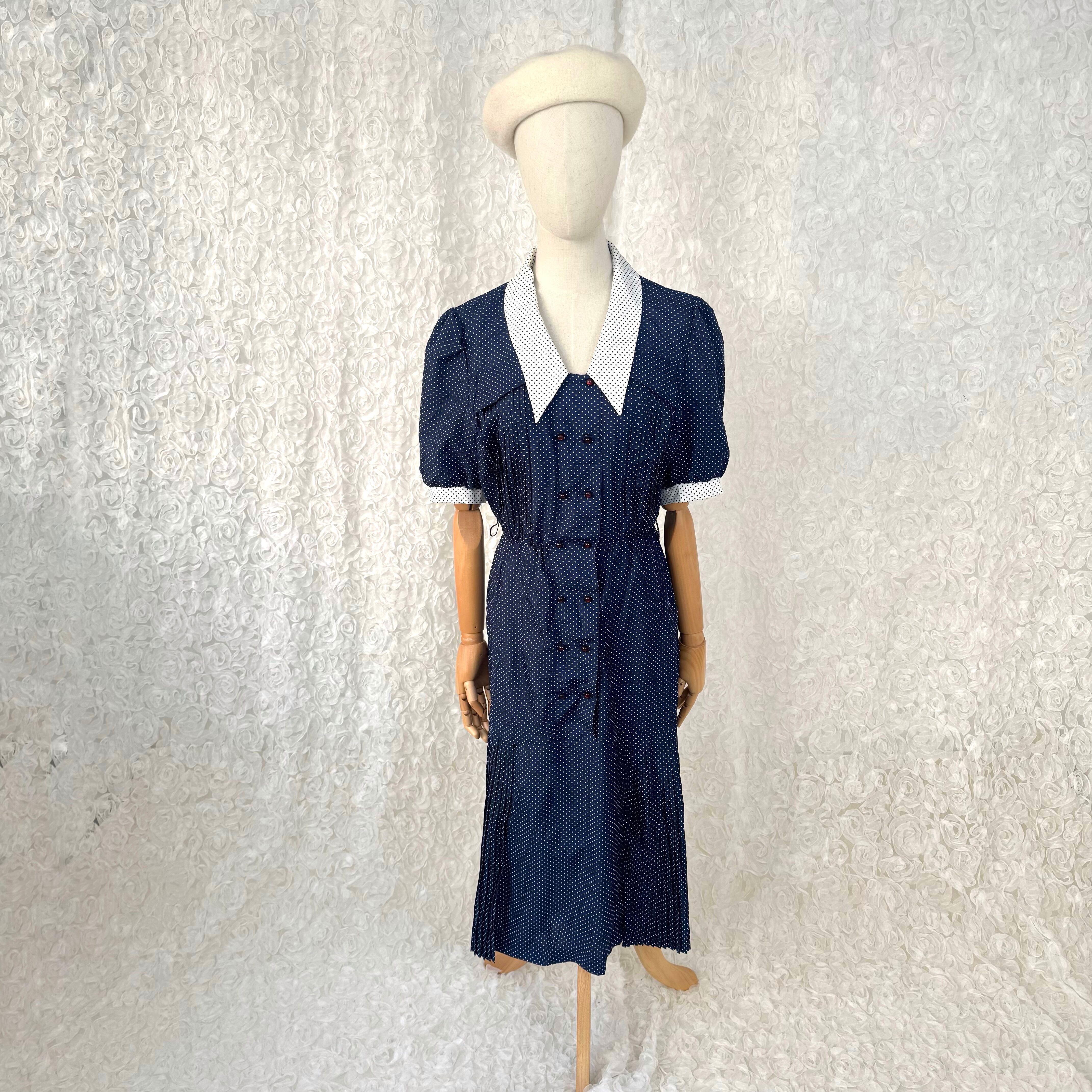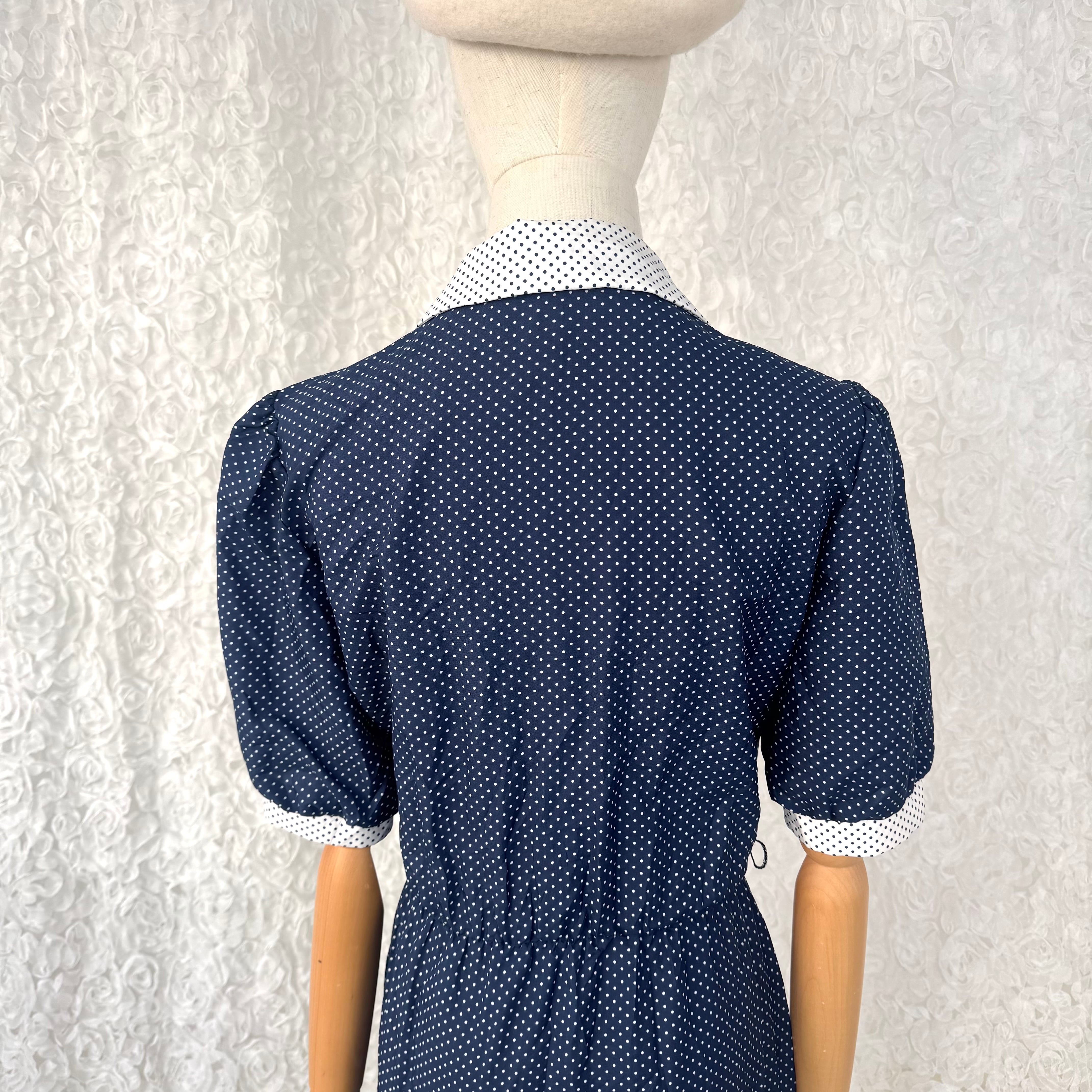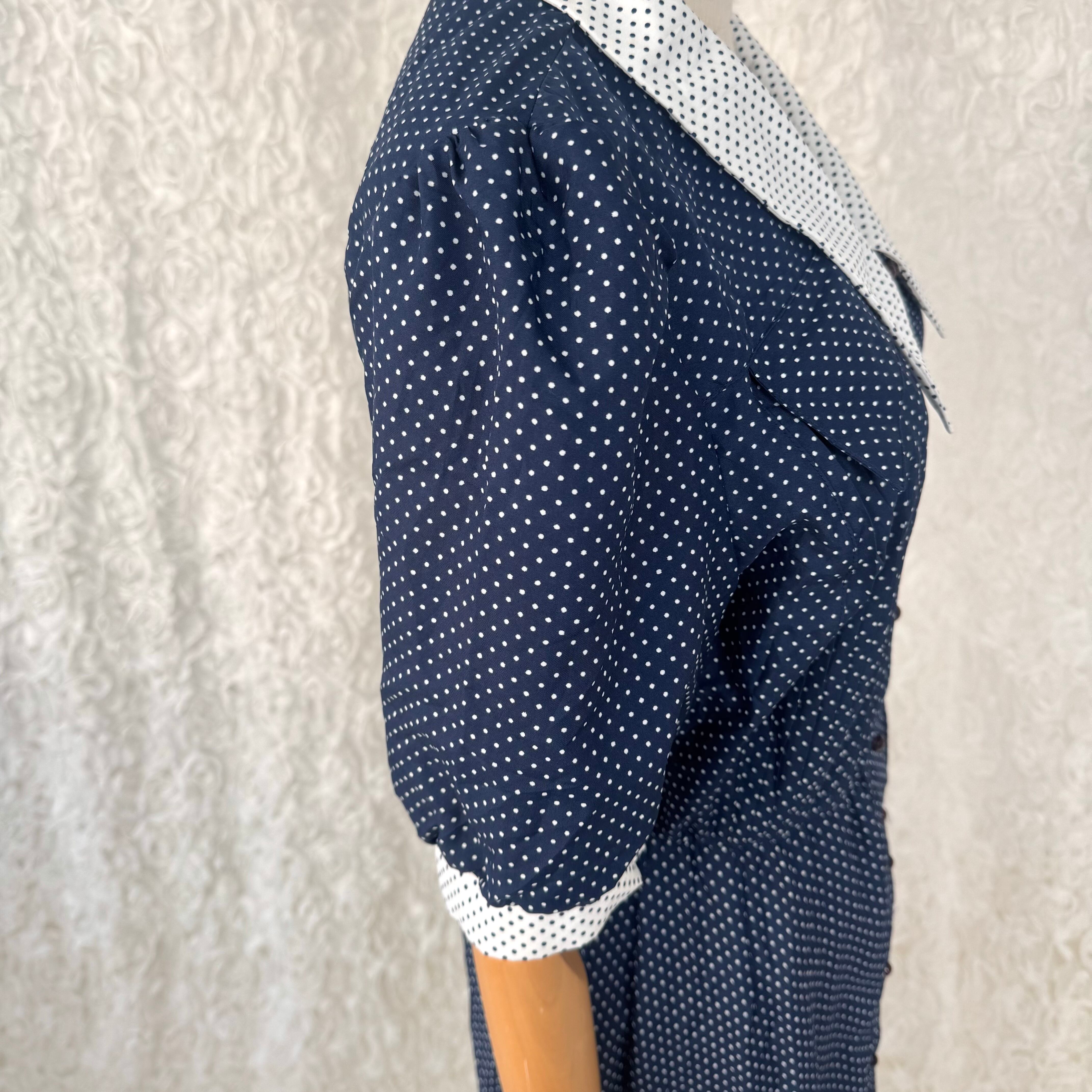 FRANÇOISE DE FRANCE フランス製 ドット柄ビッグカラー 半袖 ロングワンピース ネイビーxホワイト ヴィンテージ