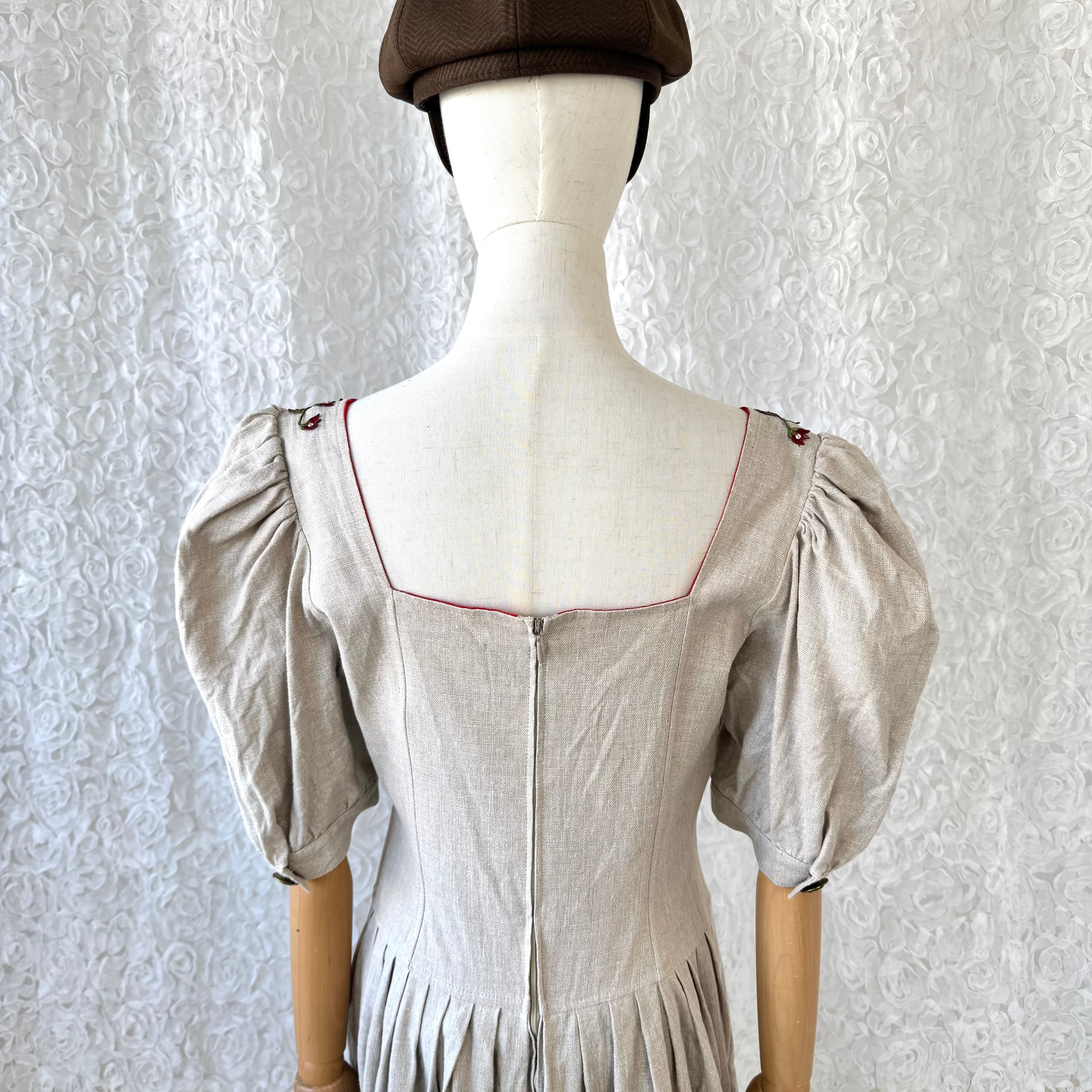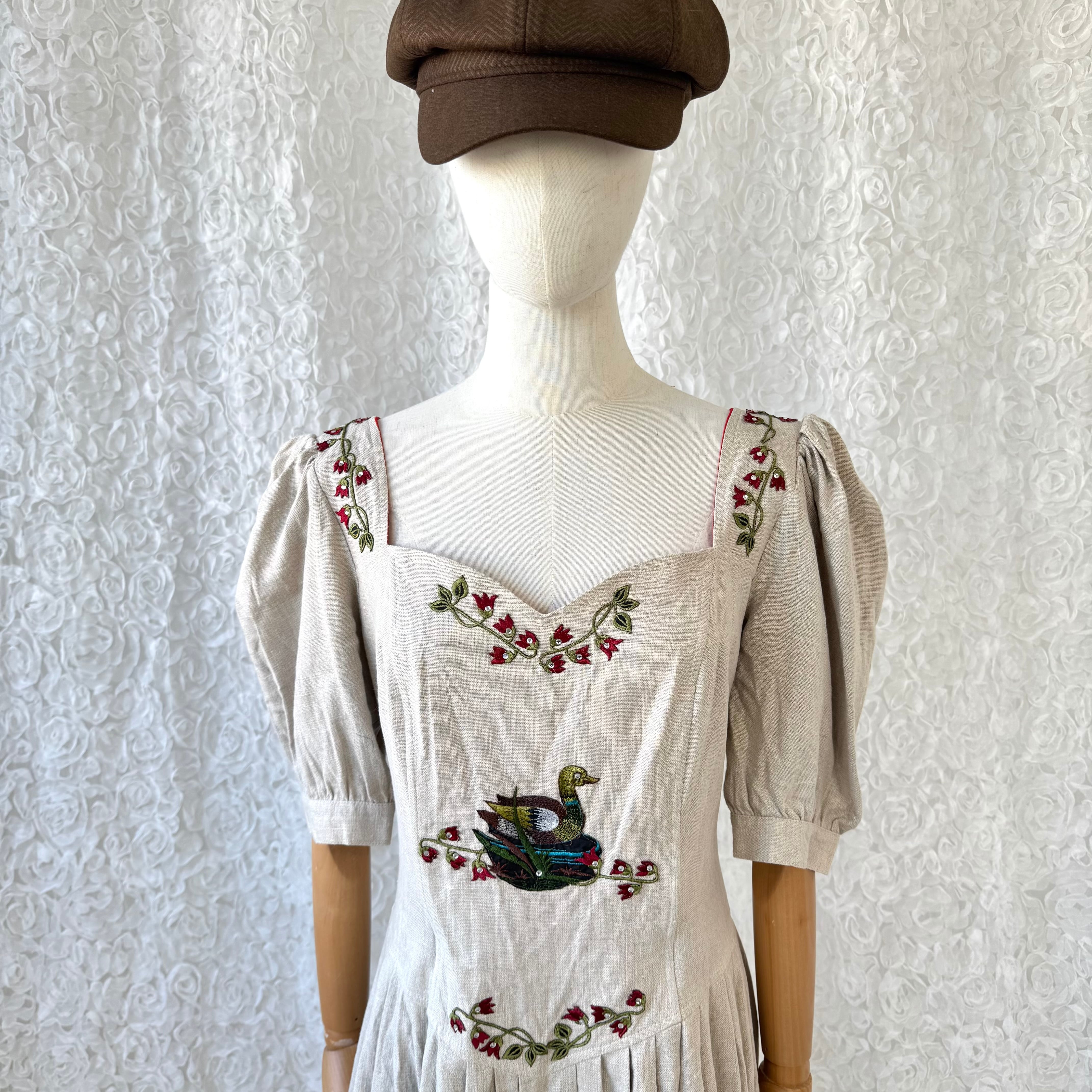 ヨーロピアンヴィンテージ DANA HAUER 刺繍デザイン チロルワンピース 裾レース取り外し可 バックファスナー