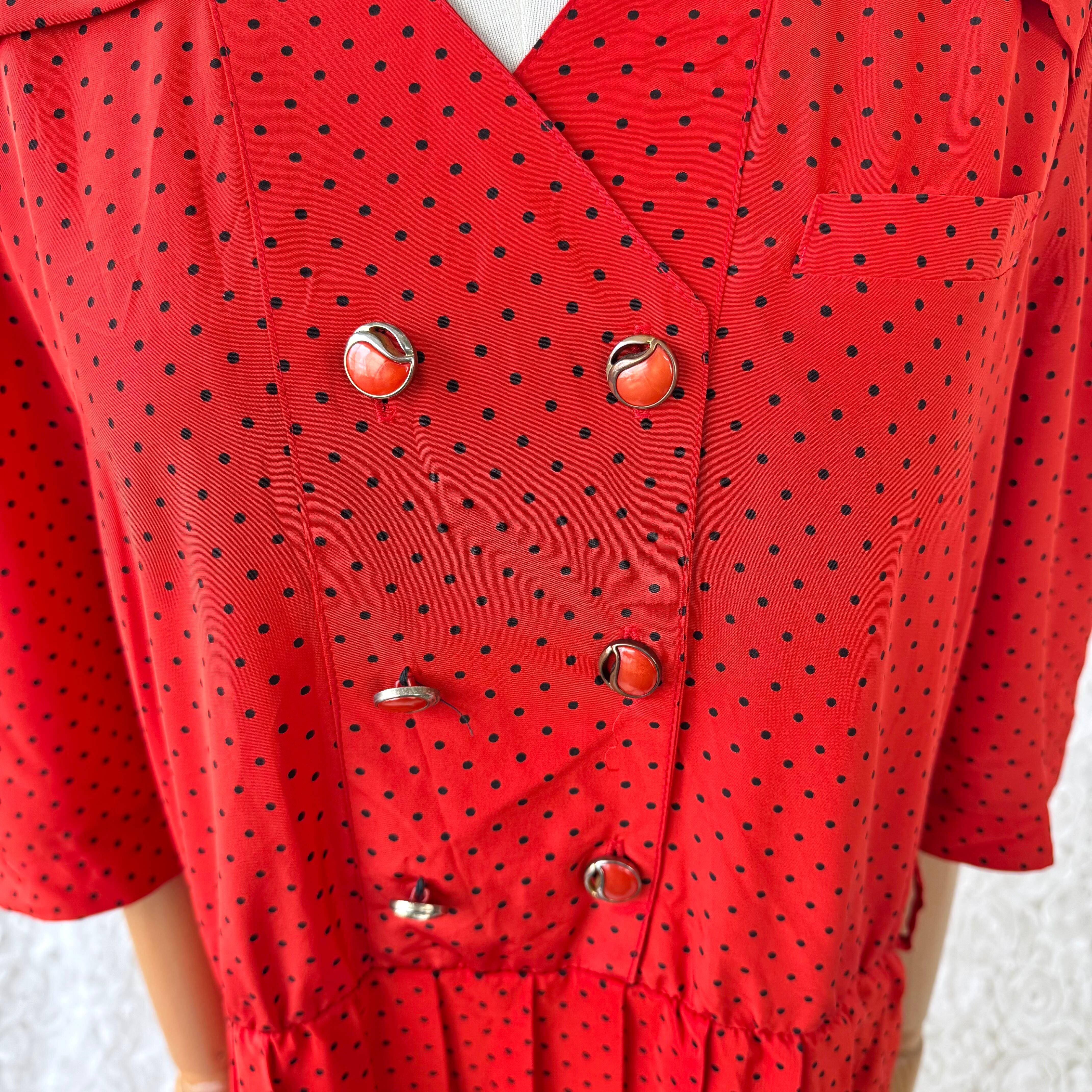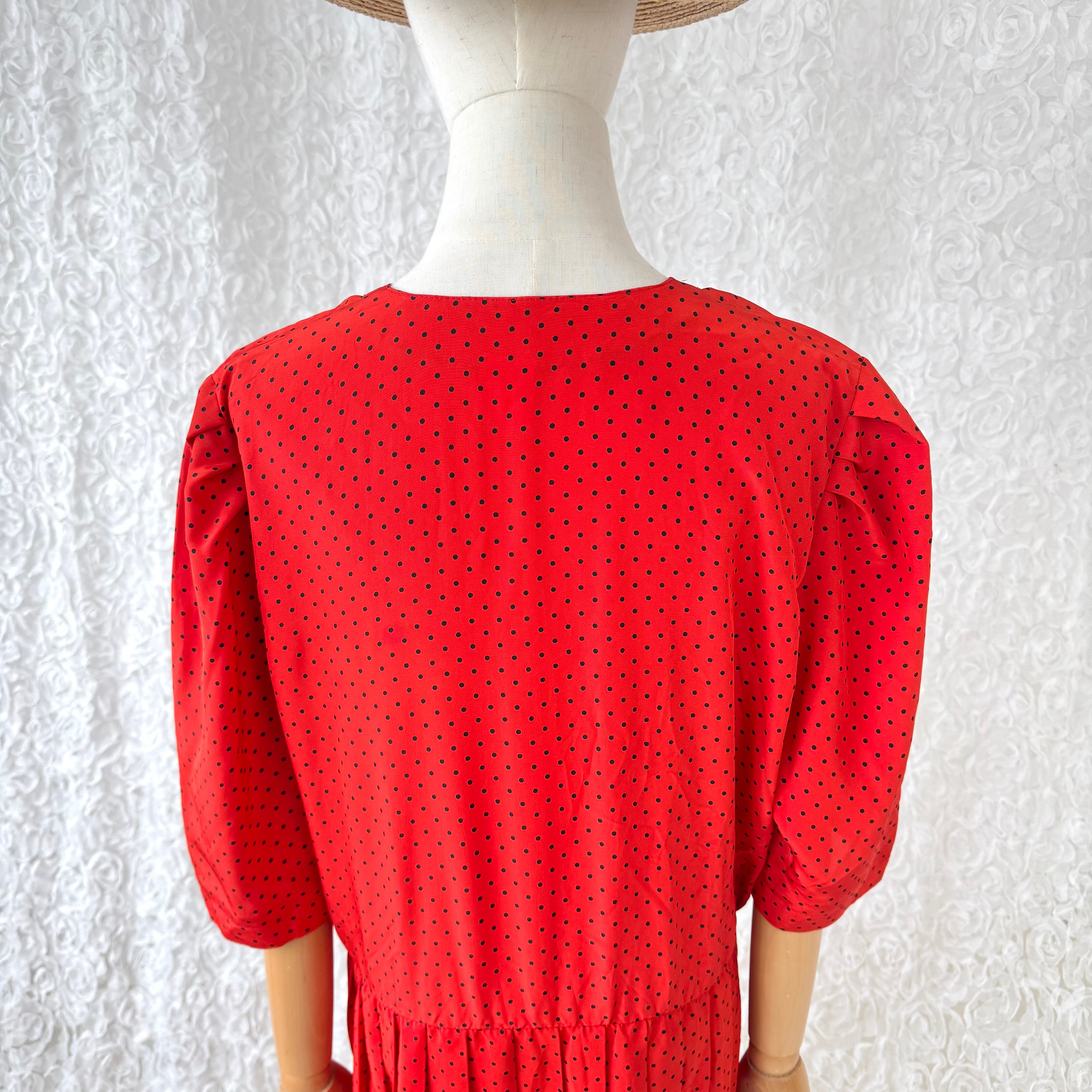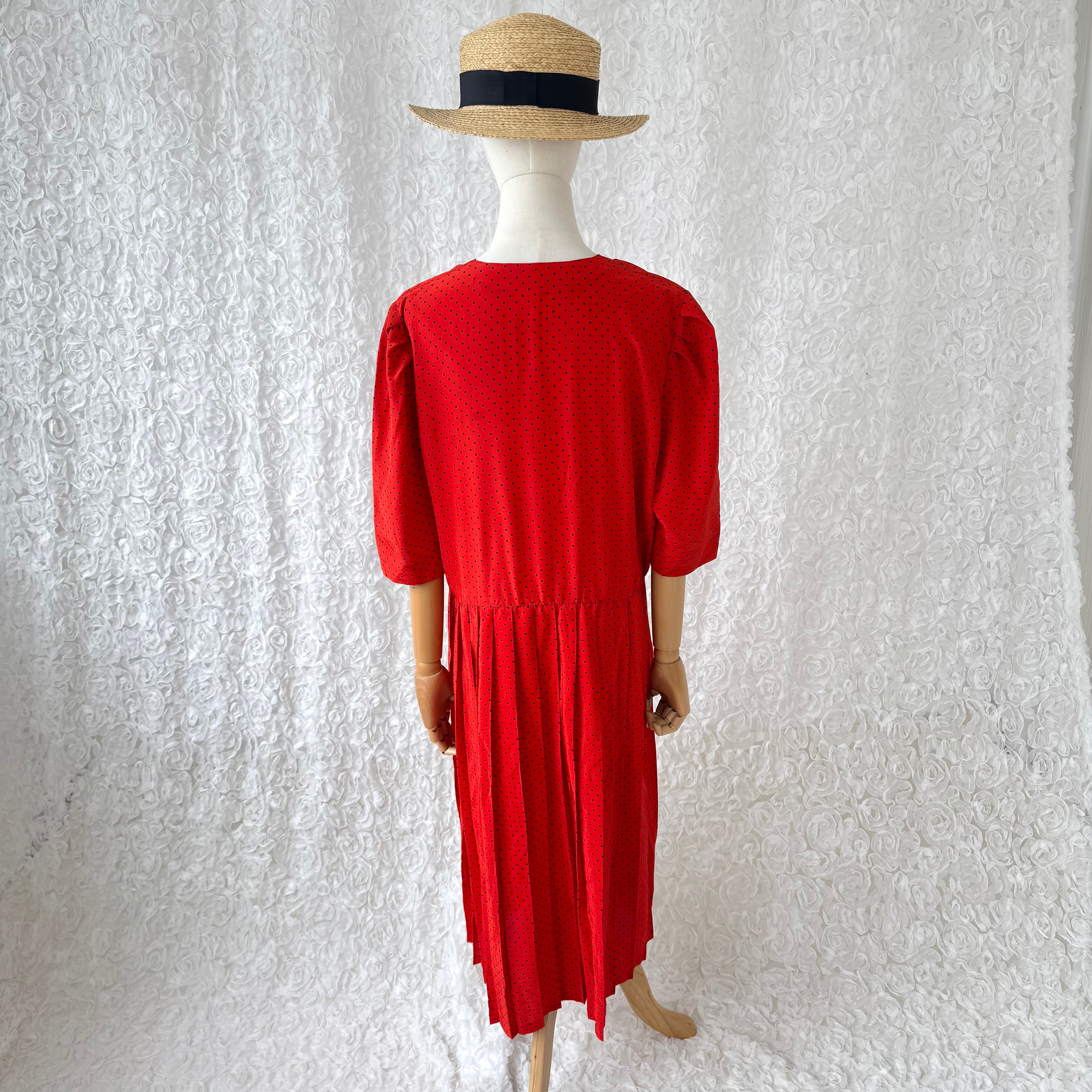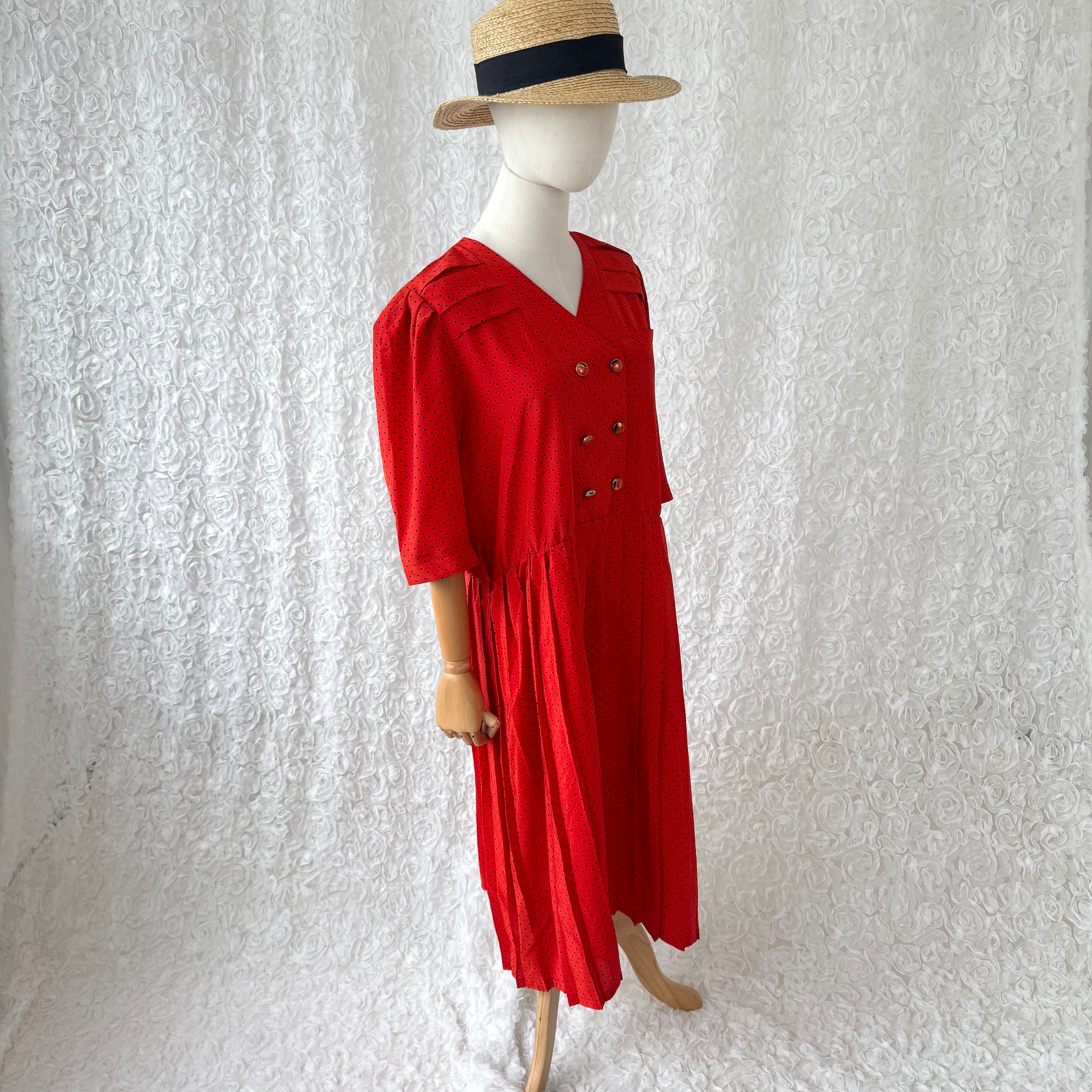 フランス製 赤×黒 ポルカドット レトロワンピース 五分袖 ユーロヴィンテージ
