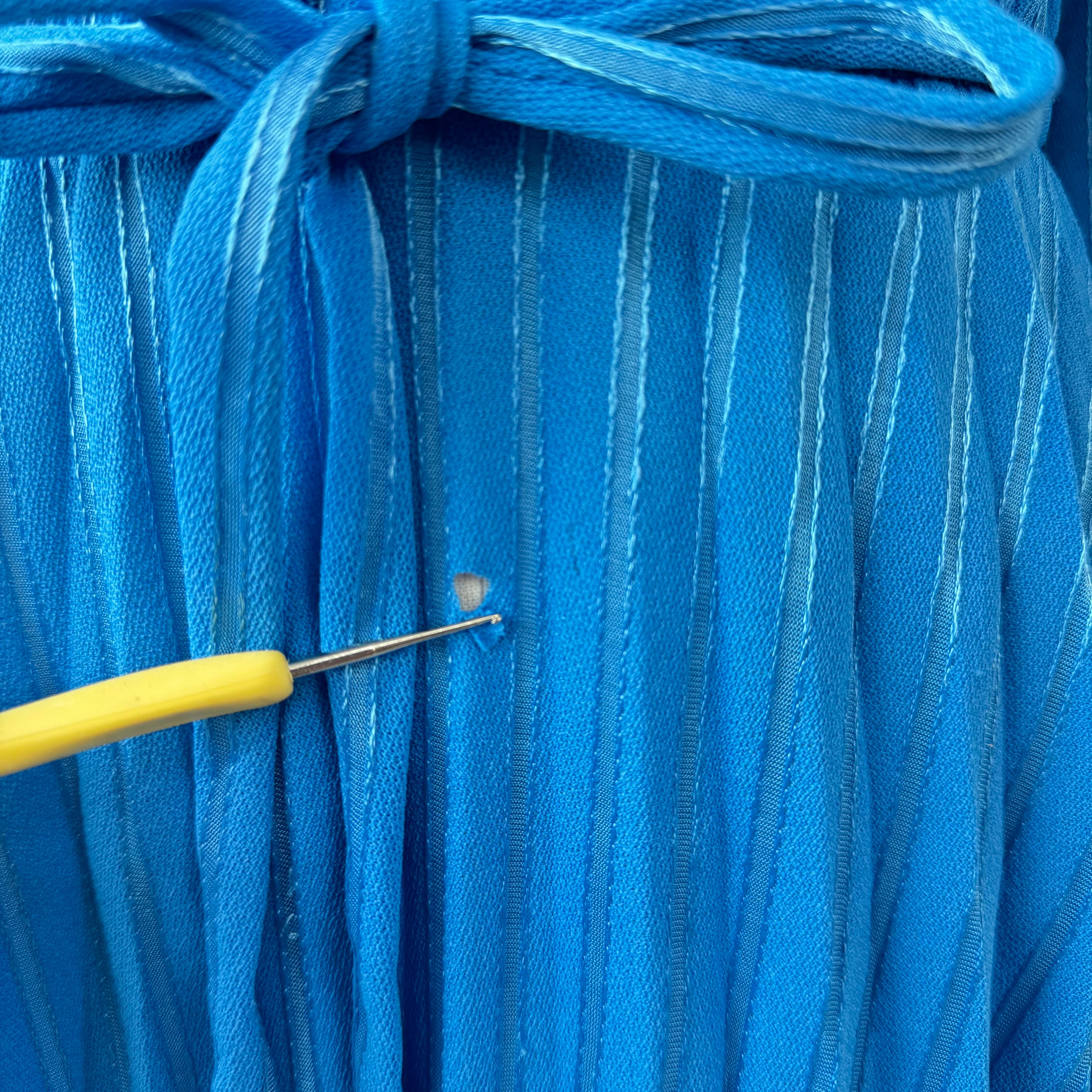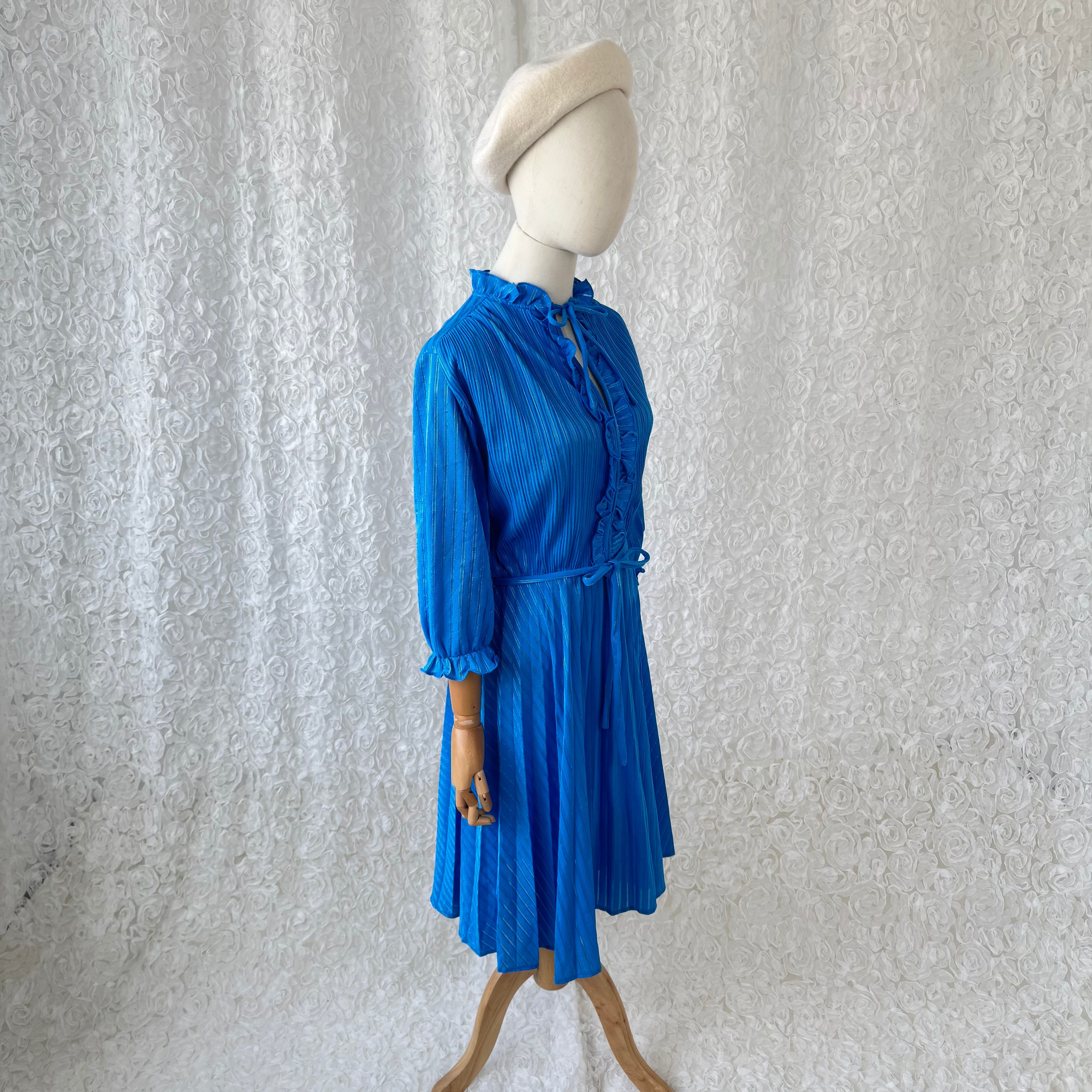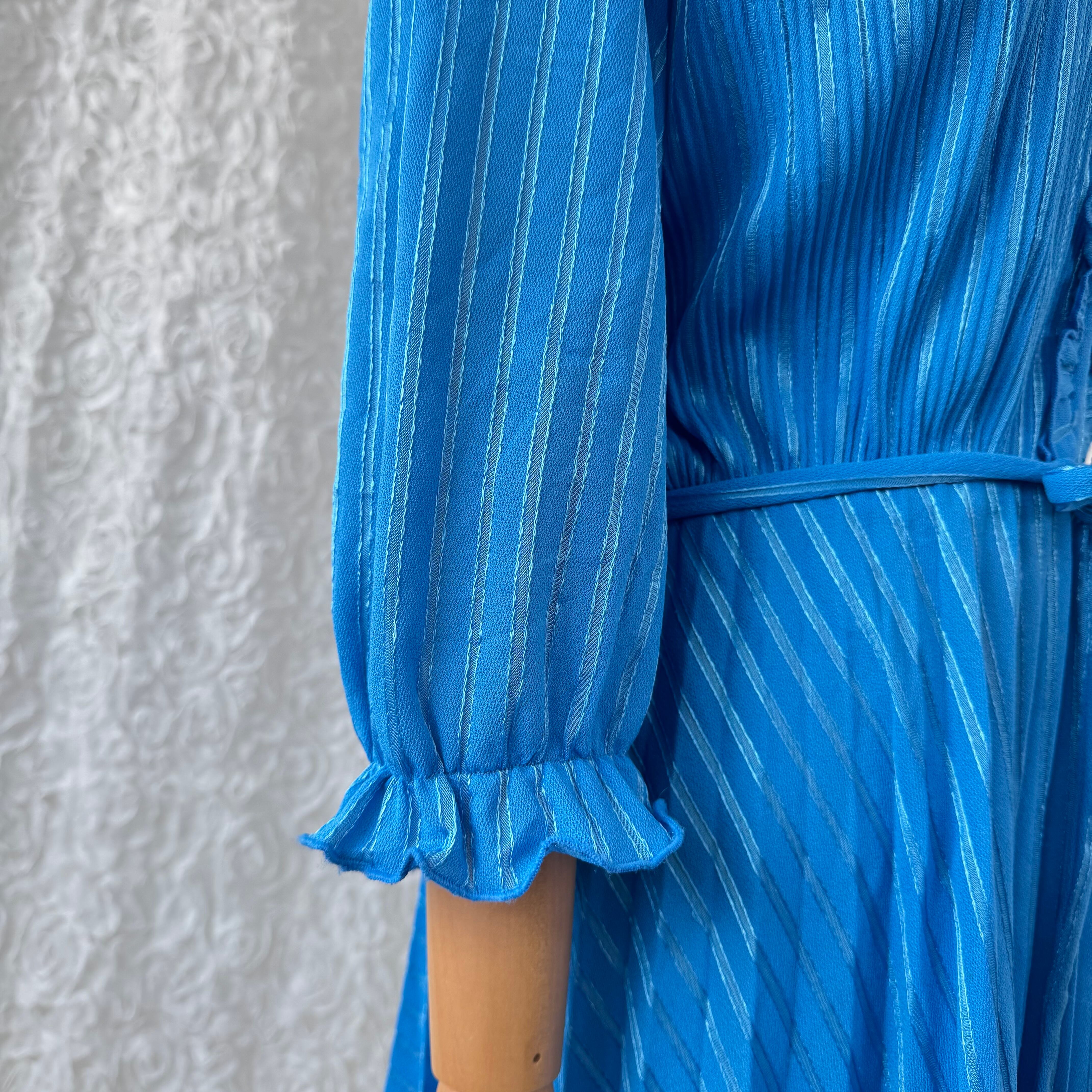 C&A フリルデザイン リボンタイ プリーツワンピース 七部袖 ベルト付き ターコイズブルー
