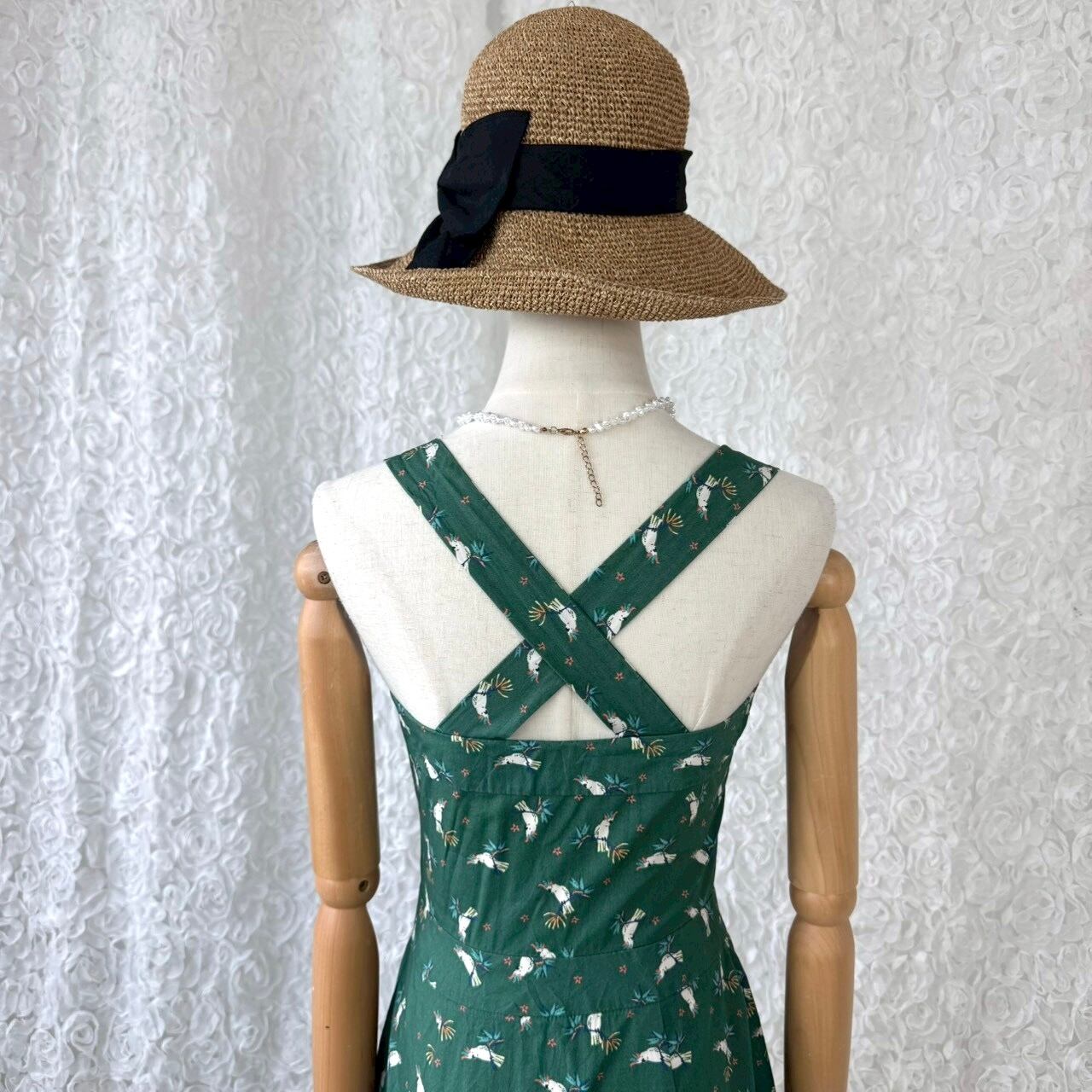 鳥柄プリント オウム柄 レーヨンワンピース バッククロス
