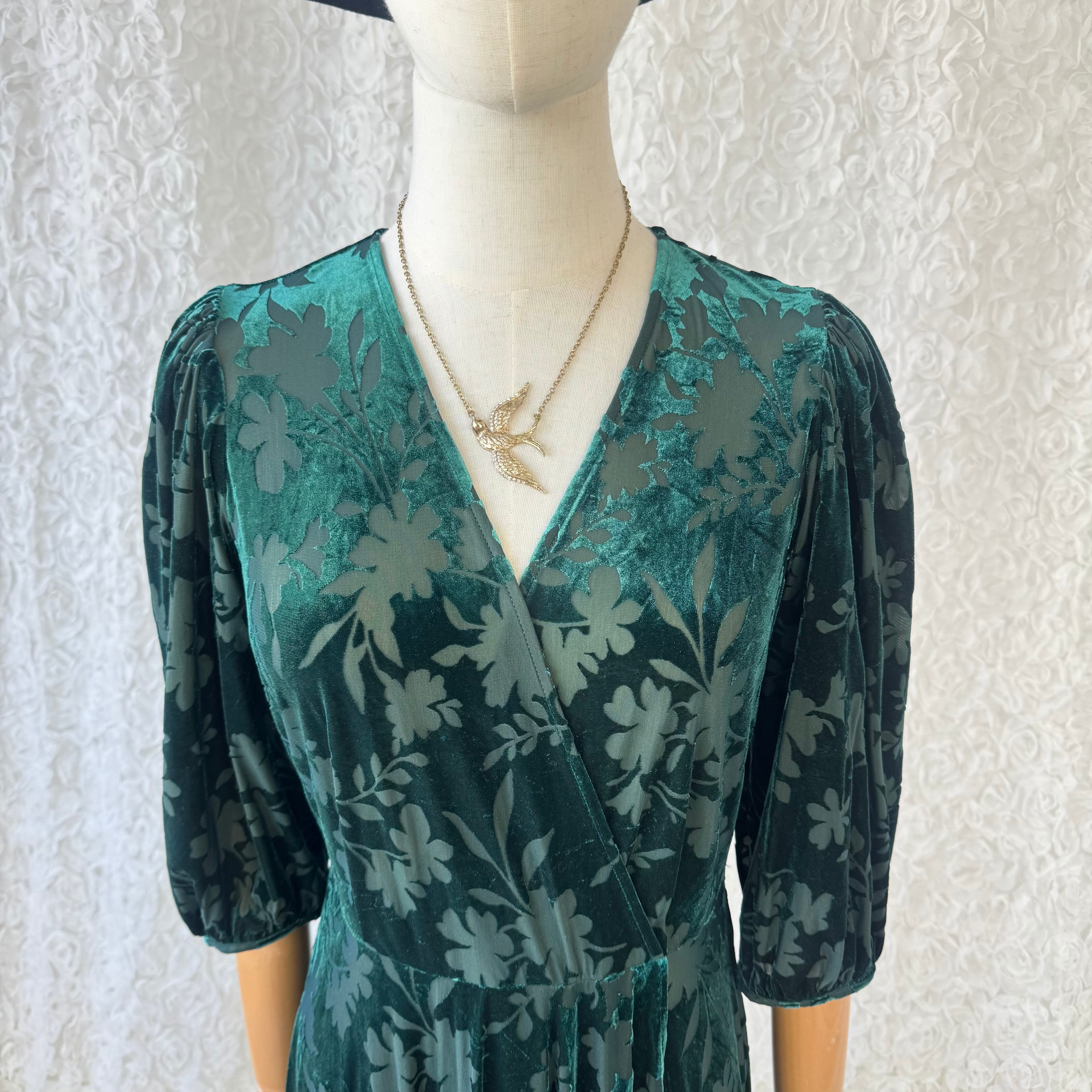 ベロア特有の艶と、カシュクールの美シルエットが大人の雰囲気を引き立てる一枚です。