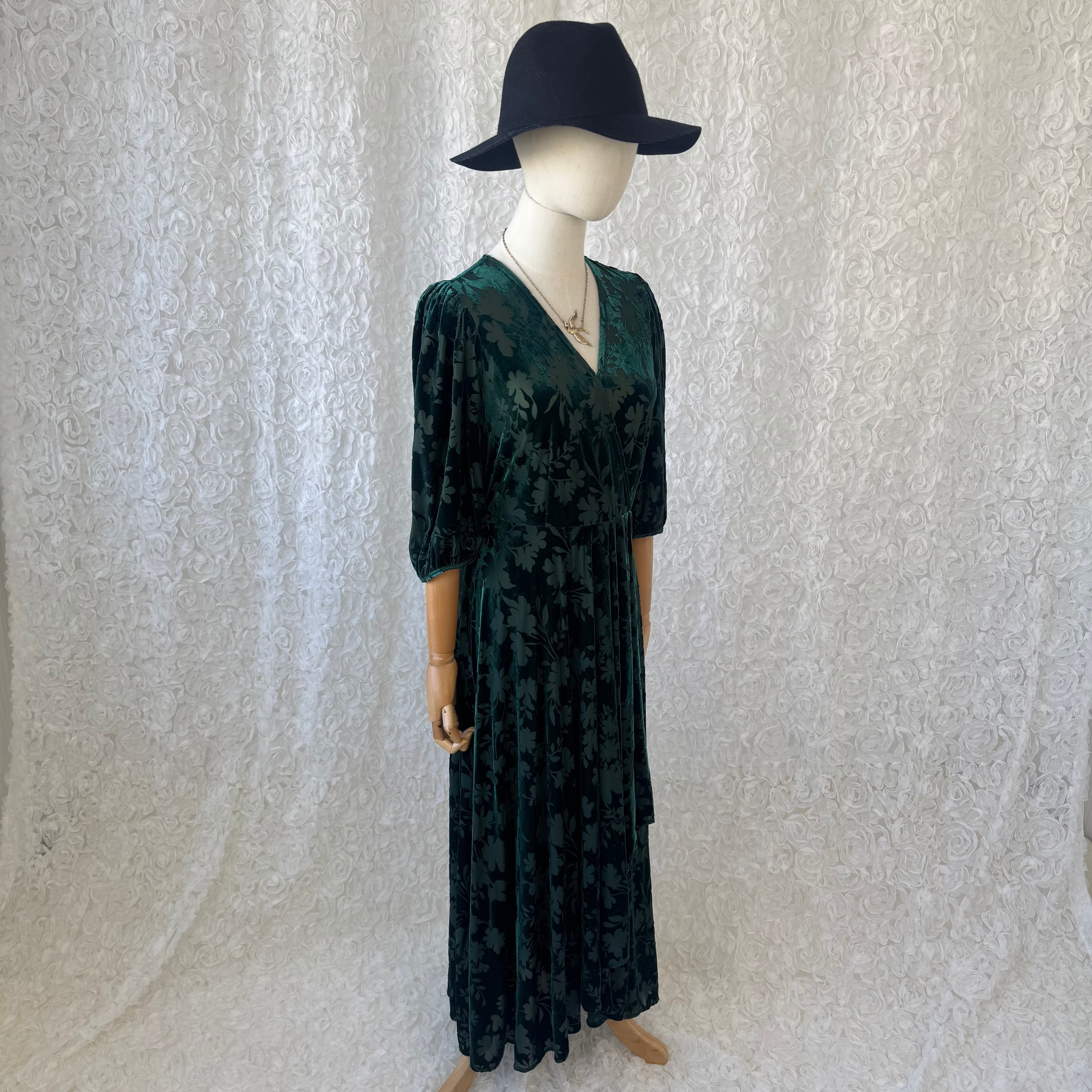 落ち着いた深緑に浮かぶフロッキー花柄。