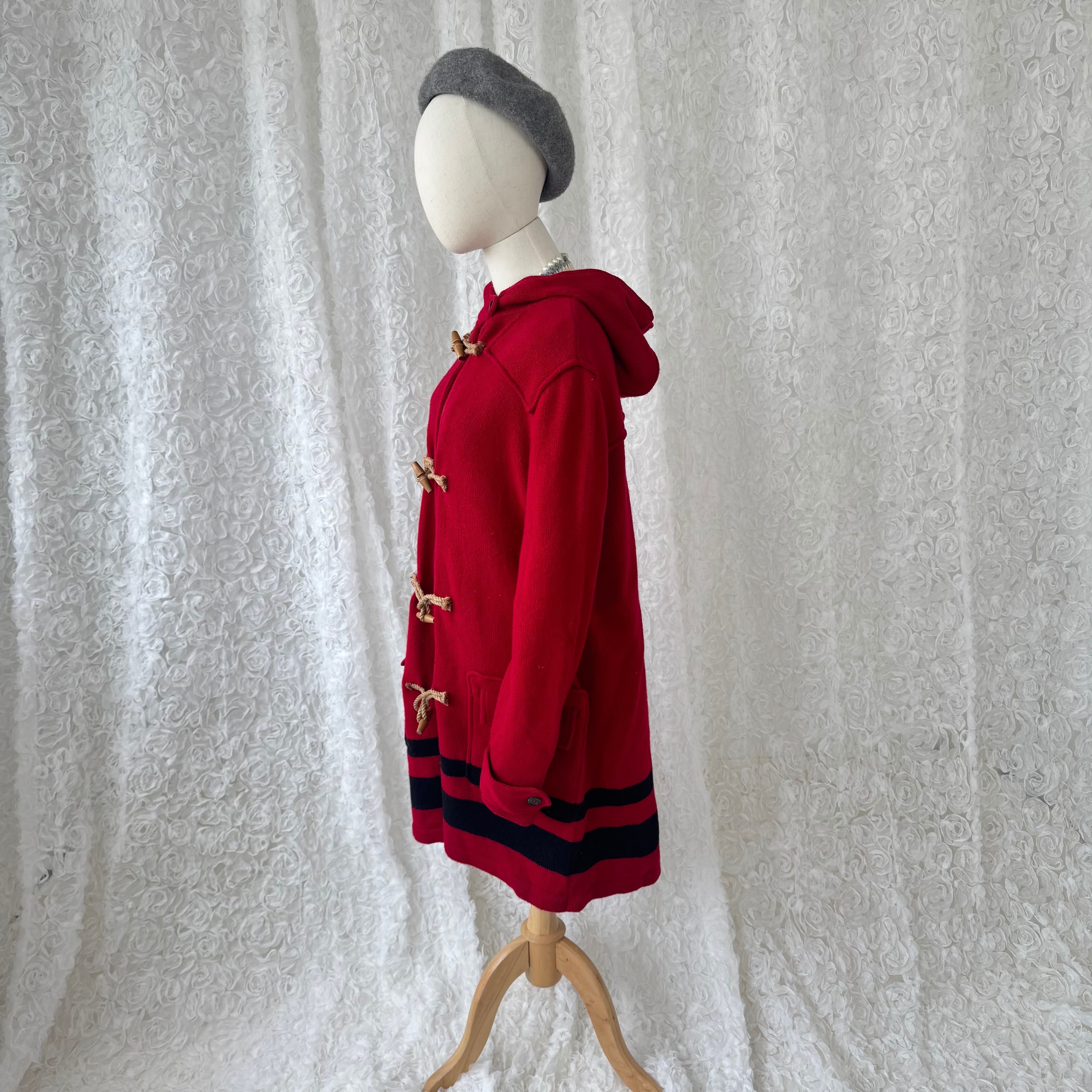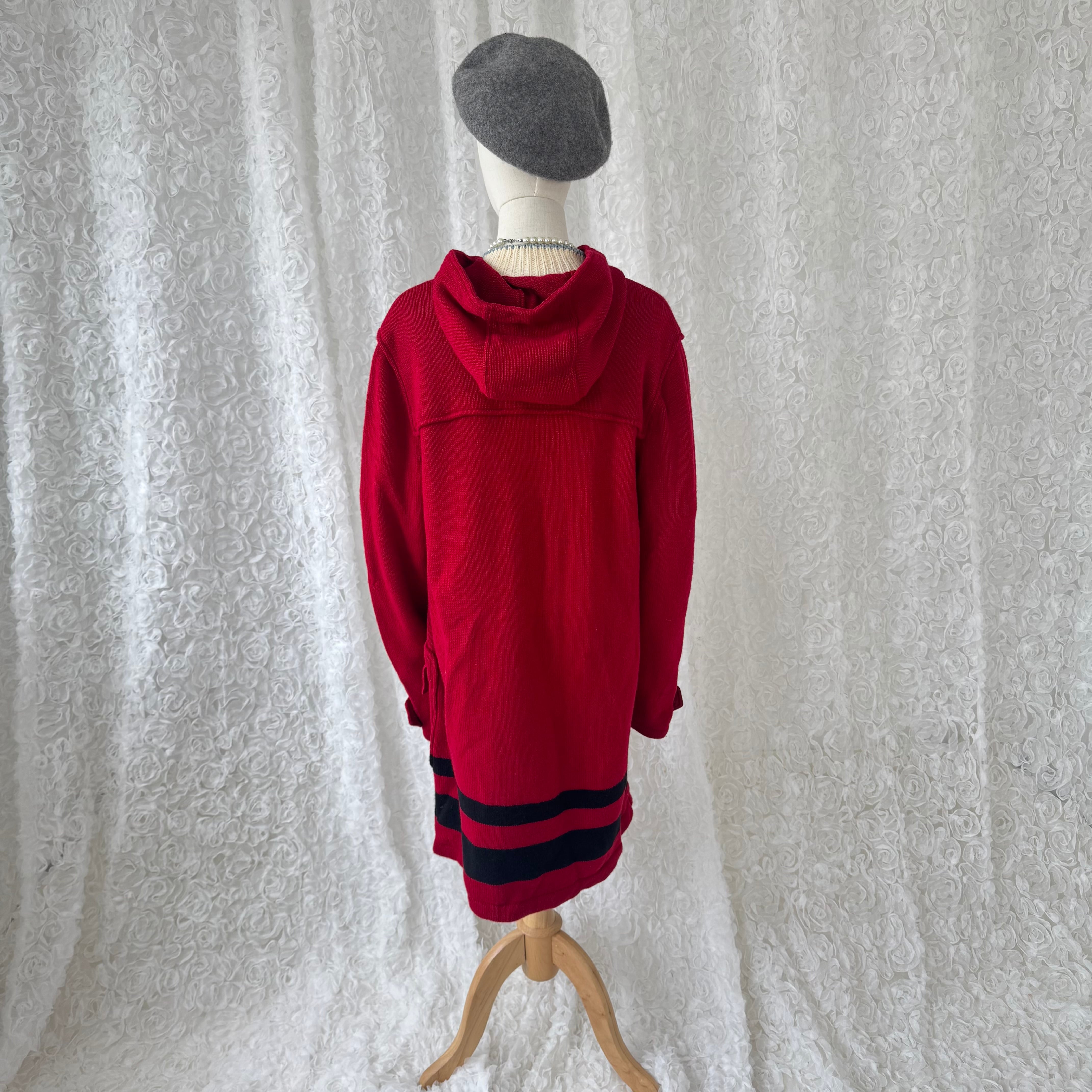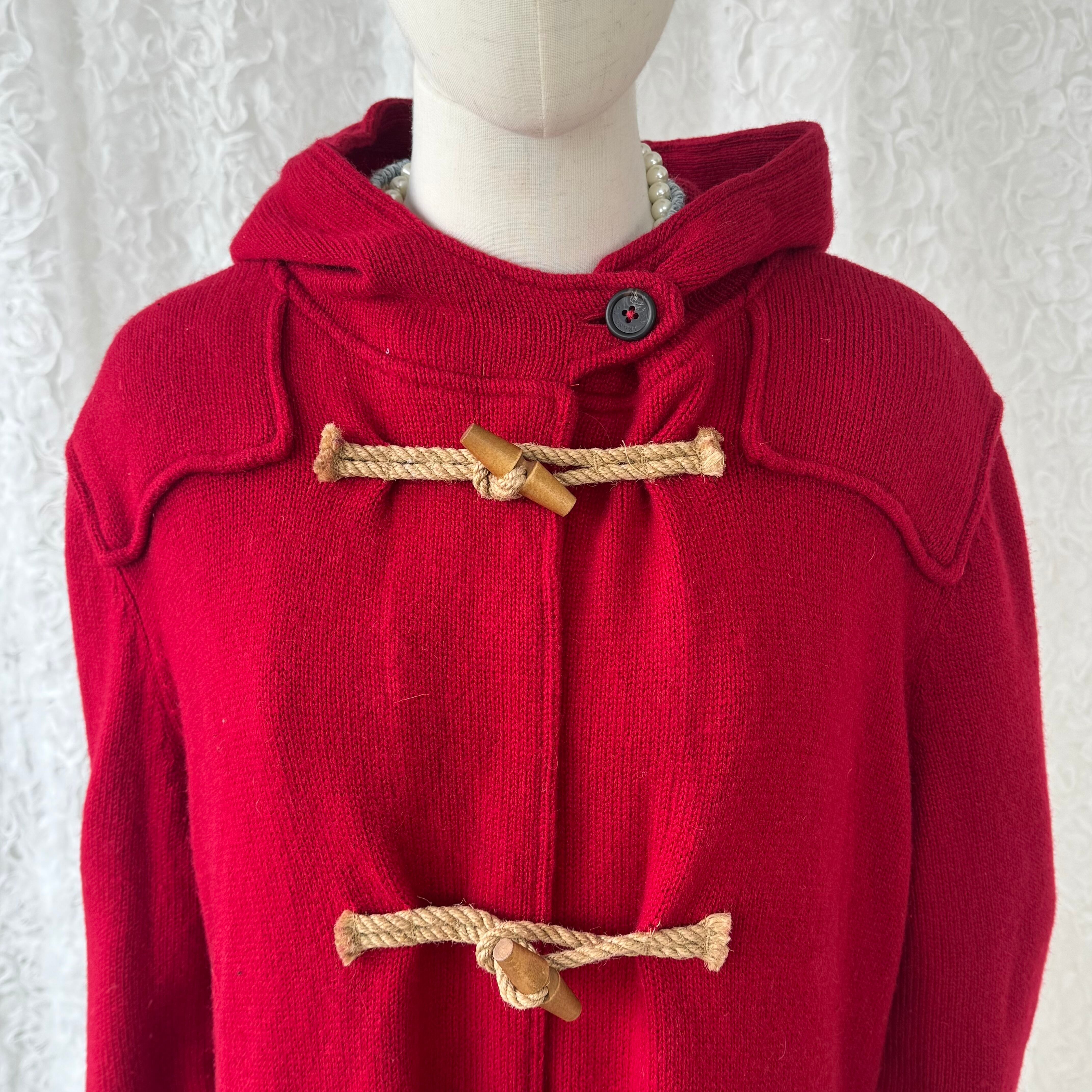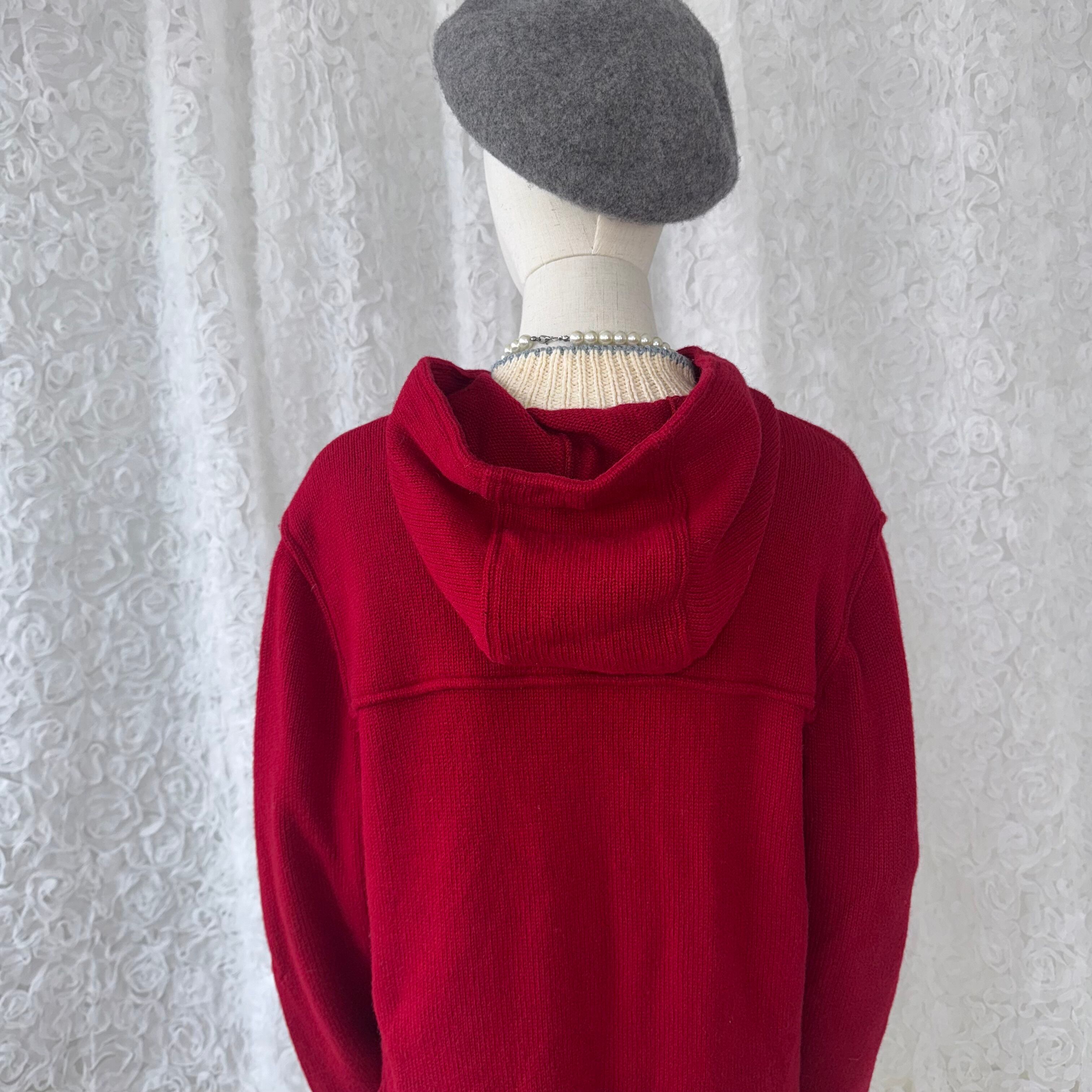 LAUREN JEANS COMPANY ラルフローレン ダッフルニットコート 赤 ウール フード 羽織り