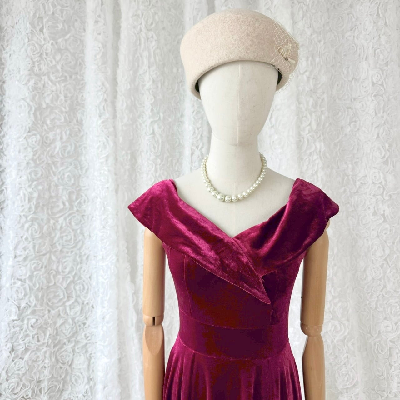 深みのあるラズベリーカラーが美しい、USA製ヴィンテージのベロアドレス。