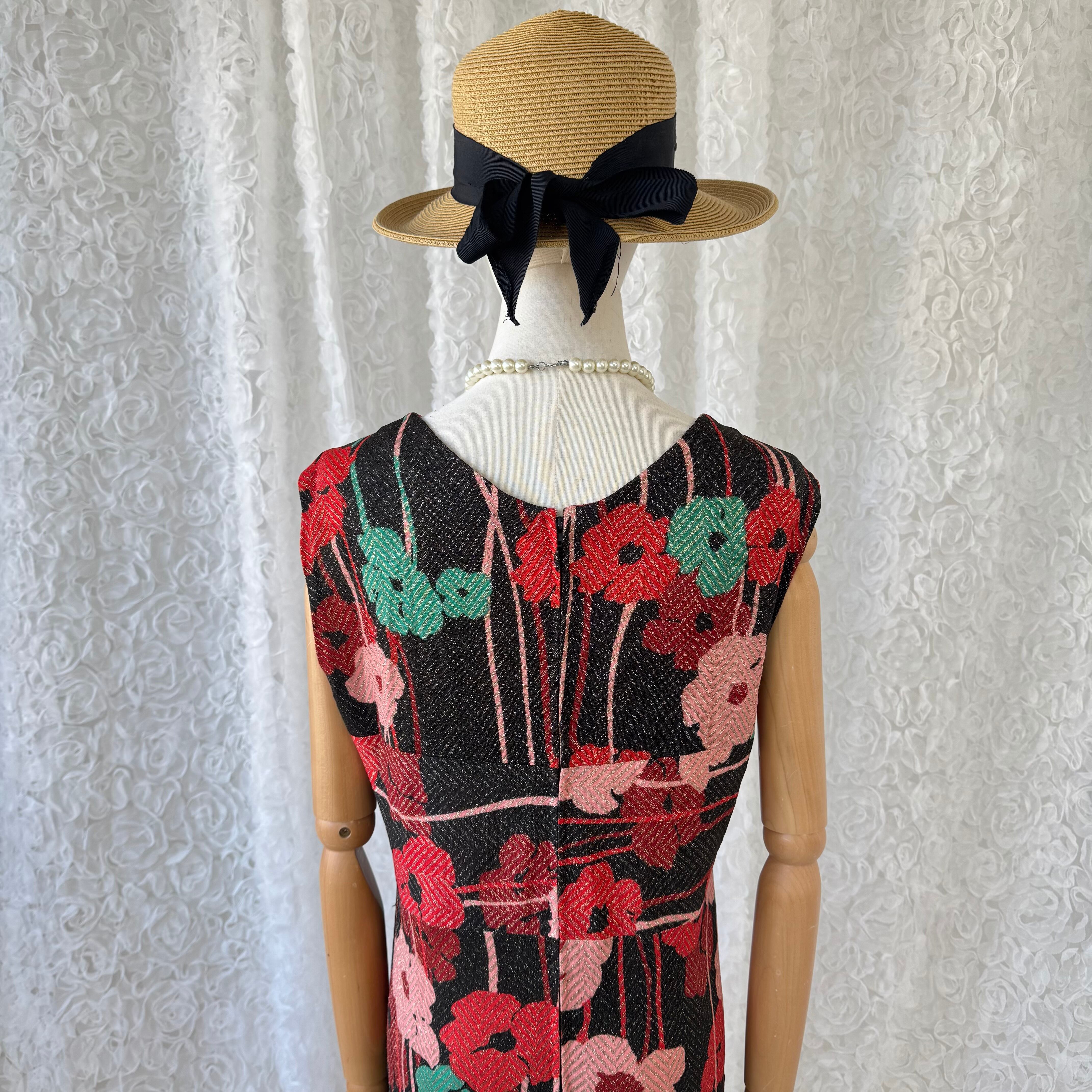 大胆なフラワー柄が目を惹くヴィンテージロングワンピース。