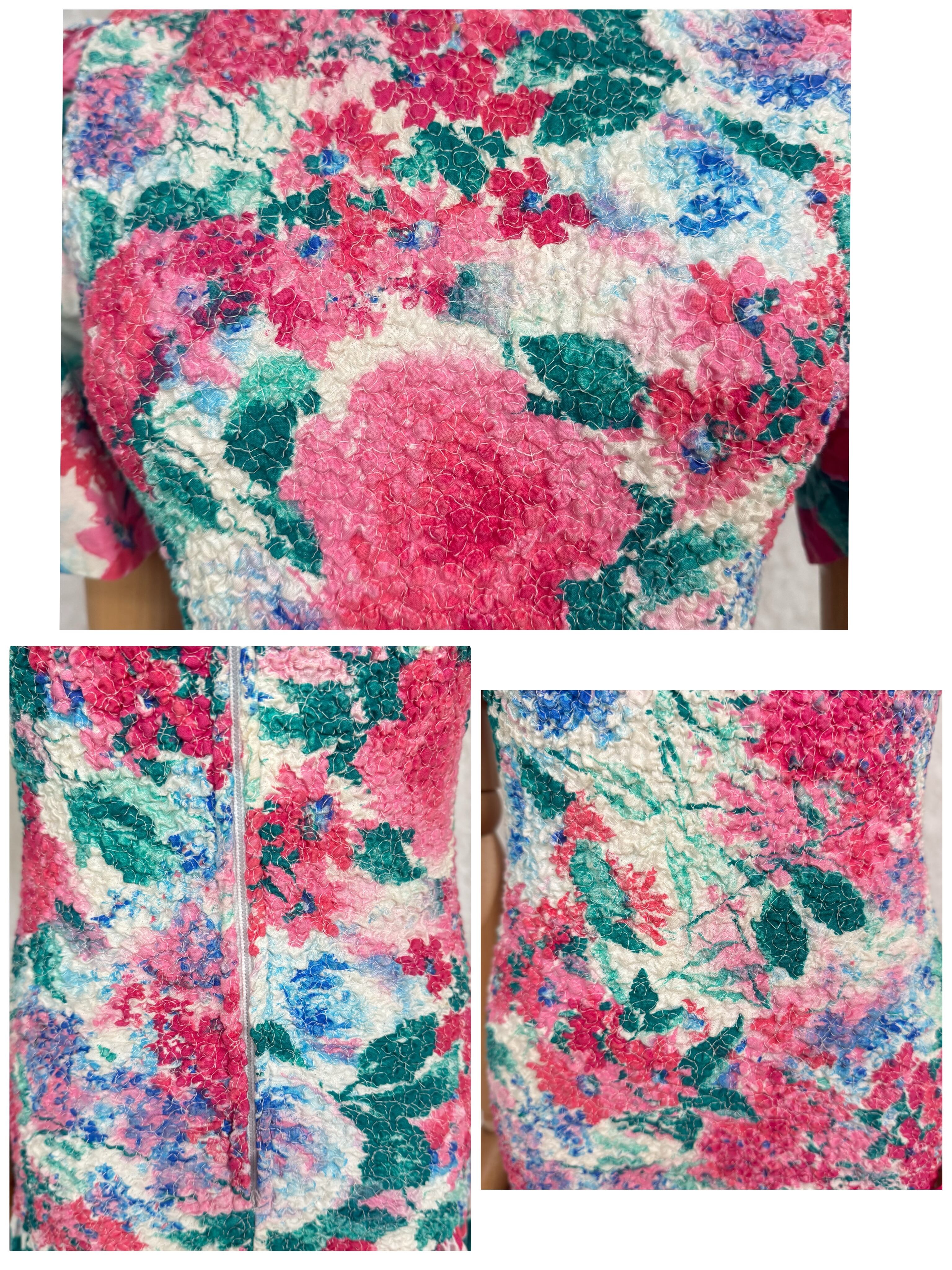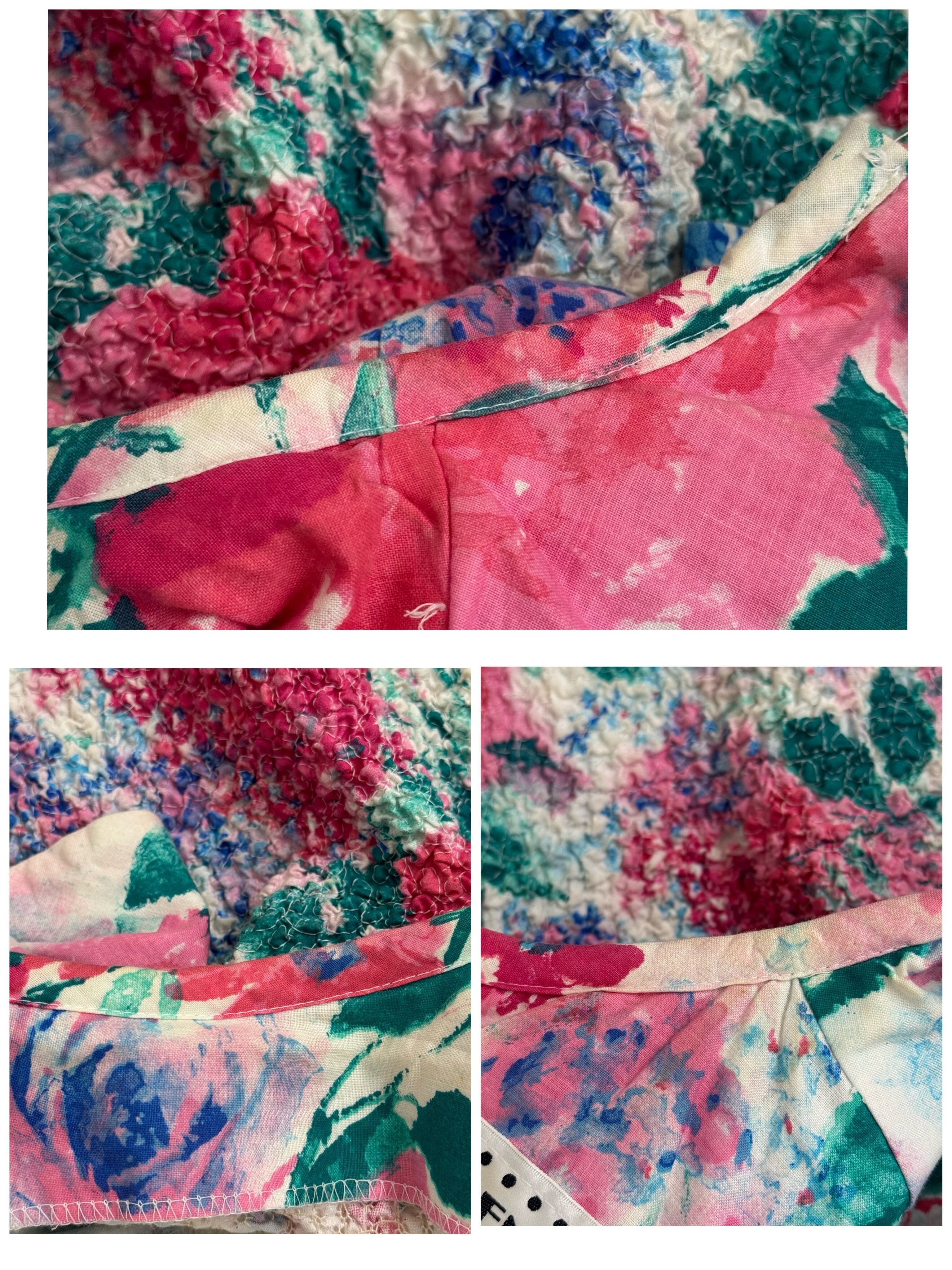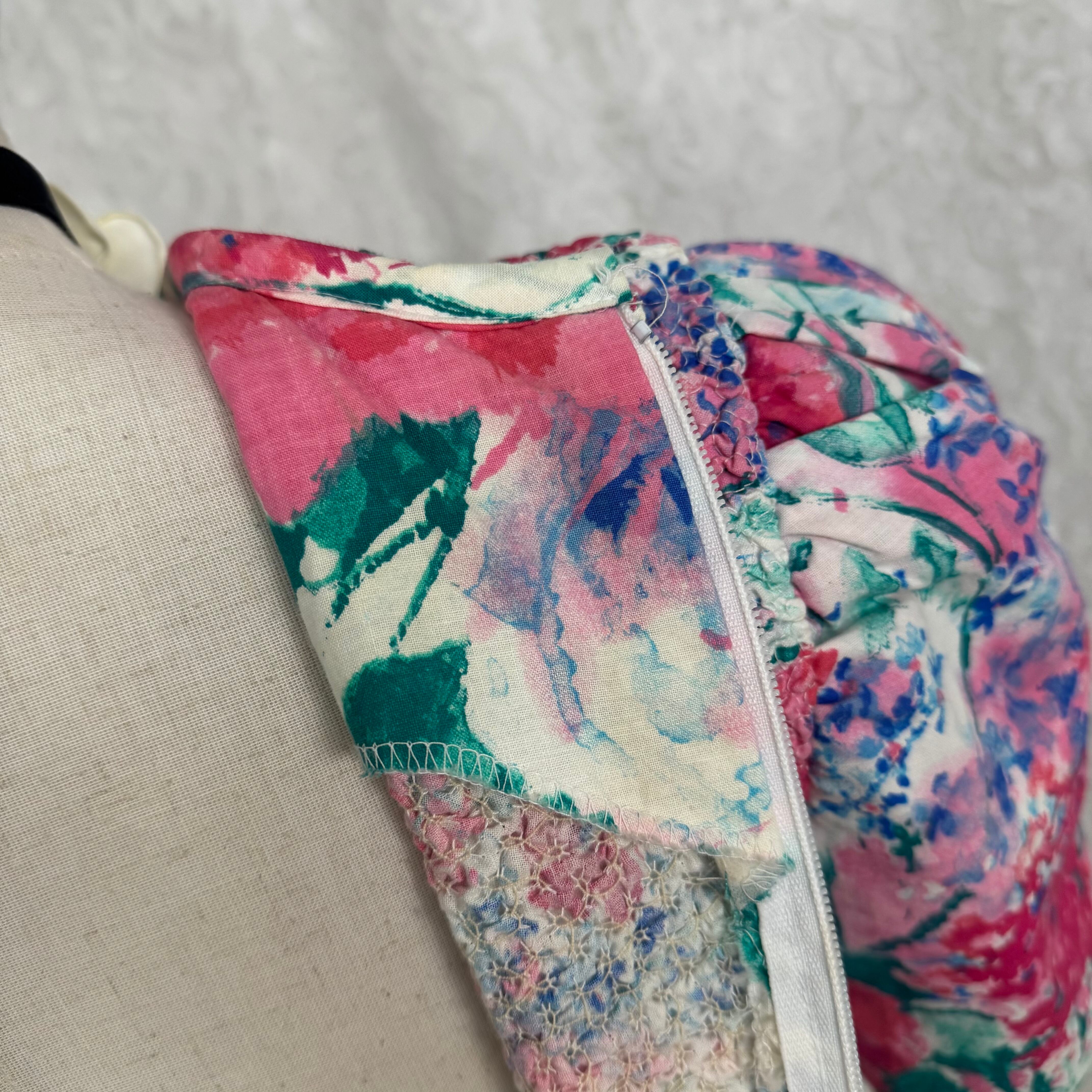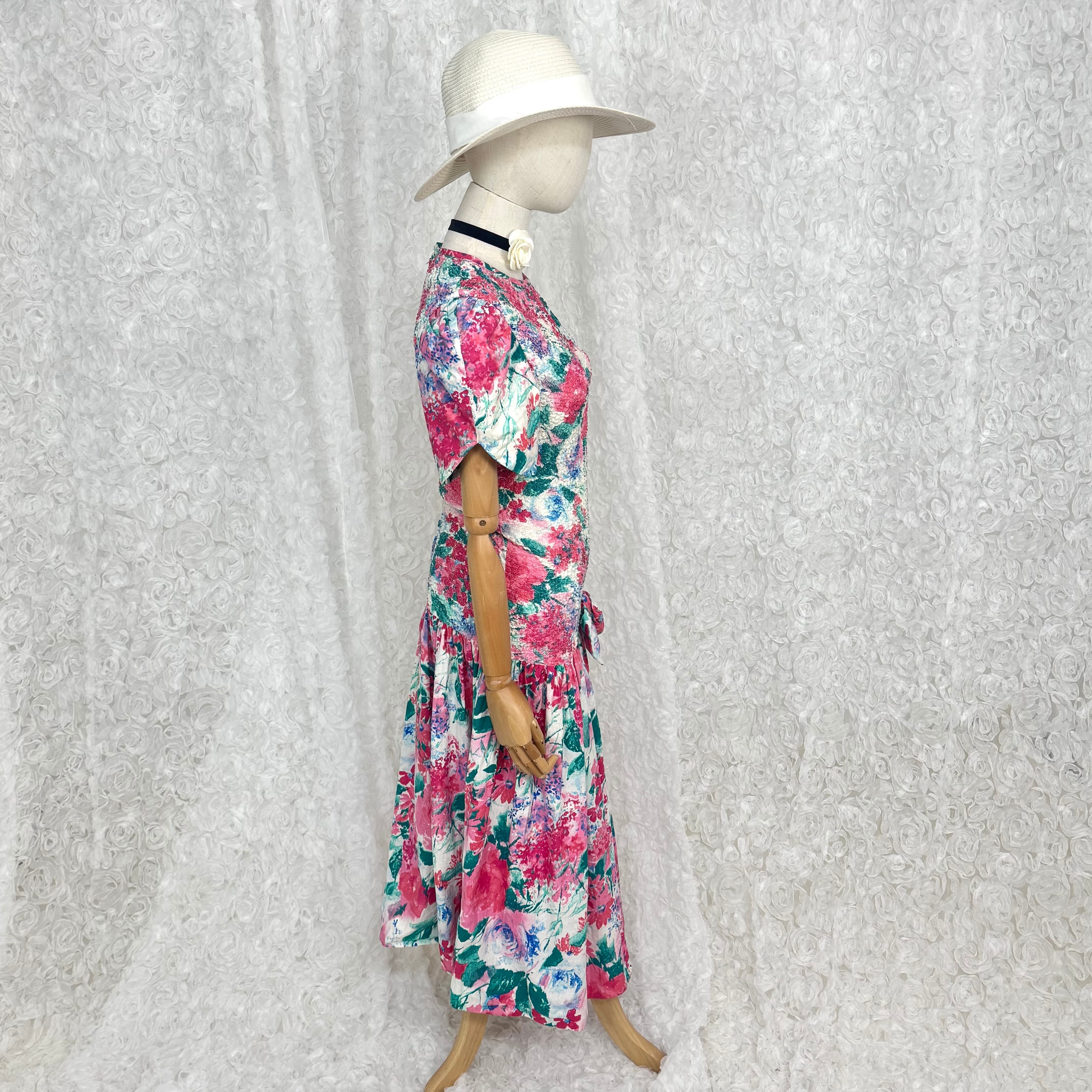 華やかなピンク×グリーンのフローラルプリントが目を惹くUSAヴィンテージワンピース。