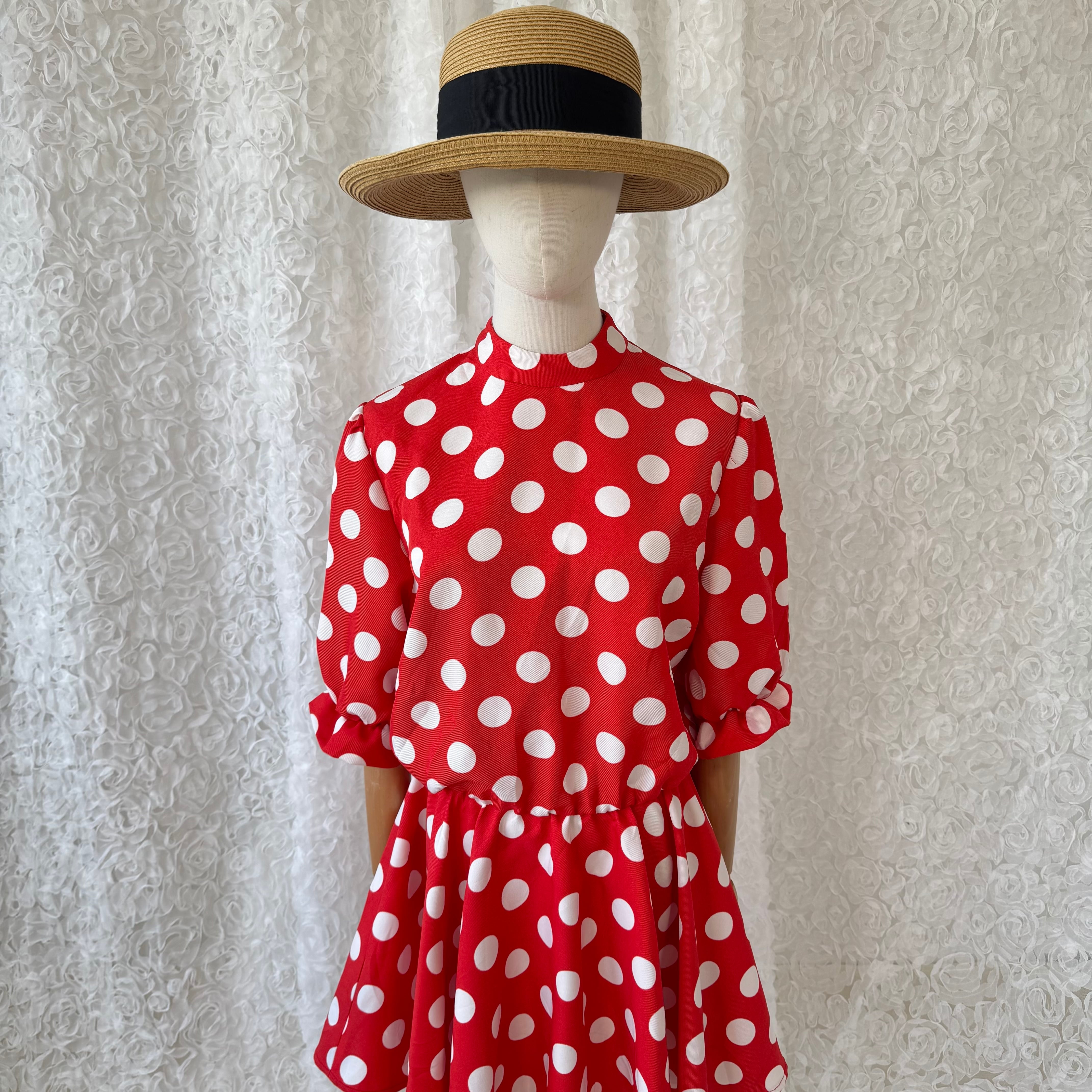 ヨーロッパヴィンテージ ドットワンピース 赤x白 水玉 レトロワンピース ハイネック フレアワンピース オランダブランド der kannevals wierts