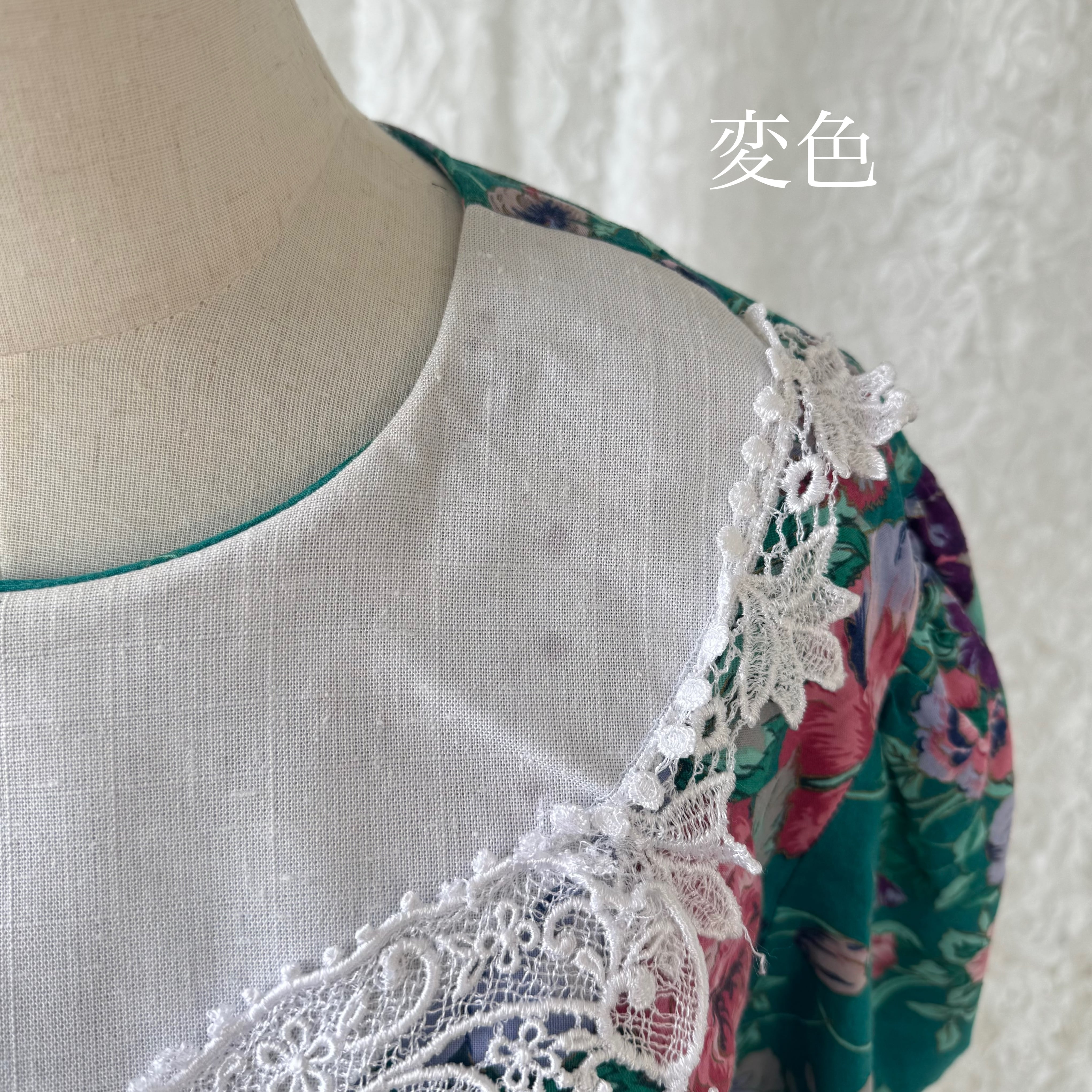 胸元の繊細なレースデザインがクラシカルで女性らしく、ヴィンテージならではの雰囲気をしっかり感じられます。