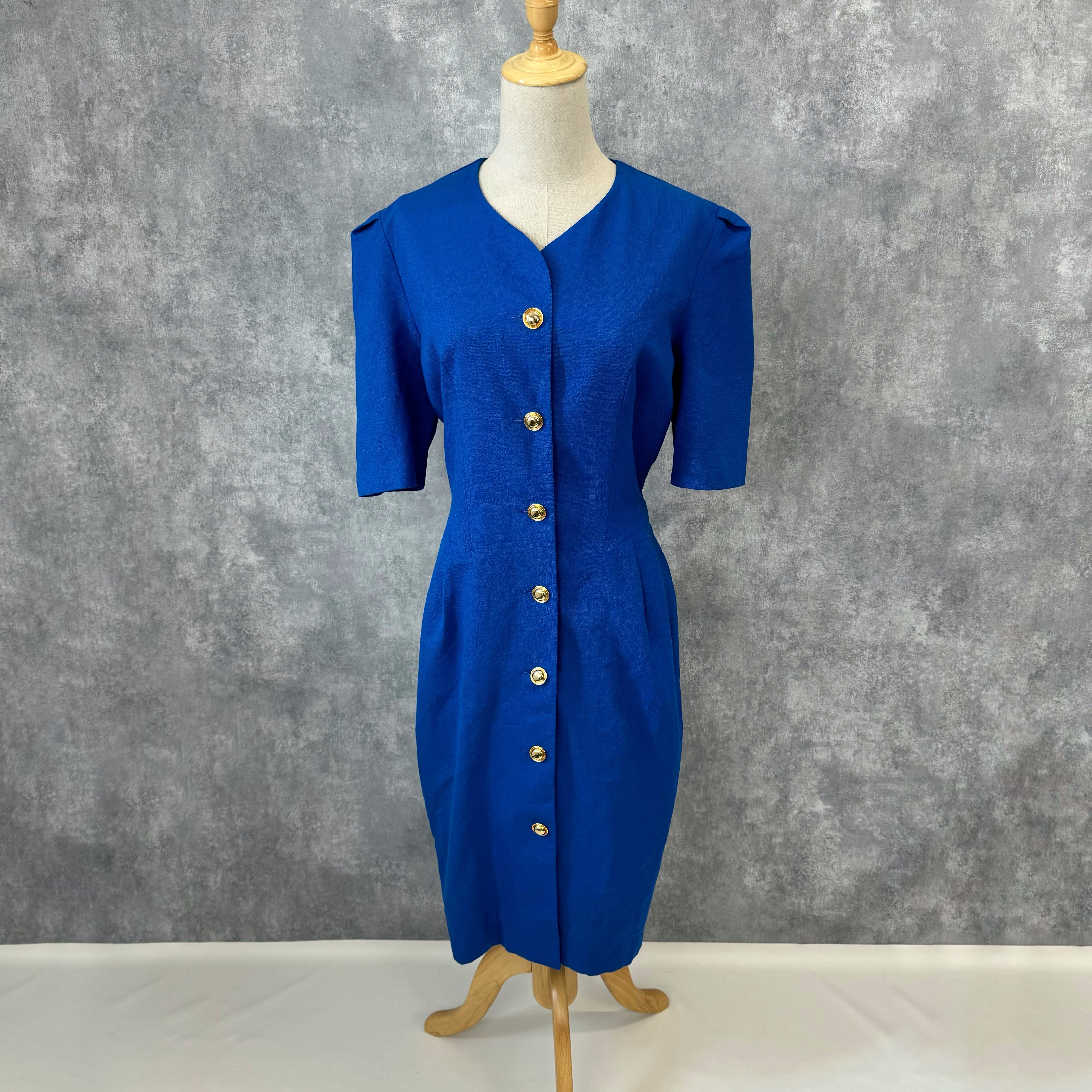 80s 古着レトロワンピース 昭和レトロ ロイヤルブルー