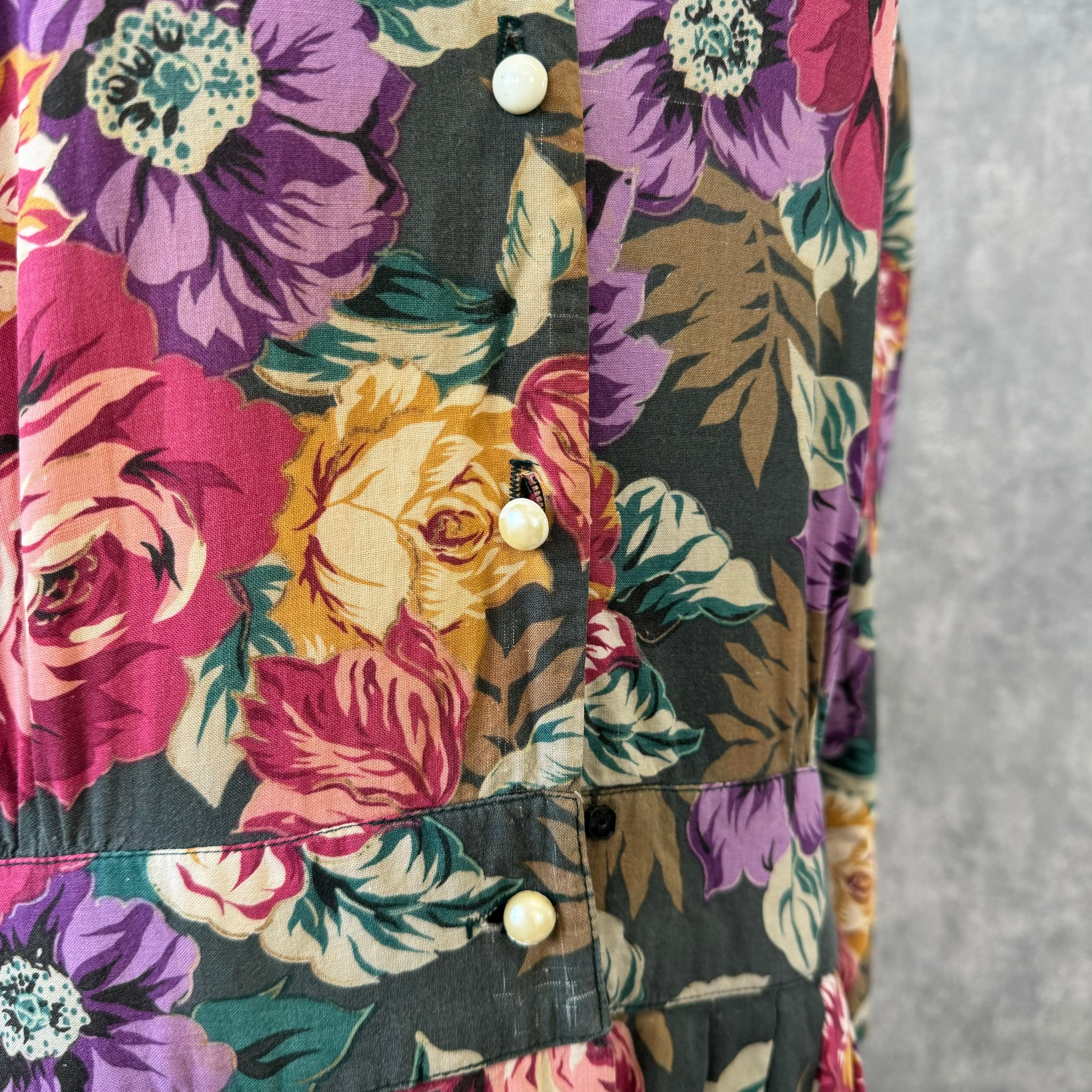 華やかで魅力的なボタニカル柄が印象的なレトロワンピースです。