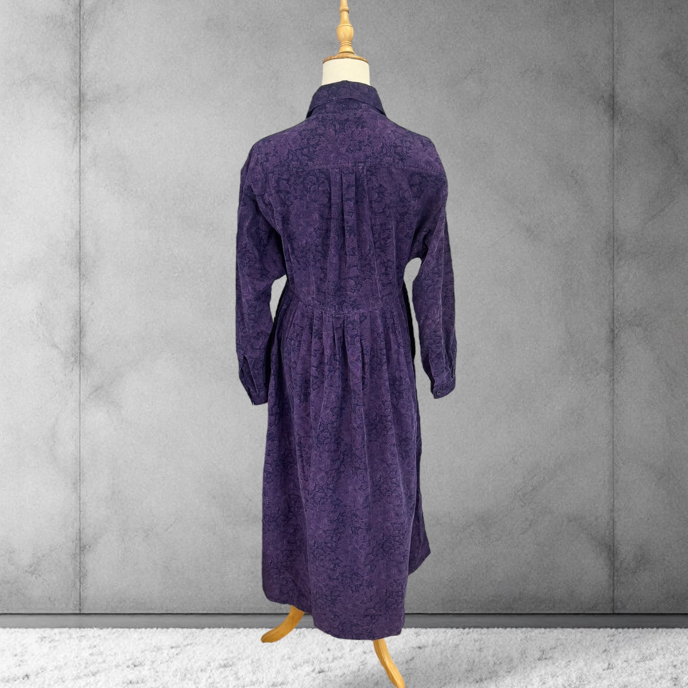 深みのあるパープルカラーに、さりげないフラワー調の織り模様が美しく、秋冬に映える一着です。
