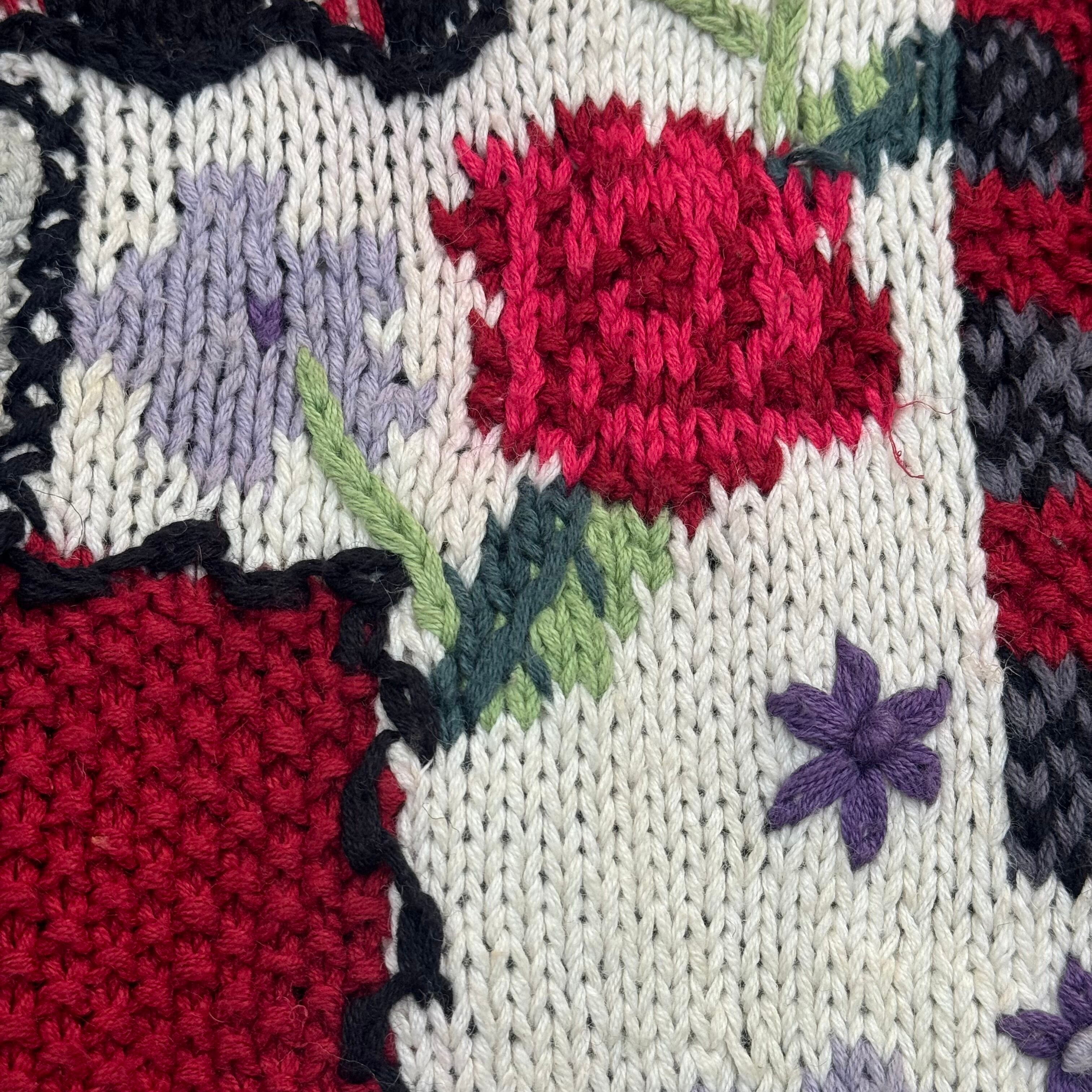 【ねこぱんち様リクエスト品です】パッチワーク風デザインニット ボタニカル柄 チェック模様 ハンドニット 手編み