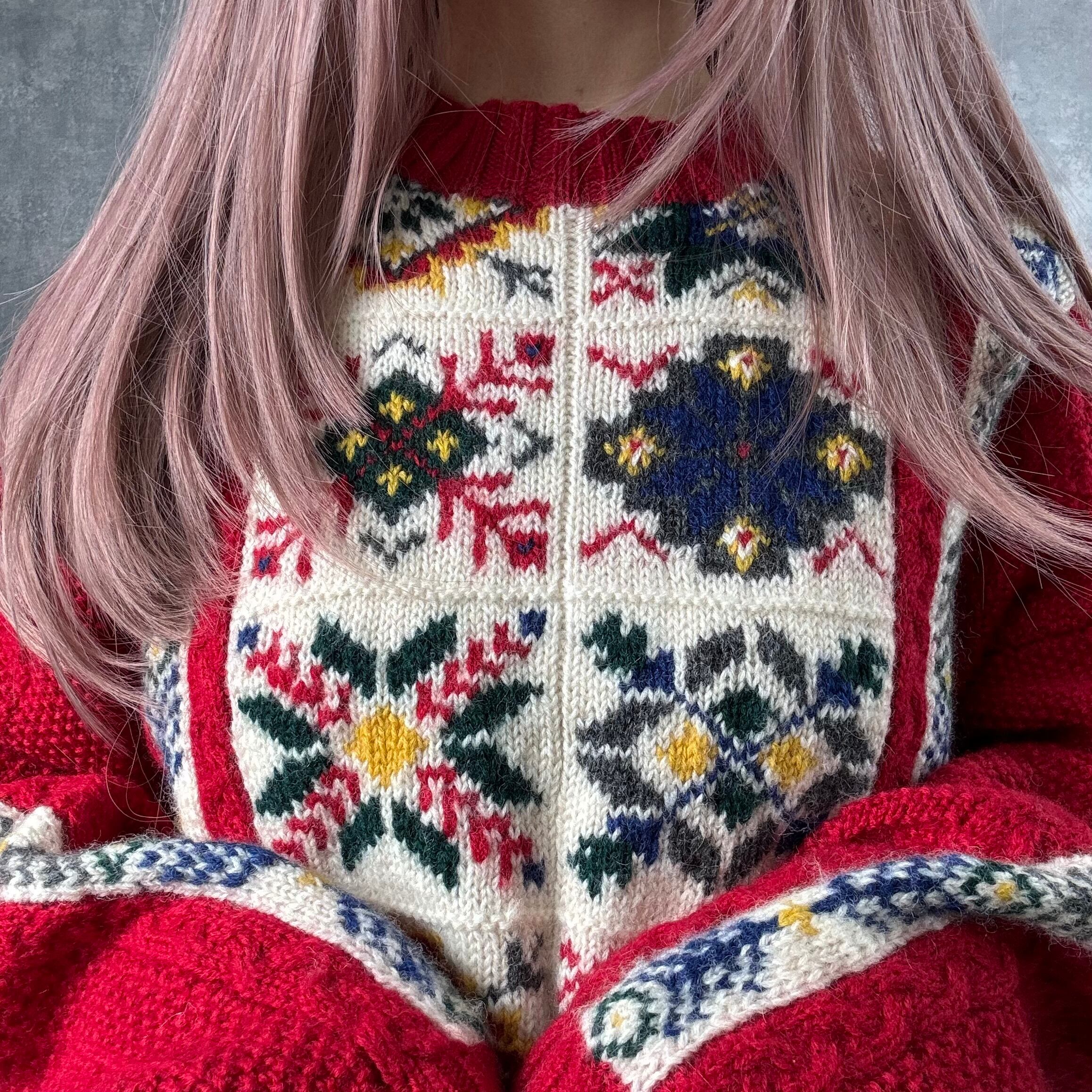 ハンドニット 手編み 雪の結晶柄 ノルディックニット