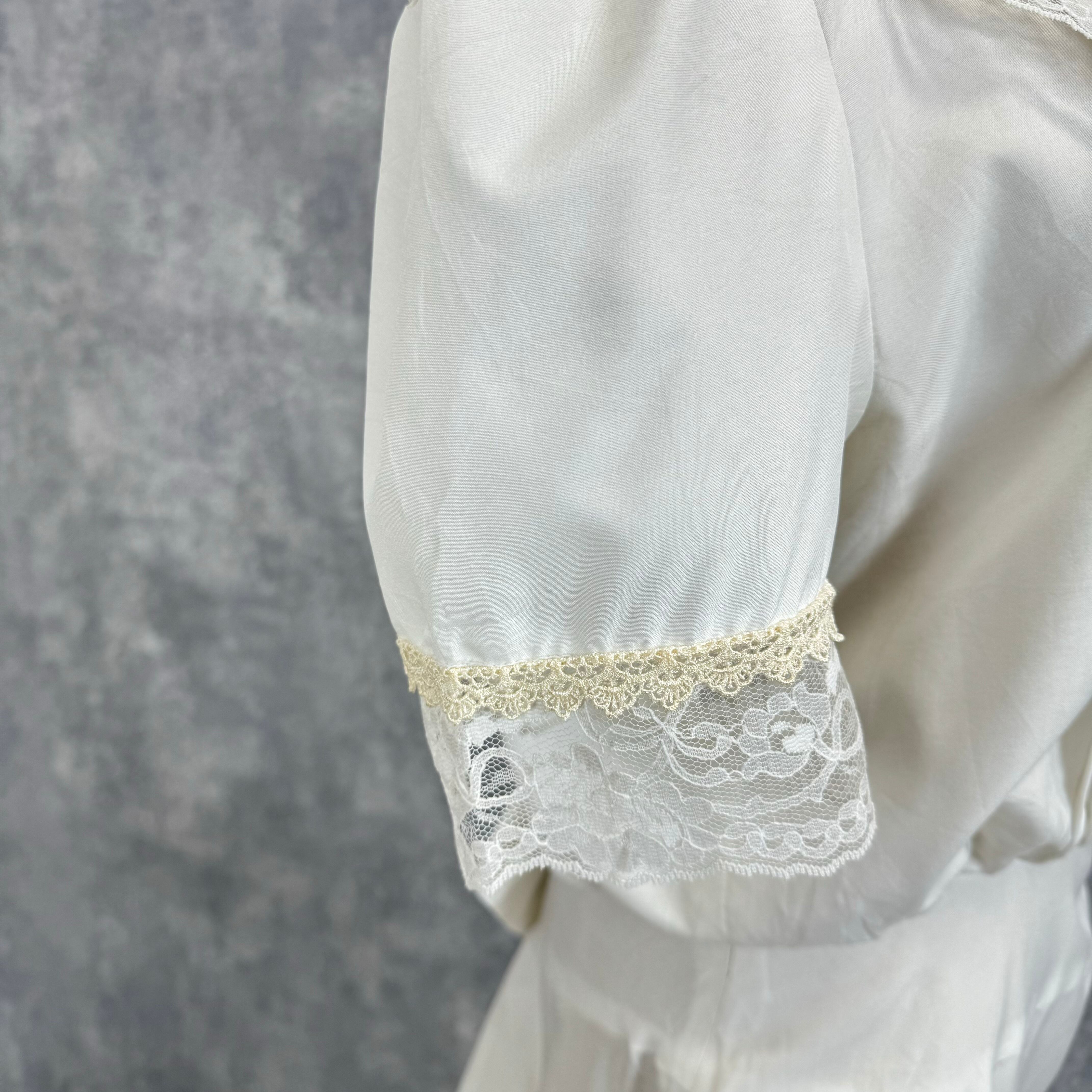 美しい刺繍と繊細なレース装飾が施されたワンピースです。