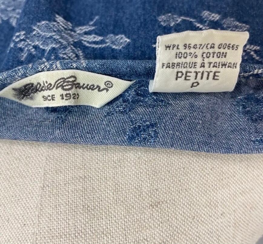 Eddie Bauer エディバウアー ブルーデニムワンピース 花柄 エンブロイダリー 刺繍