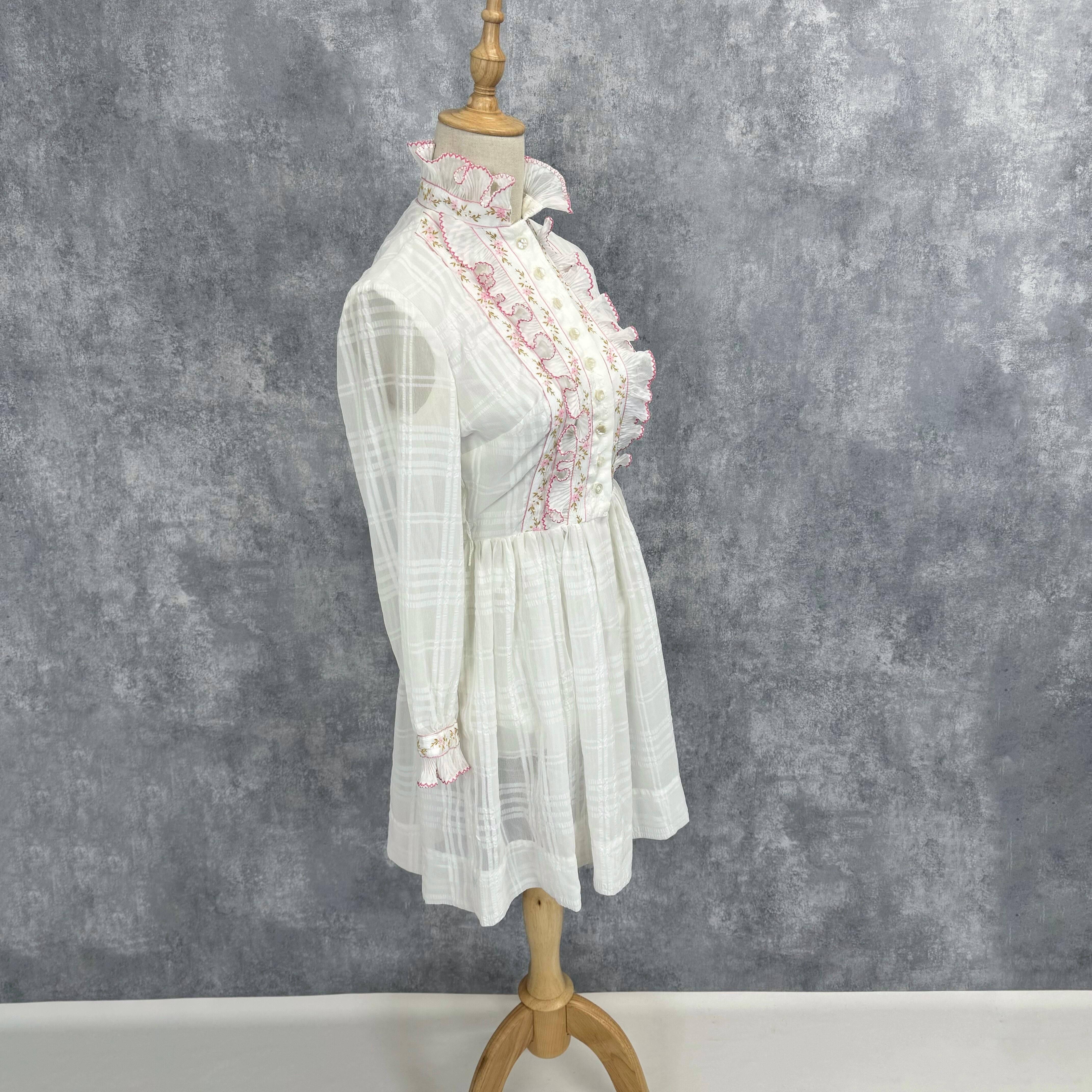 花柄刺繍ワンピース フリルデザイン