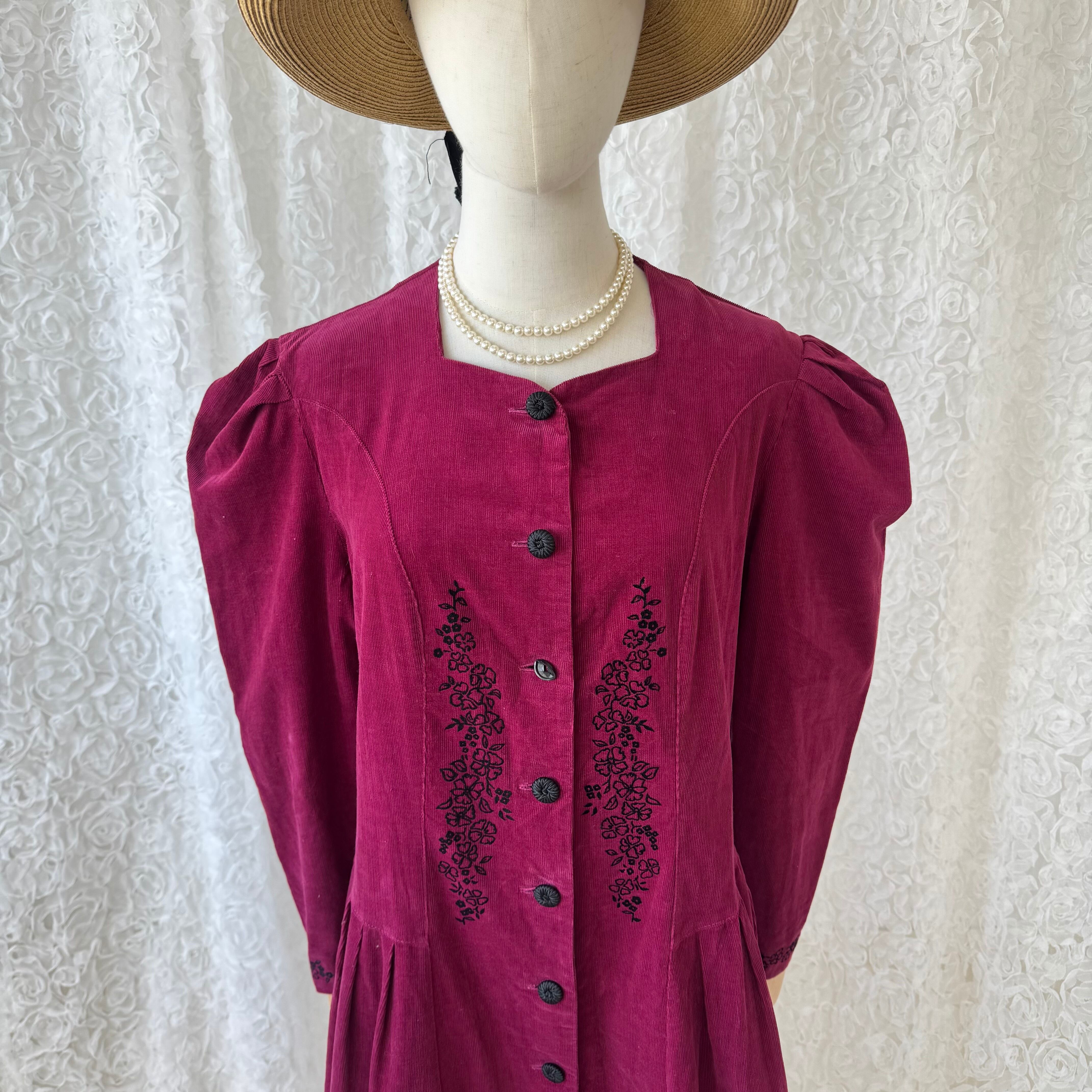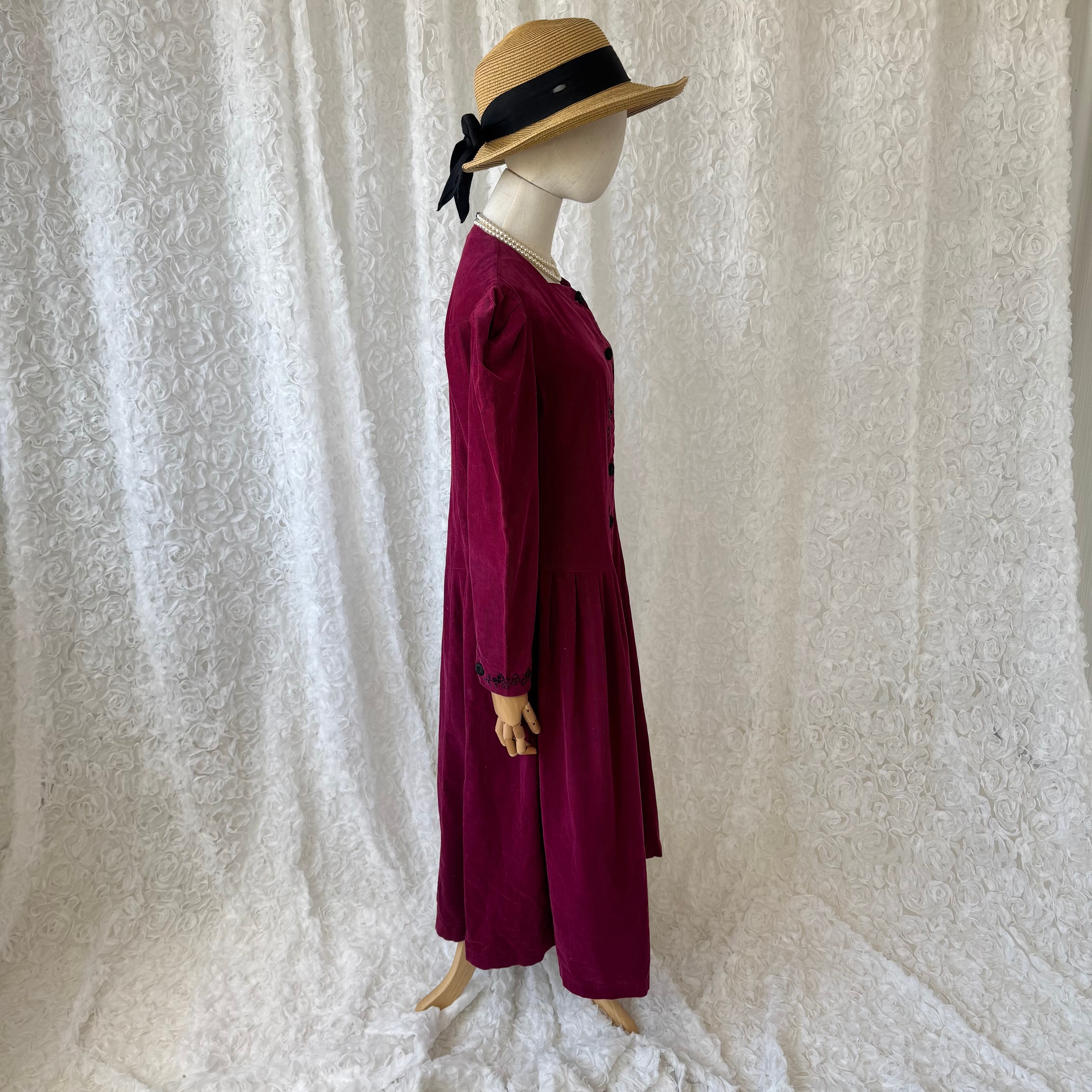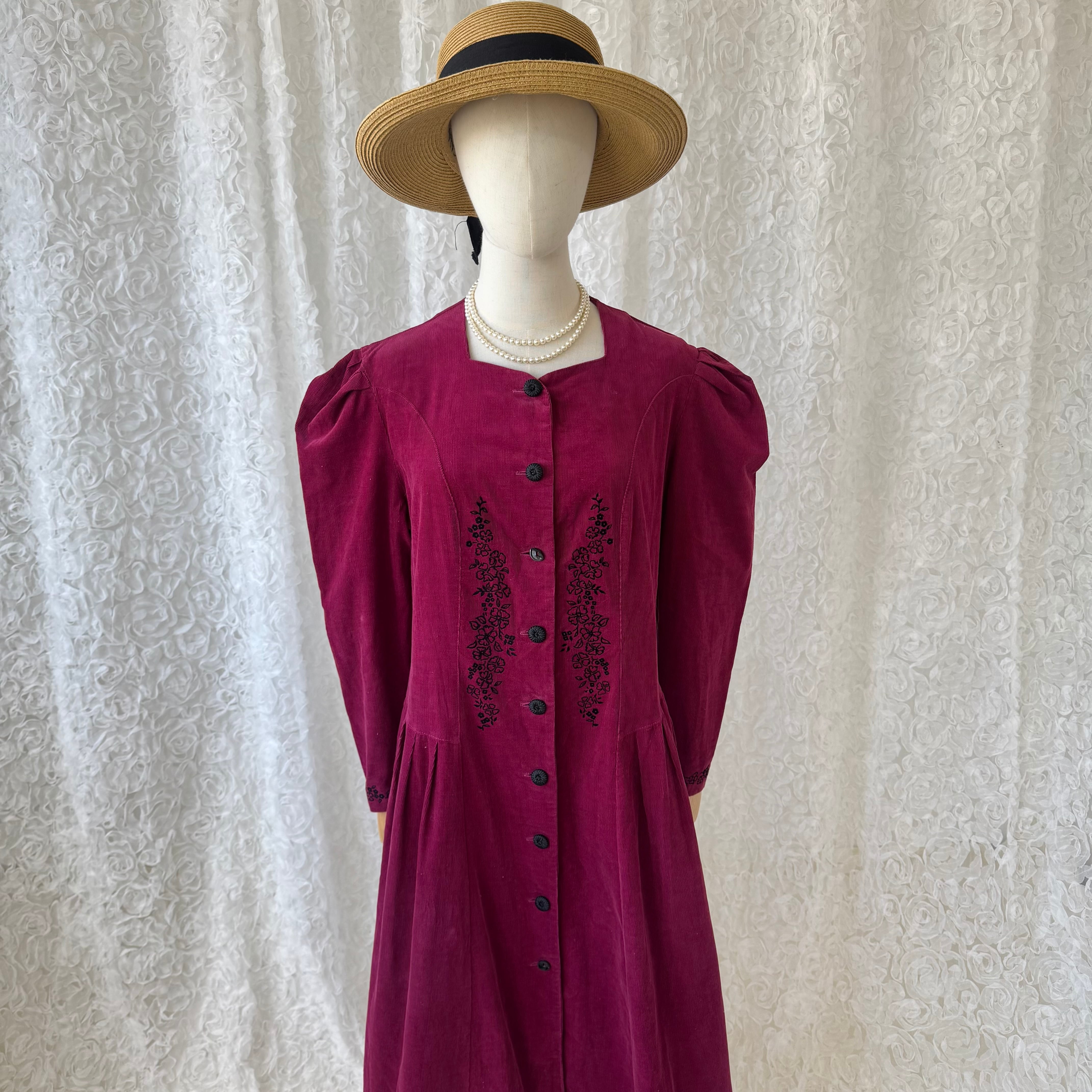 イギリス製 英国製 ローラアシュレイ laura ashley コーデュロイワンピース 花柄刺繍 パワーショルダー