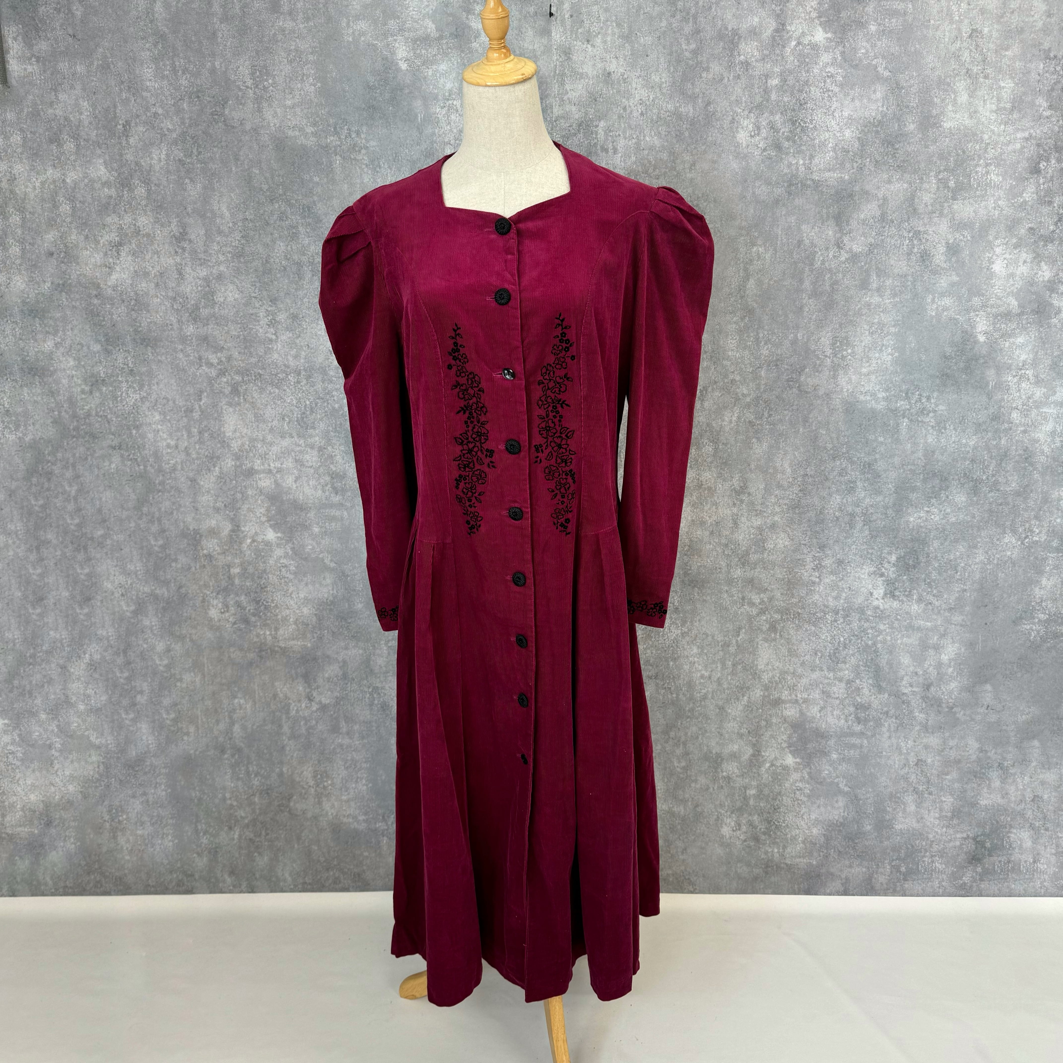 ワインレッドのコーデュロイ生地が上品なロングワンピース。