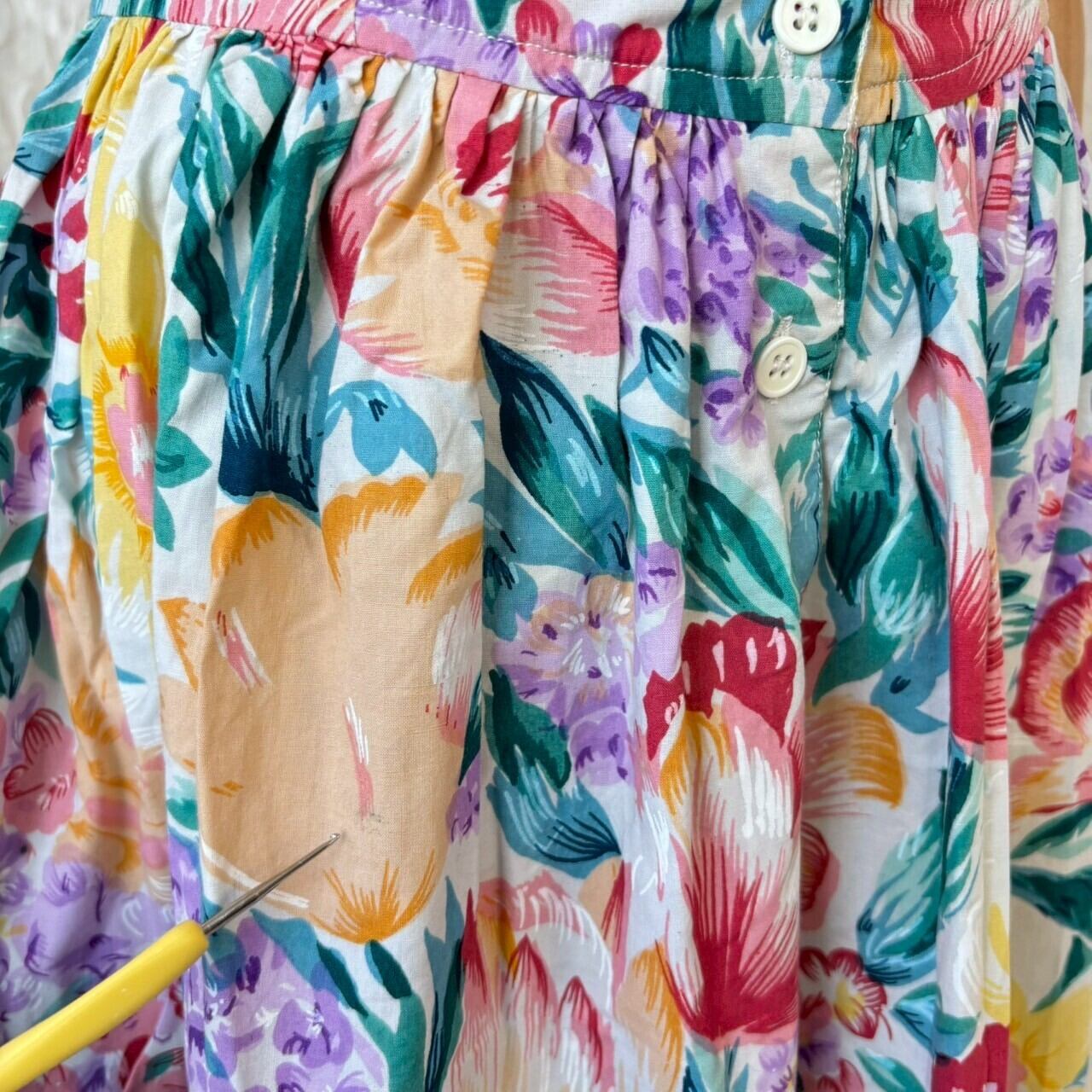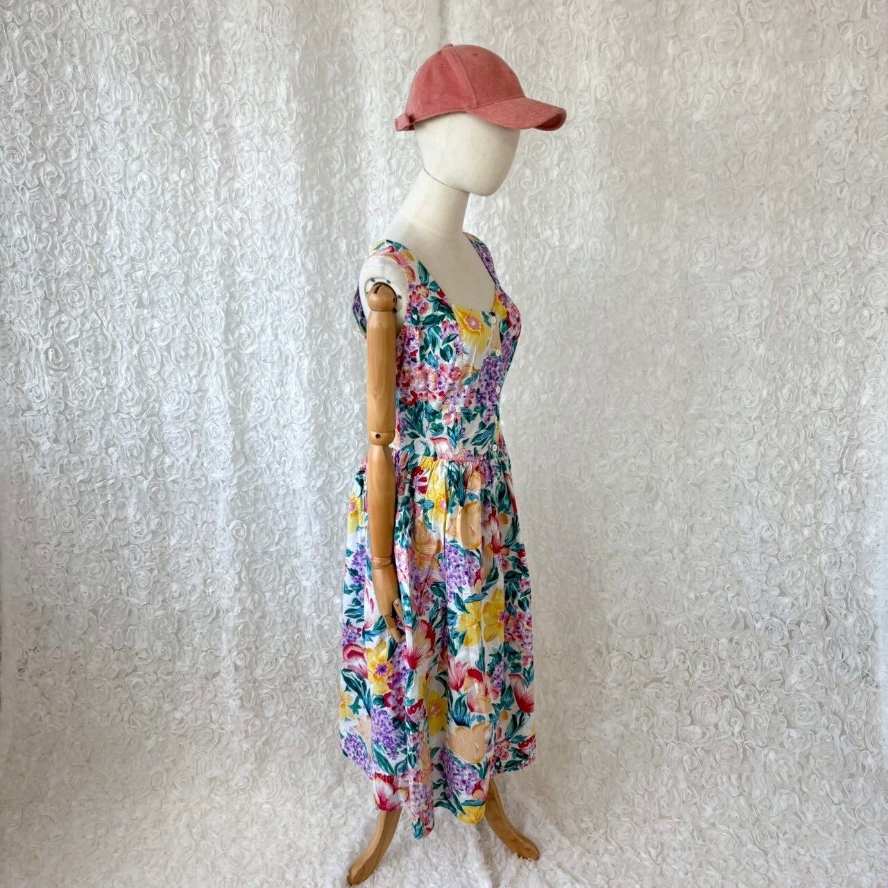 鮮やかな花柄と大胆なバックオープンデザインが目を惹く、ヴィンテージワンピース。