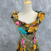 大きなボタニカルプリントが特徴的なワンピース。鮮やかなデザインが目を引きます。