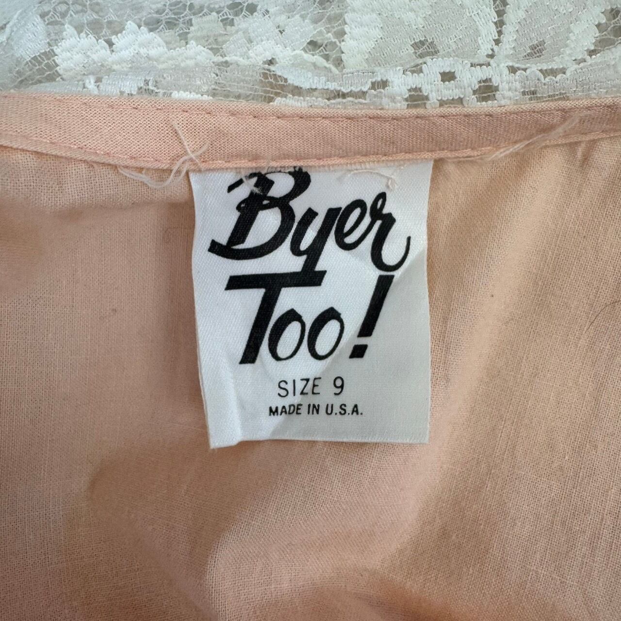 80年代〜90年代 USA製 vintageワンピース サーモンピンク色 ヴィンテージレース装飾 レースカラー