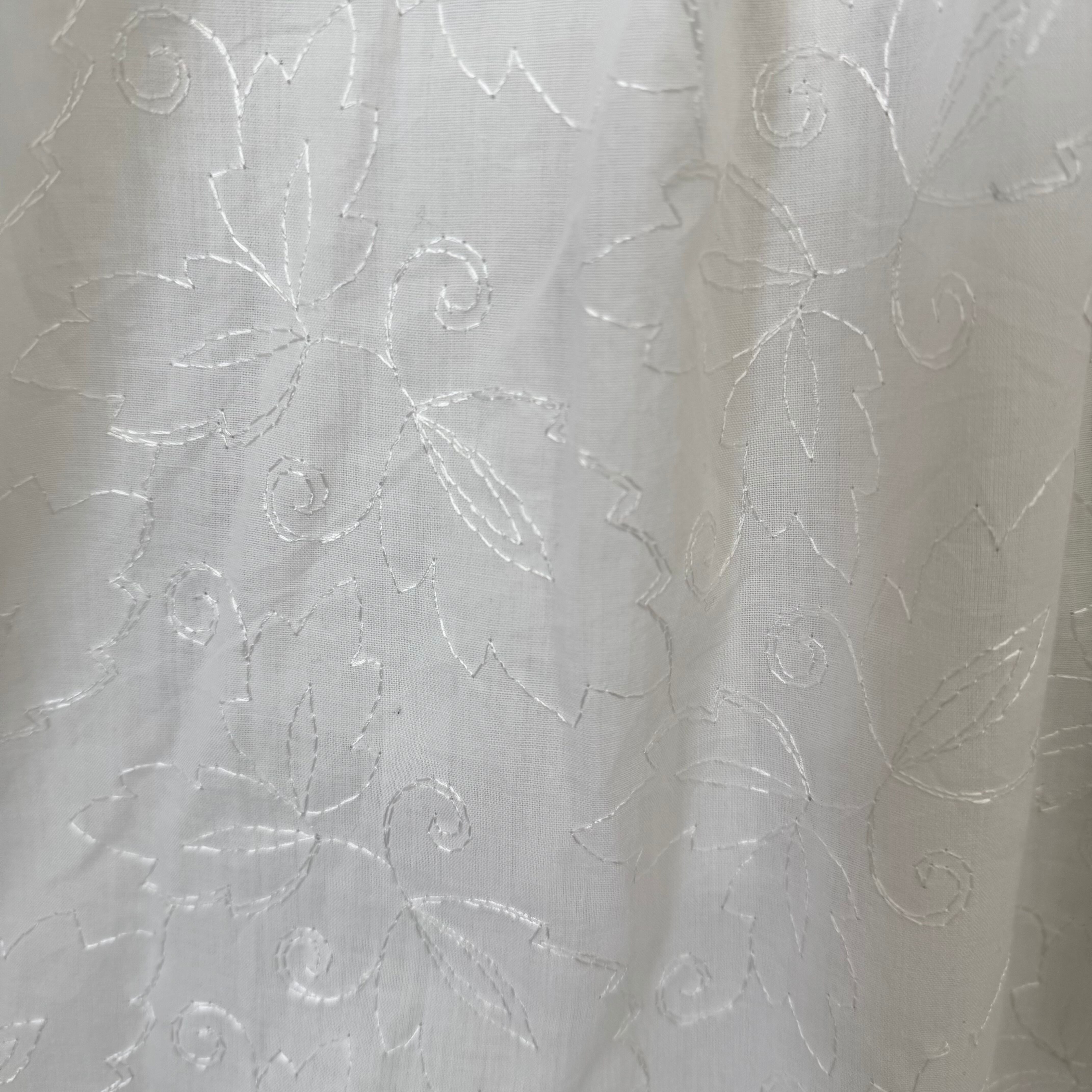 リーフ模様のエンブロイダリーホワイトワンピース。