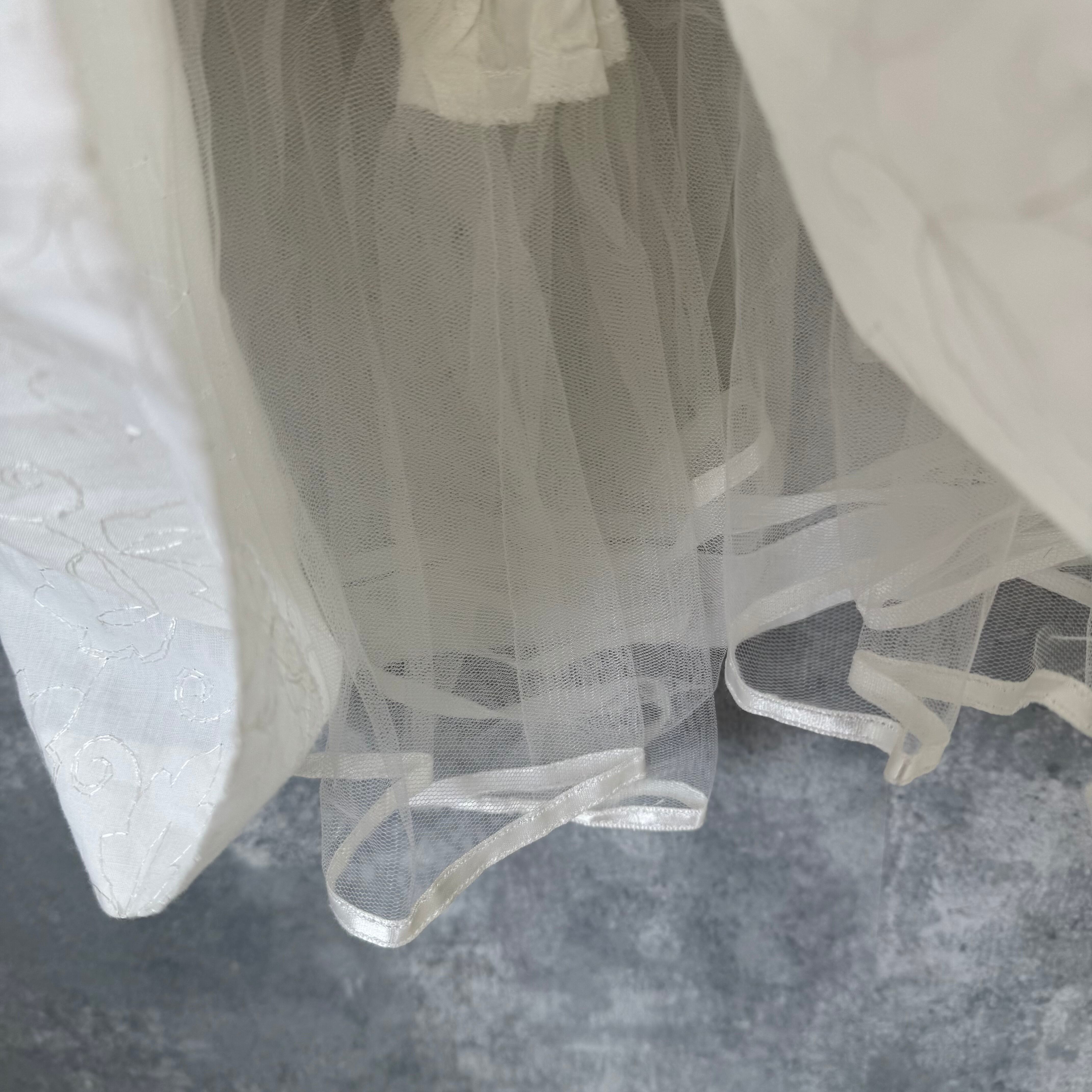 ユーロヴィンテージ ドイツ古着 リーフ模様 エンブロイダリーホワイトワンピース フリルカラー プチパール風装飾