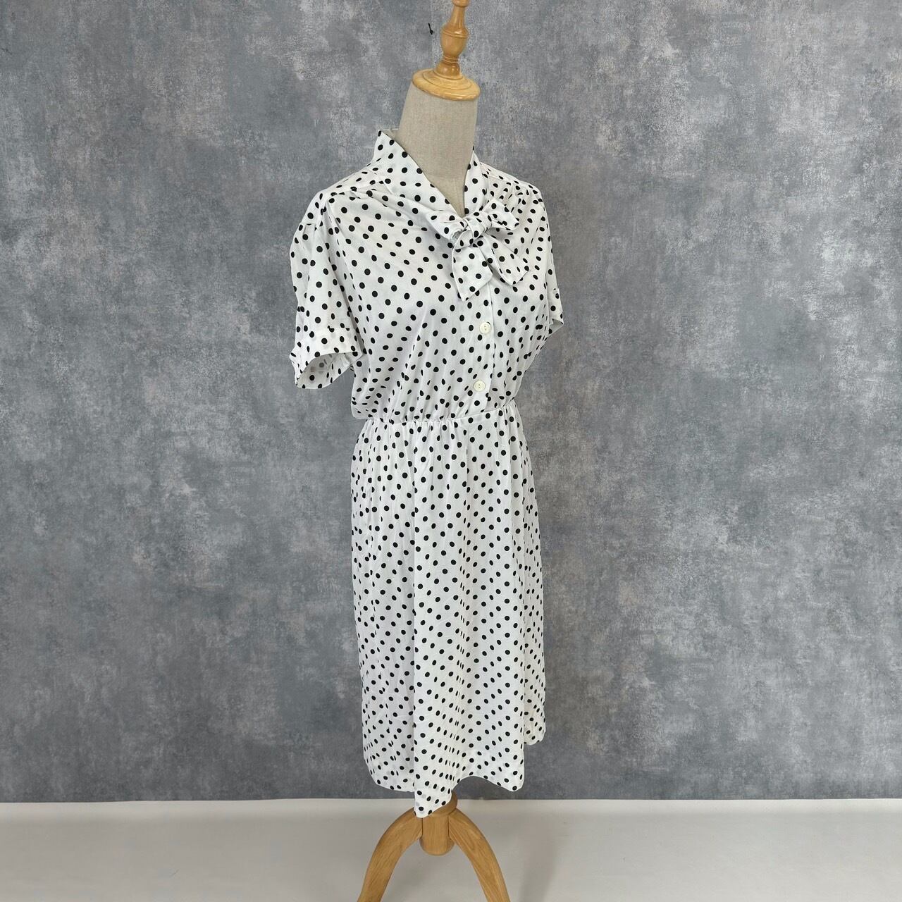 ポルカドット柄(水玉模様)のリボンタイデザインワンピース