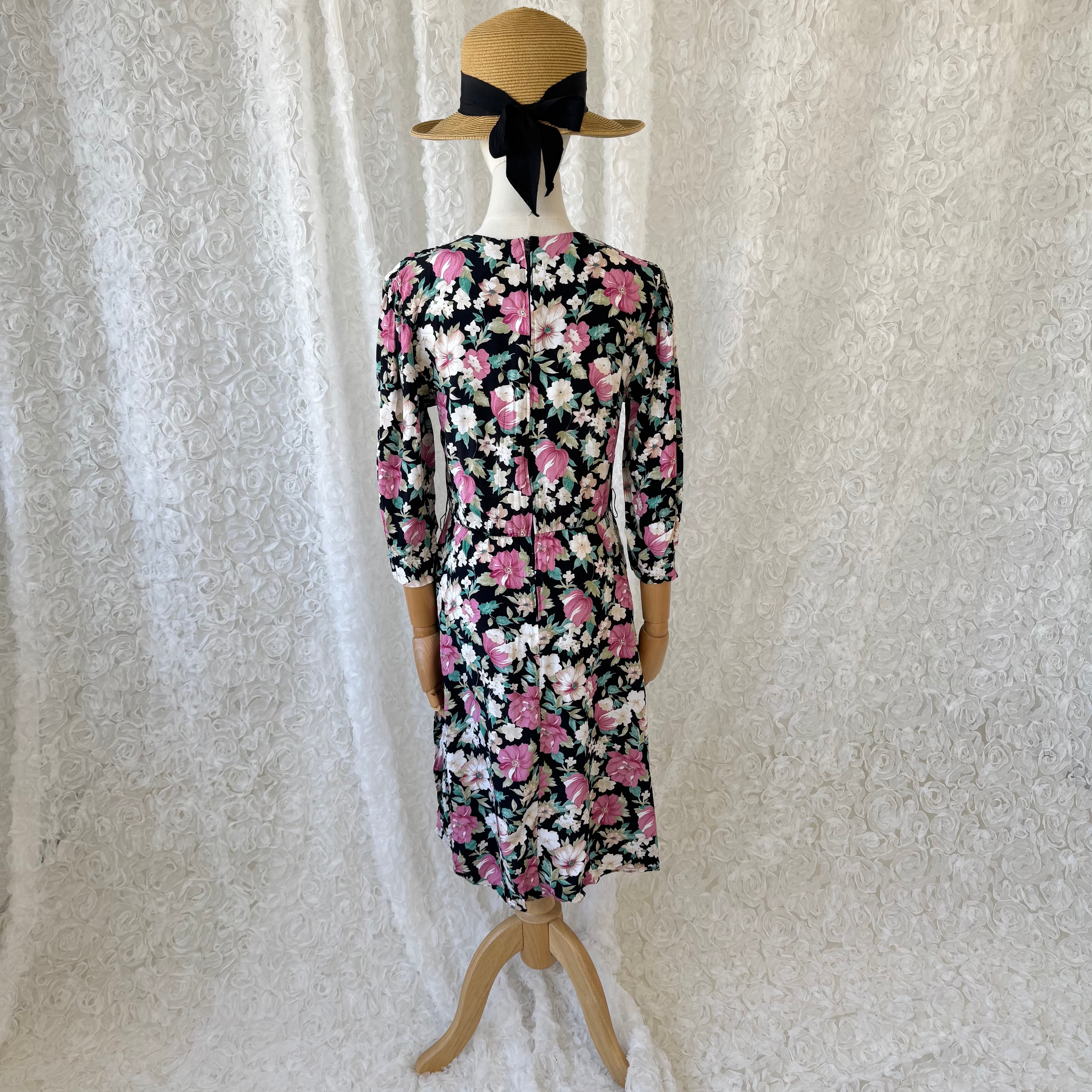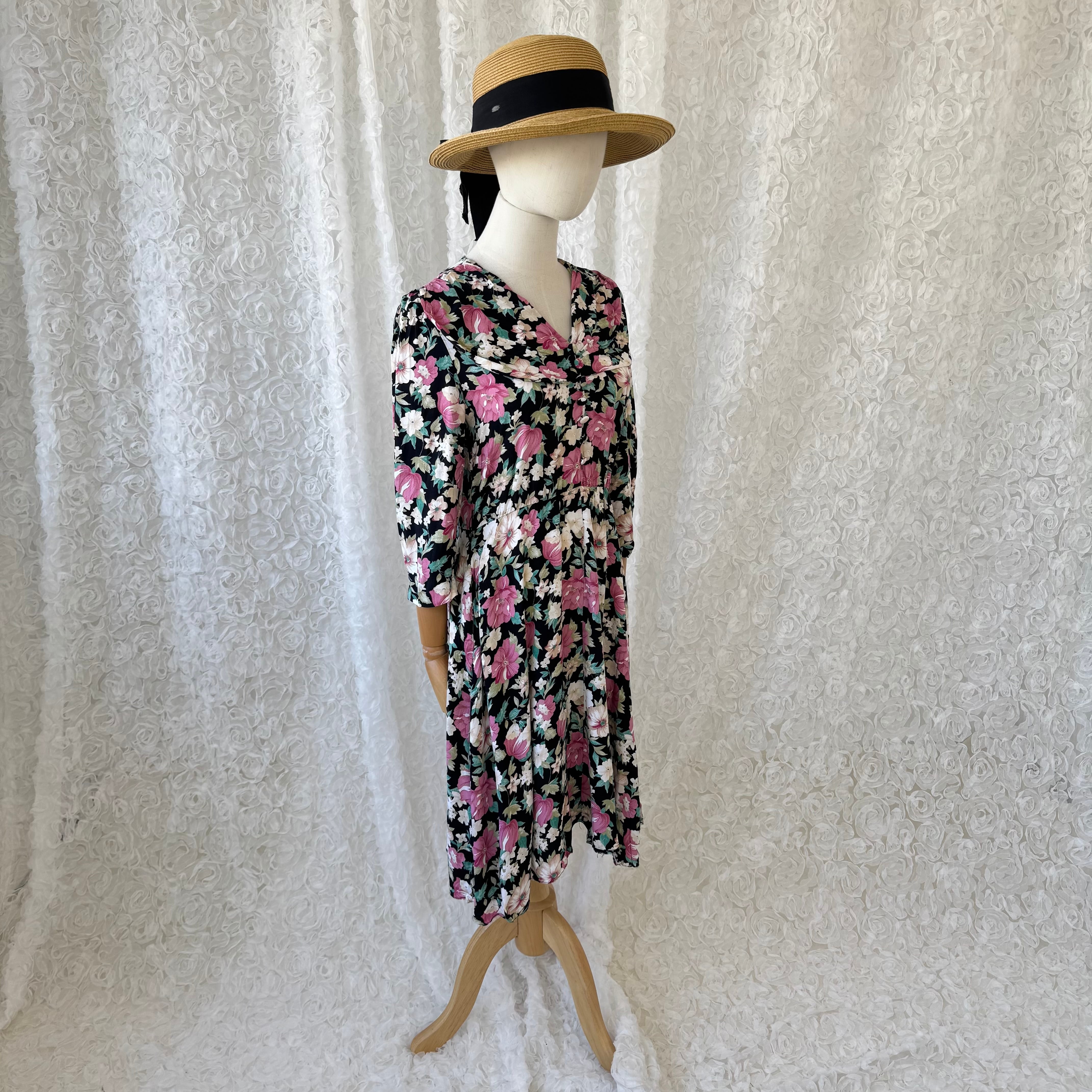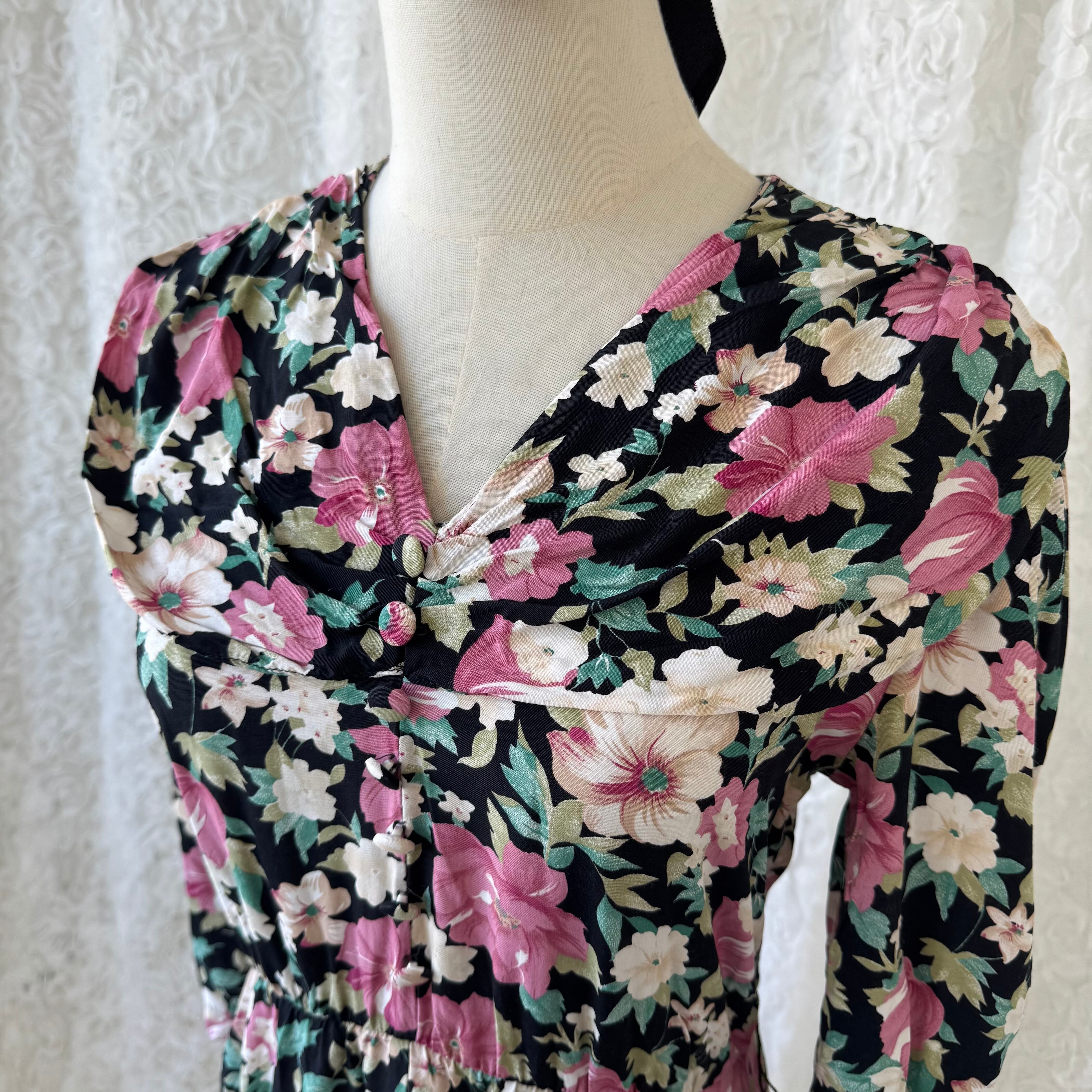 ケープカラー フローラル柄ワンピース USA製 レーヨン生地