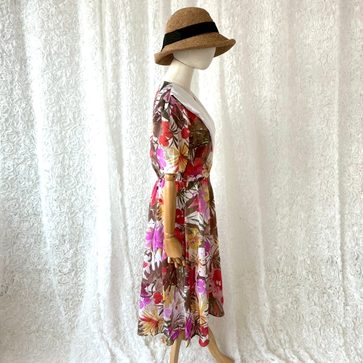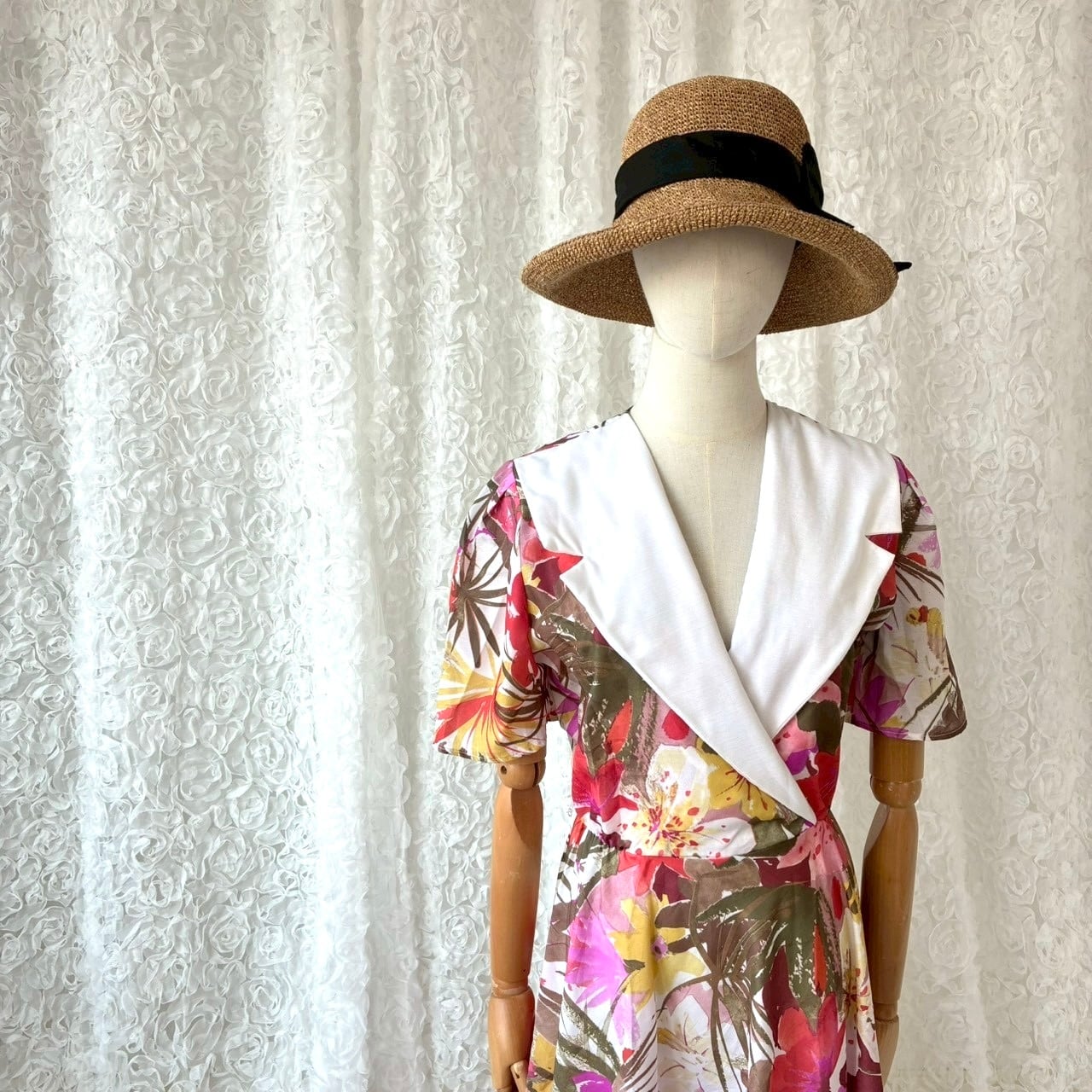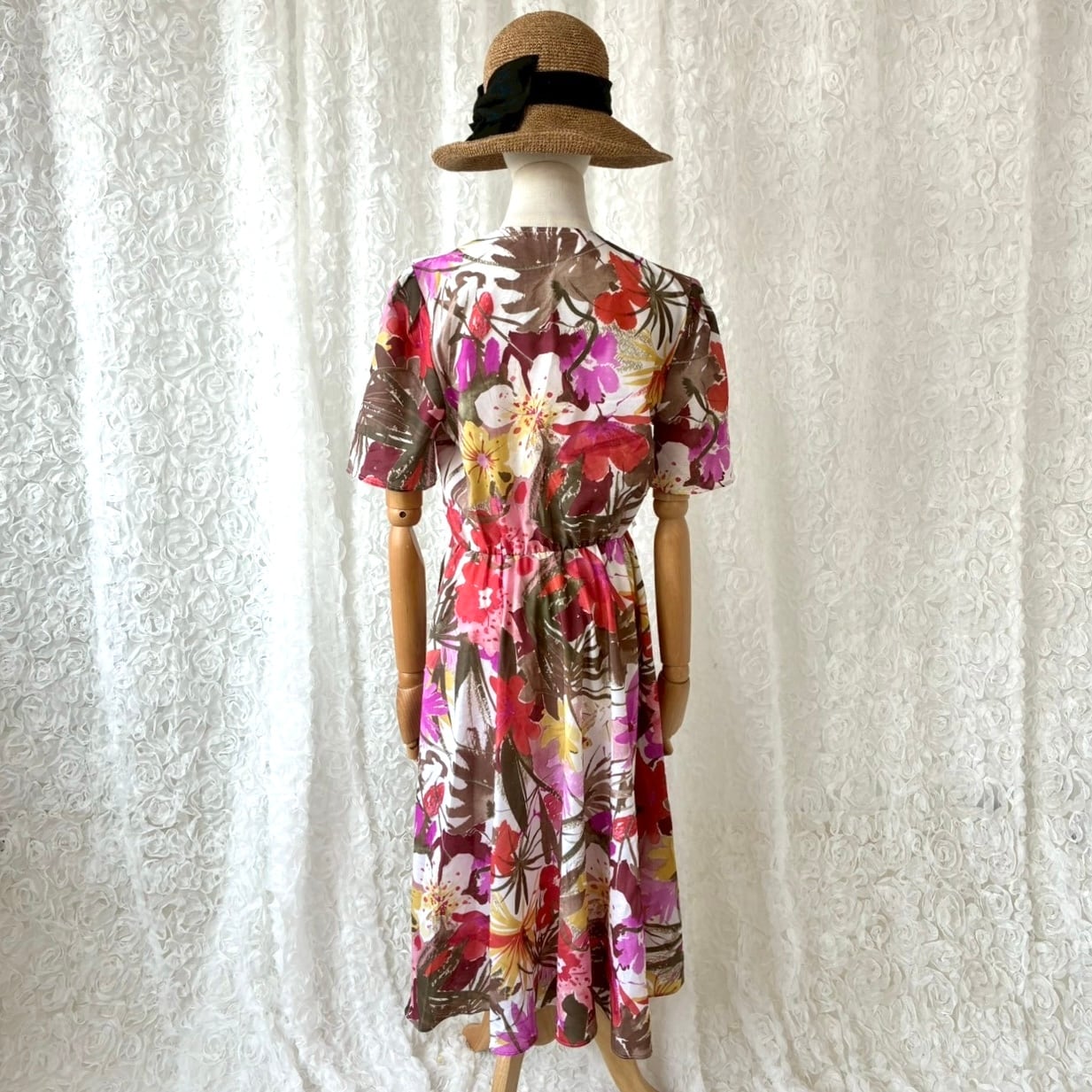南国ムード漂う華やかなフラワープリントが目を惹く、カナダ製ヴィンテージワンピース。